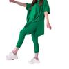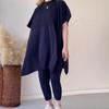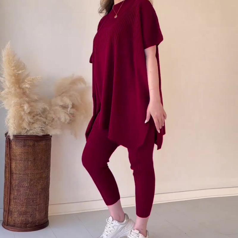2023 otoño nuevo europeo y americano Amazon transfronterizo color sólido cuello redondo talla grande manga corta suéter abierto traje casual