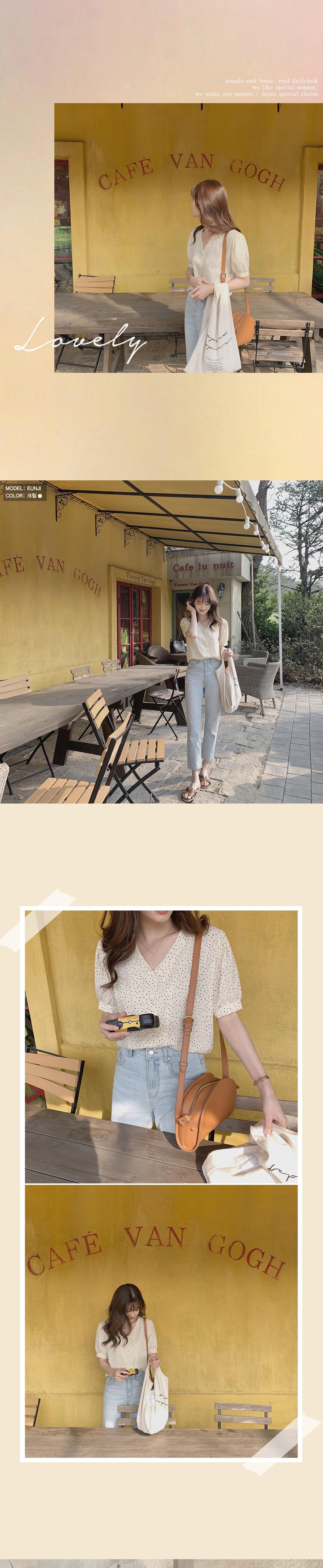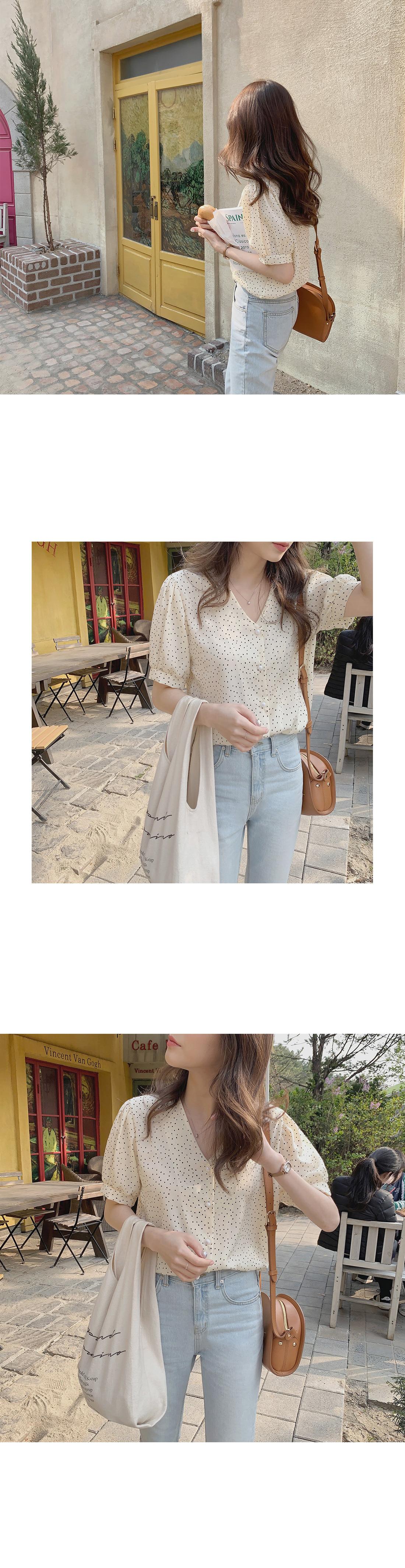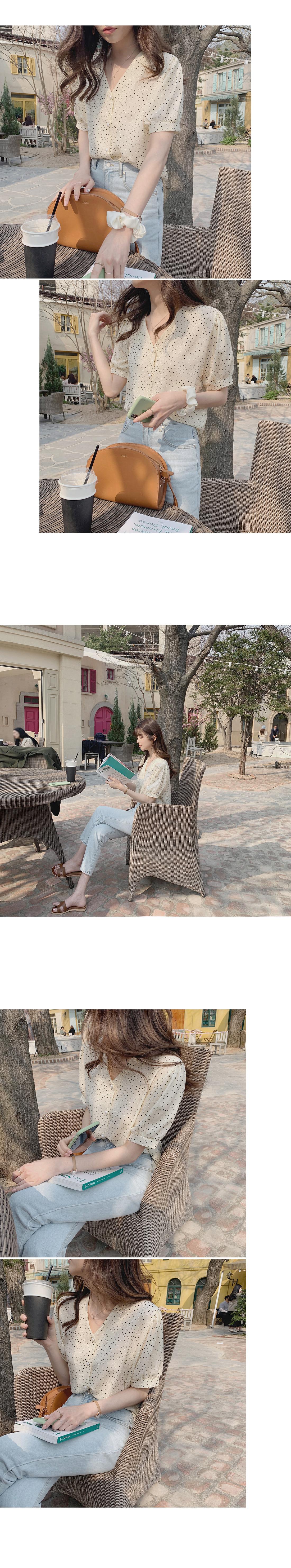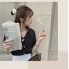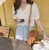 Chic coreano Verano Nuevo Top de gasa para mujer Holgado Adelgazante Combinable Manga corta Cuello en V Cubre vientre Camisa pequeña elegante