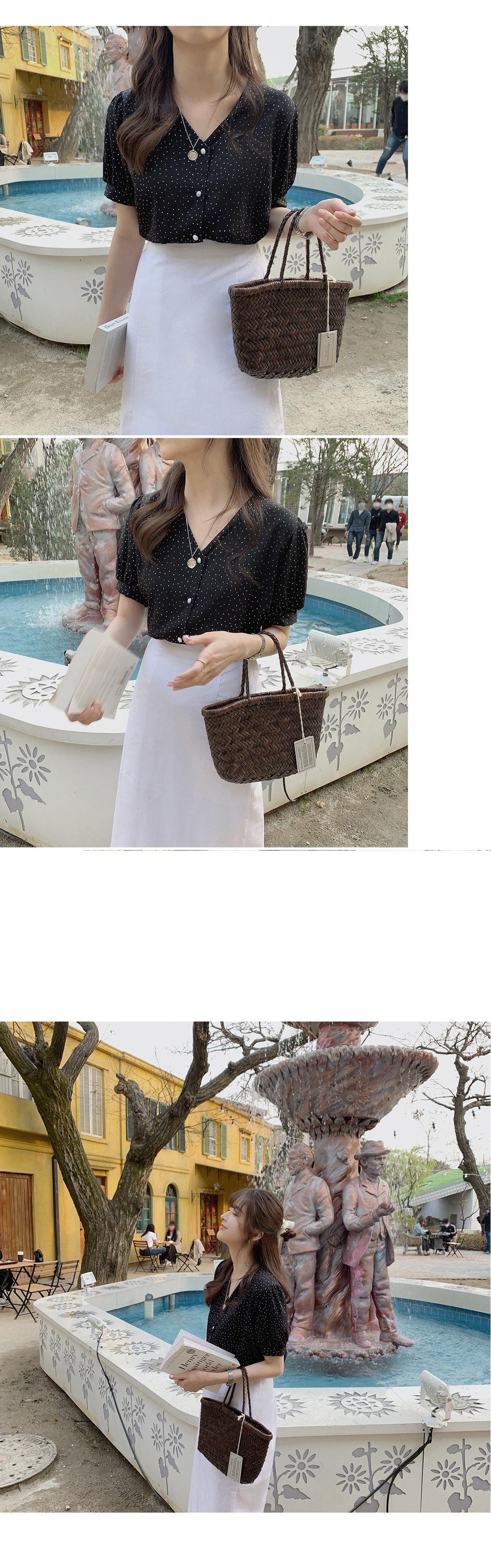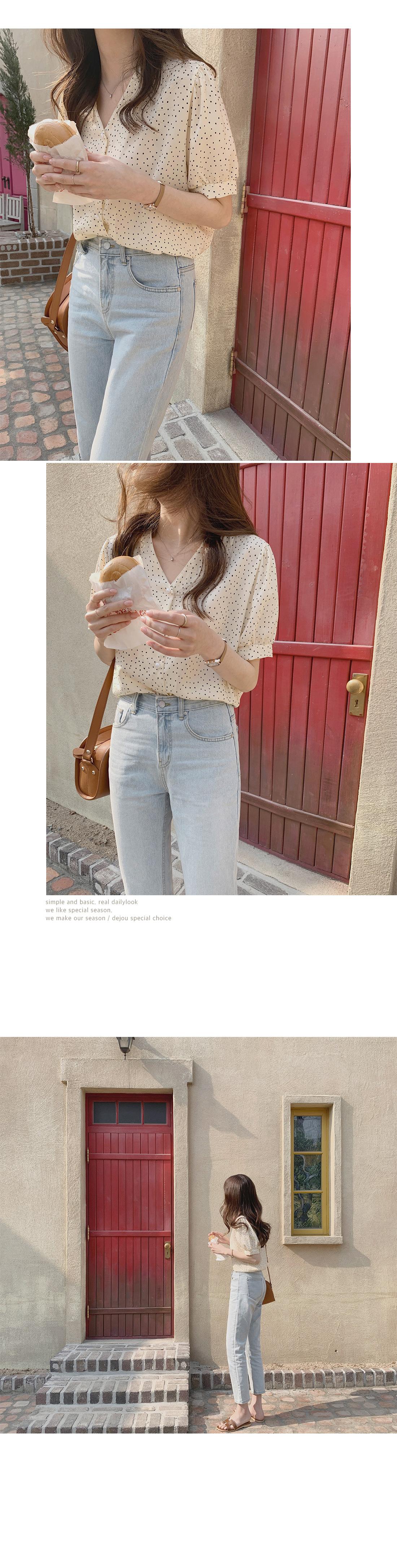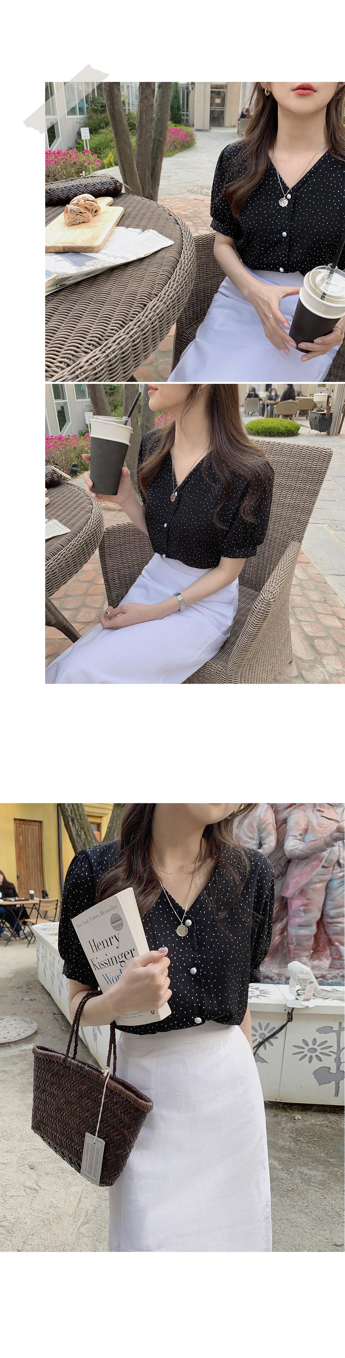 Chic coreano Verano Nuevo Top de gasa para mujer Holgado Adelgazante Combinable Manga corta Cuello en V Cubre vientre Camisa pequeña elegante