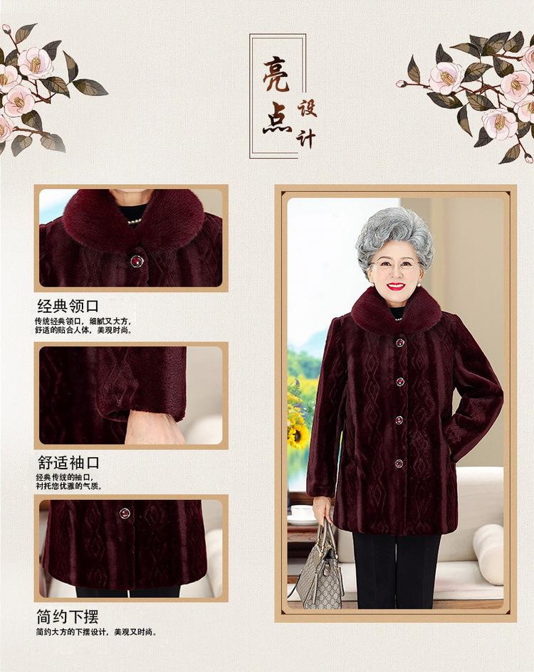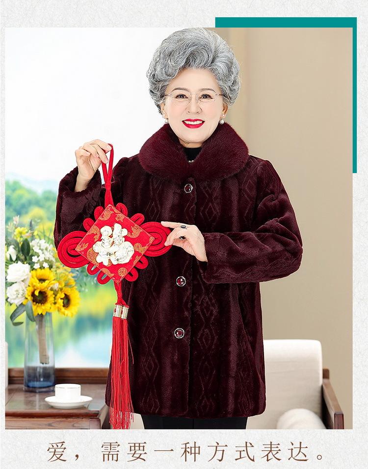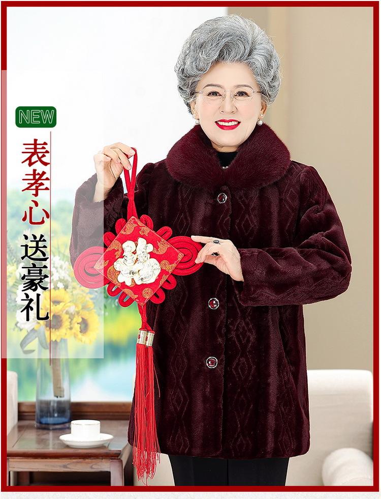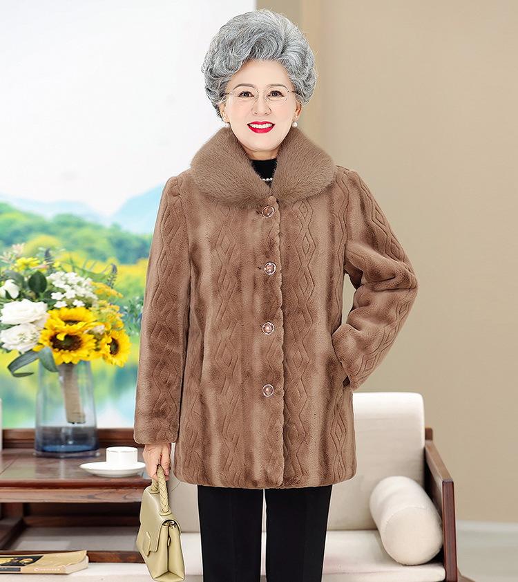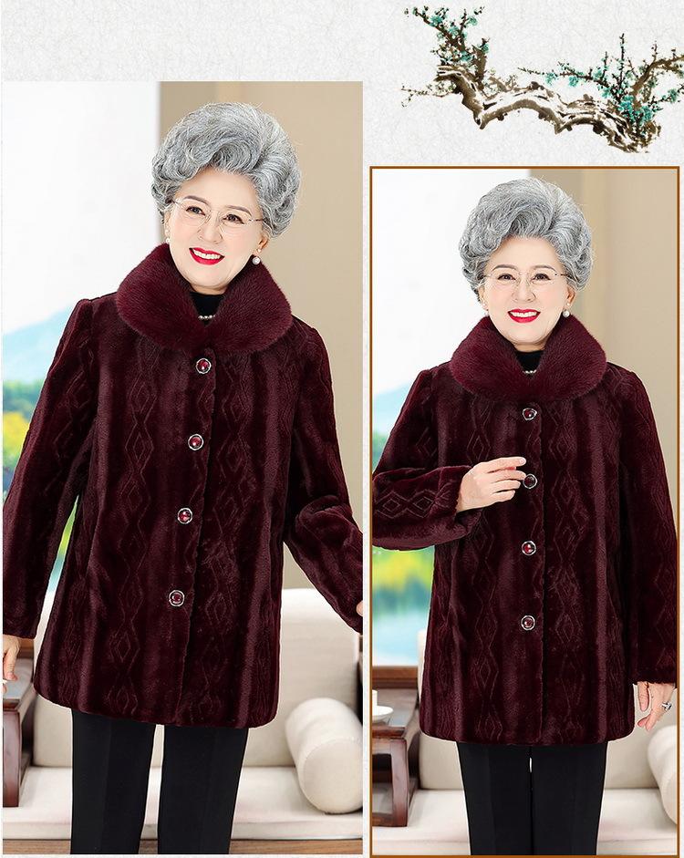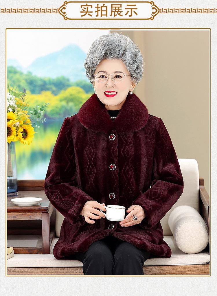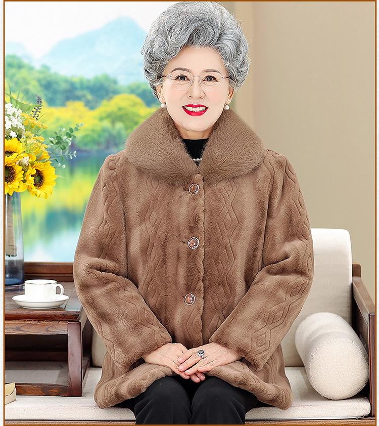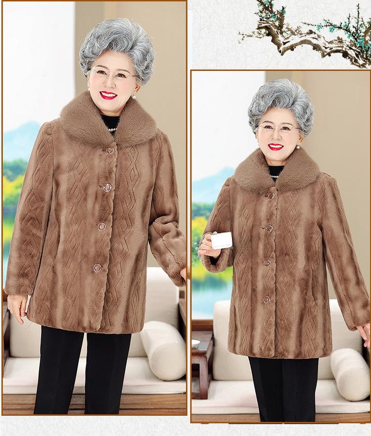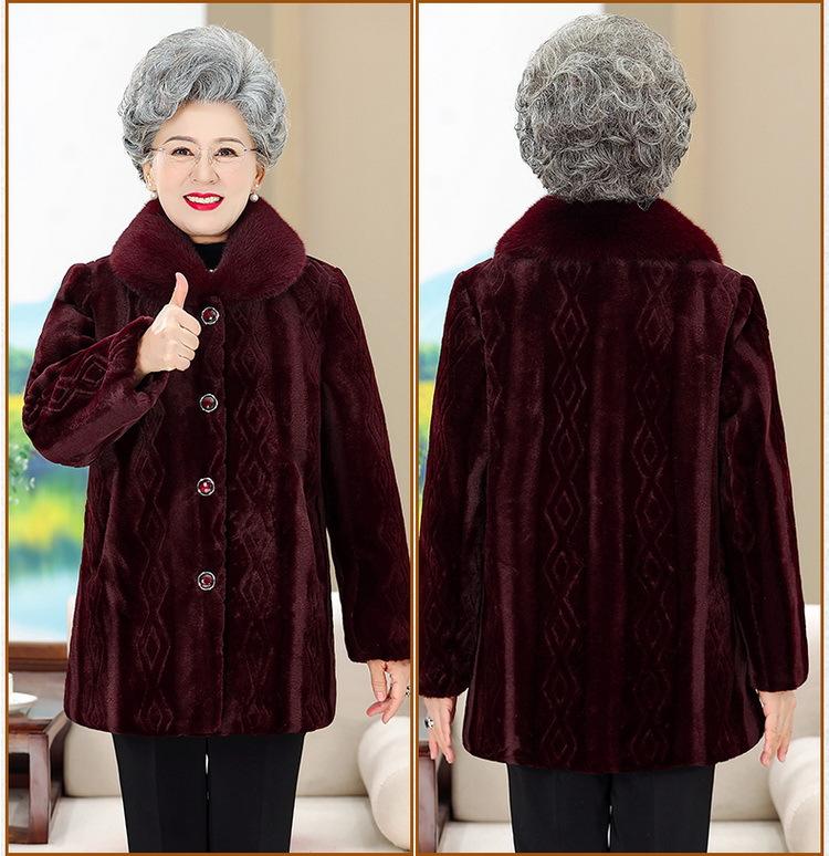 Ropa de invierno para madre abrigo grueso de forro polar señora mayor cálido forro polar de visón sintético para mujeres de mediana edad y ancianas abrigo suelto de estilo occidental
