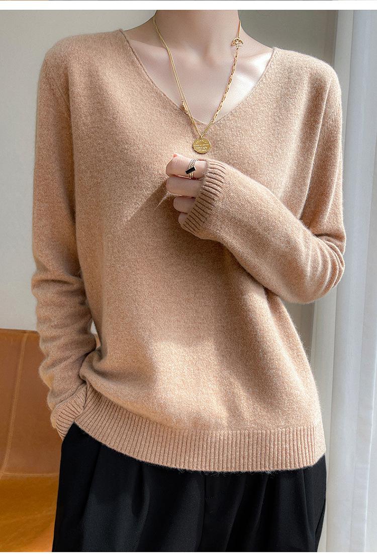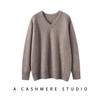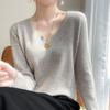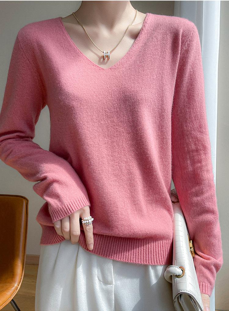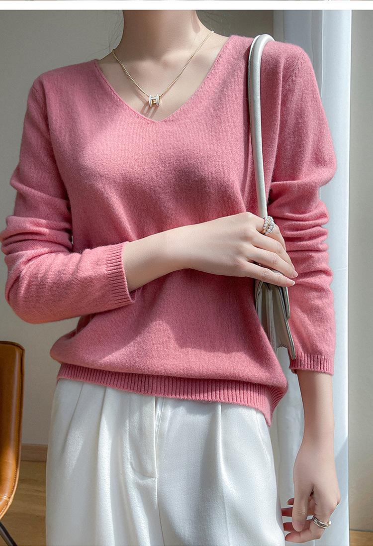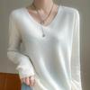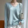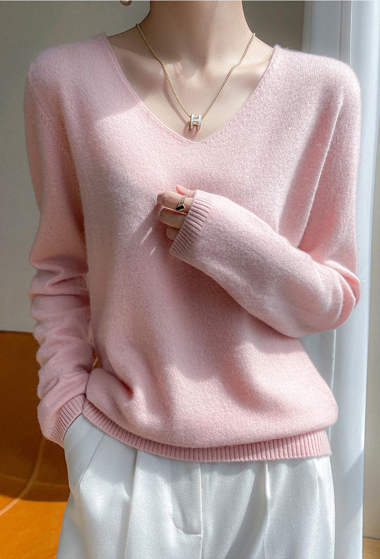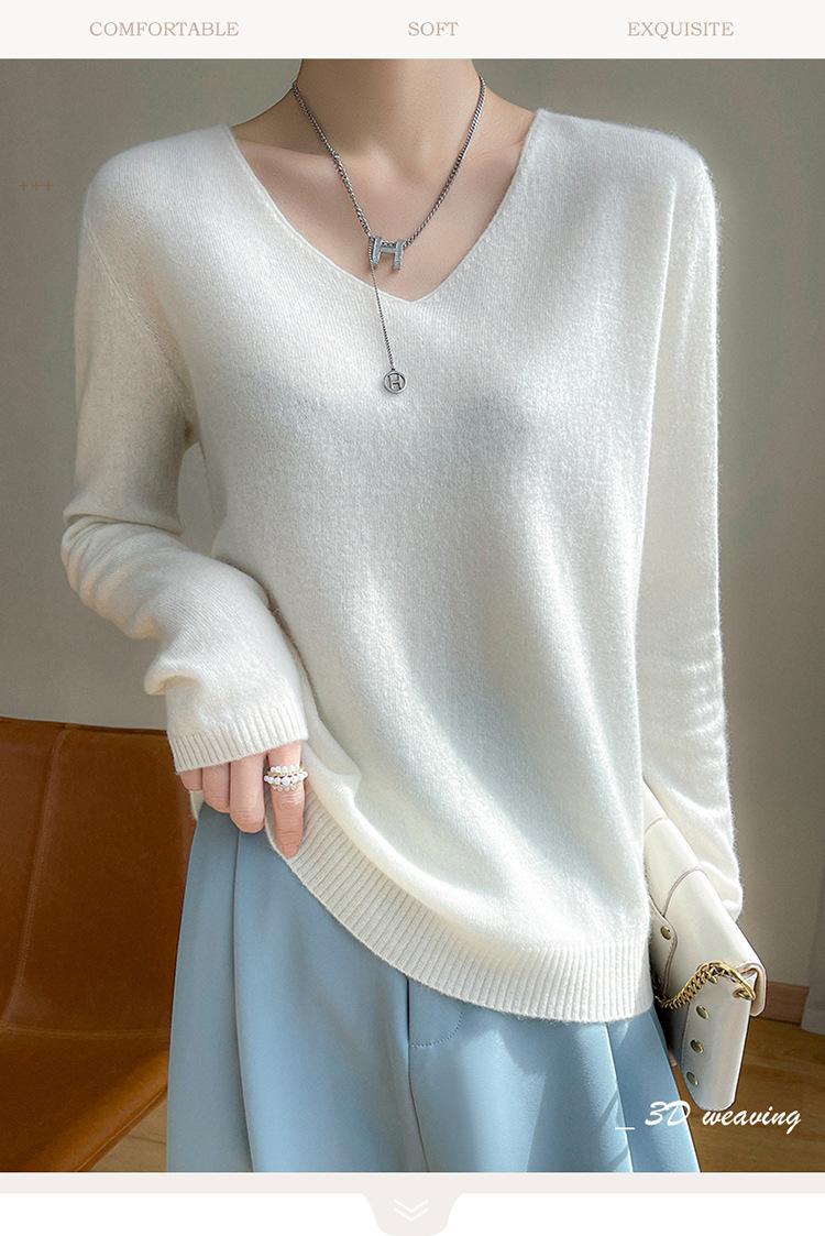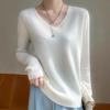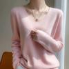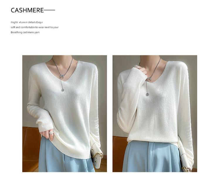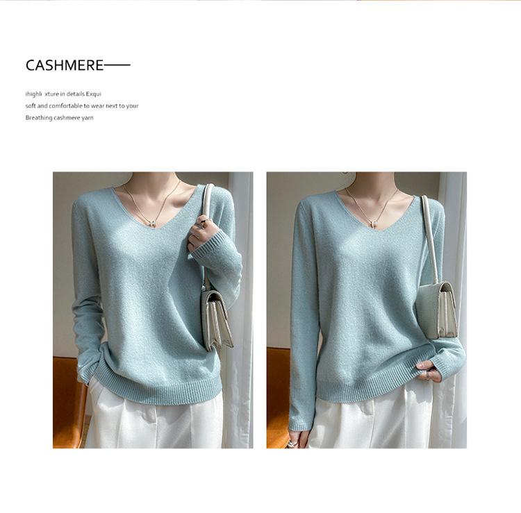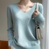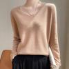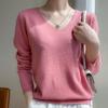 Suéter de cachemira con cuello en V para mujer, de cachemira, de color liso, moderno, holgado, elegante, para otoño e invierno, con base interior, suéter fino.
