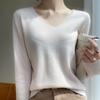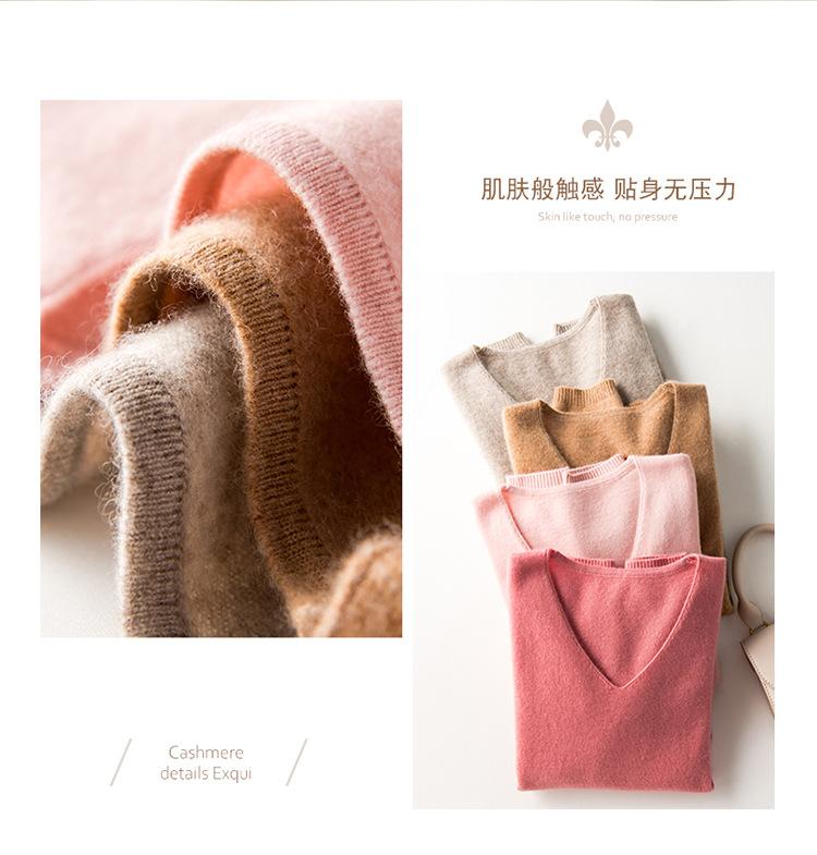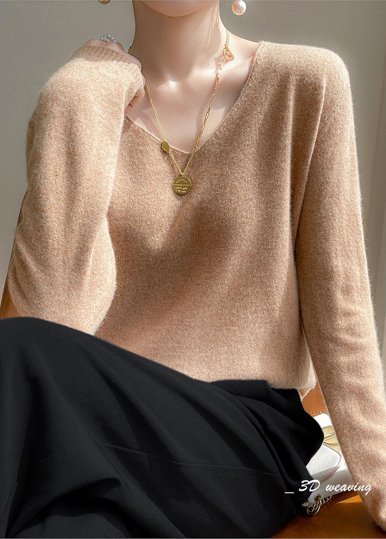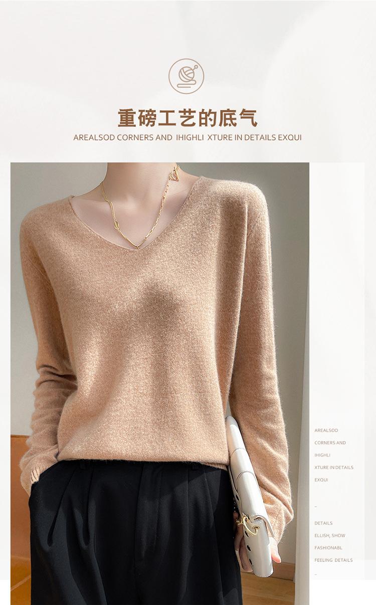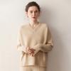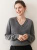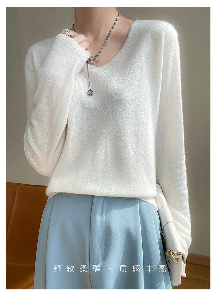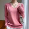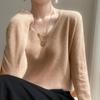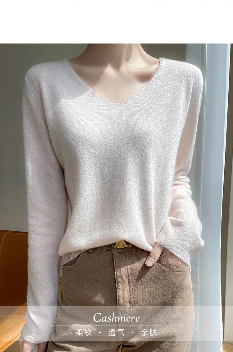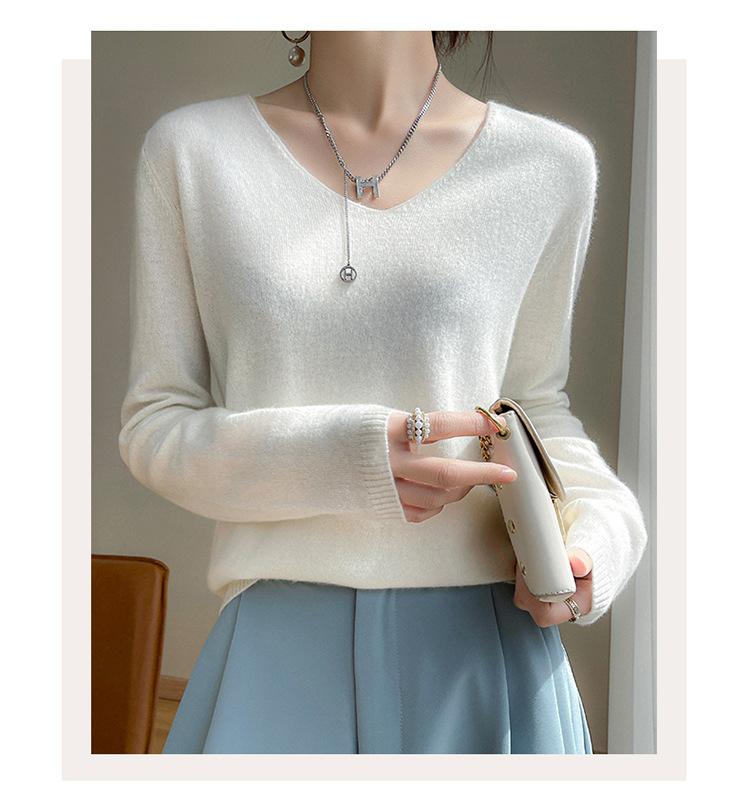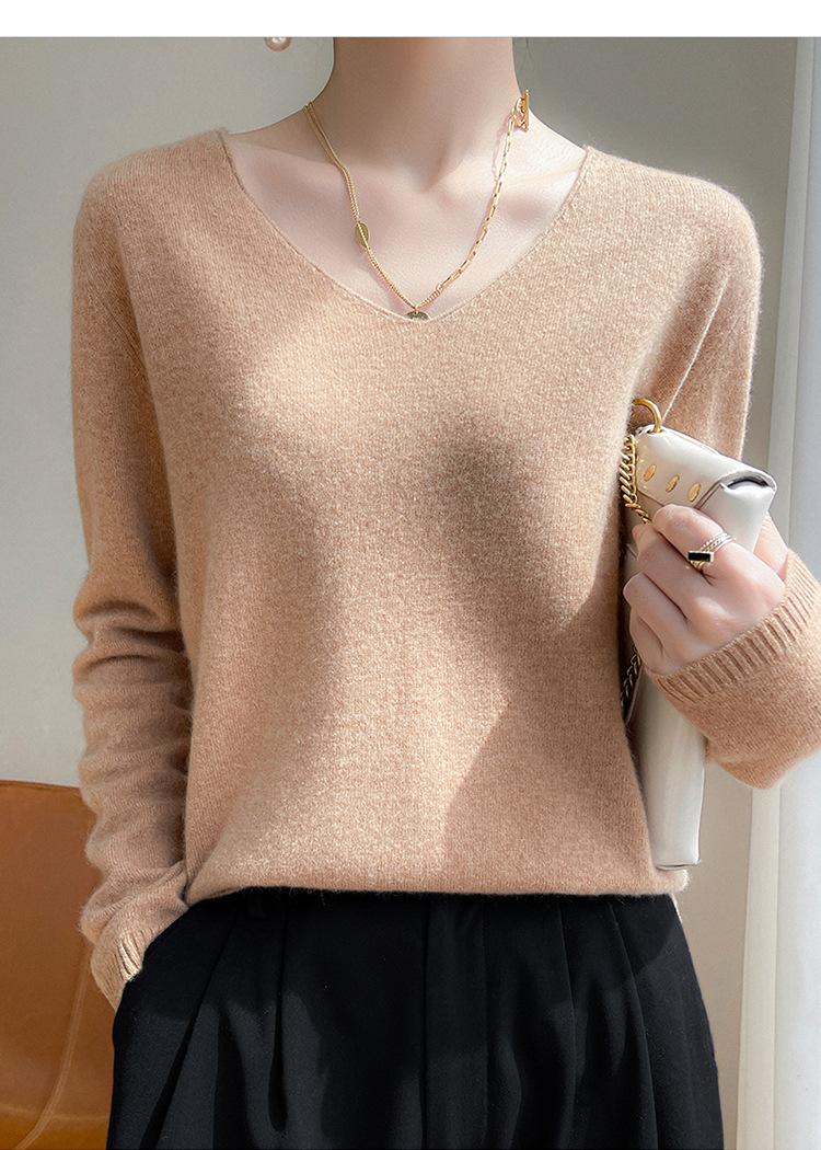 Suéter de cachemira con cuello en V para mujer, de cachemira, de color liso, moderno, holgado, elegante, para otoño e invierno, con base interior, suéter fino.