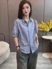 Camisa rayada diseño de mujer camisa nicho pequeña manga corta Camisa Tencel ropa de trabajo profesional verano mayoreo