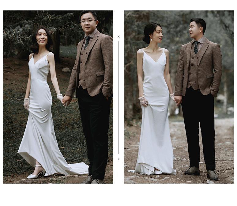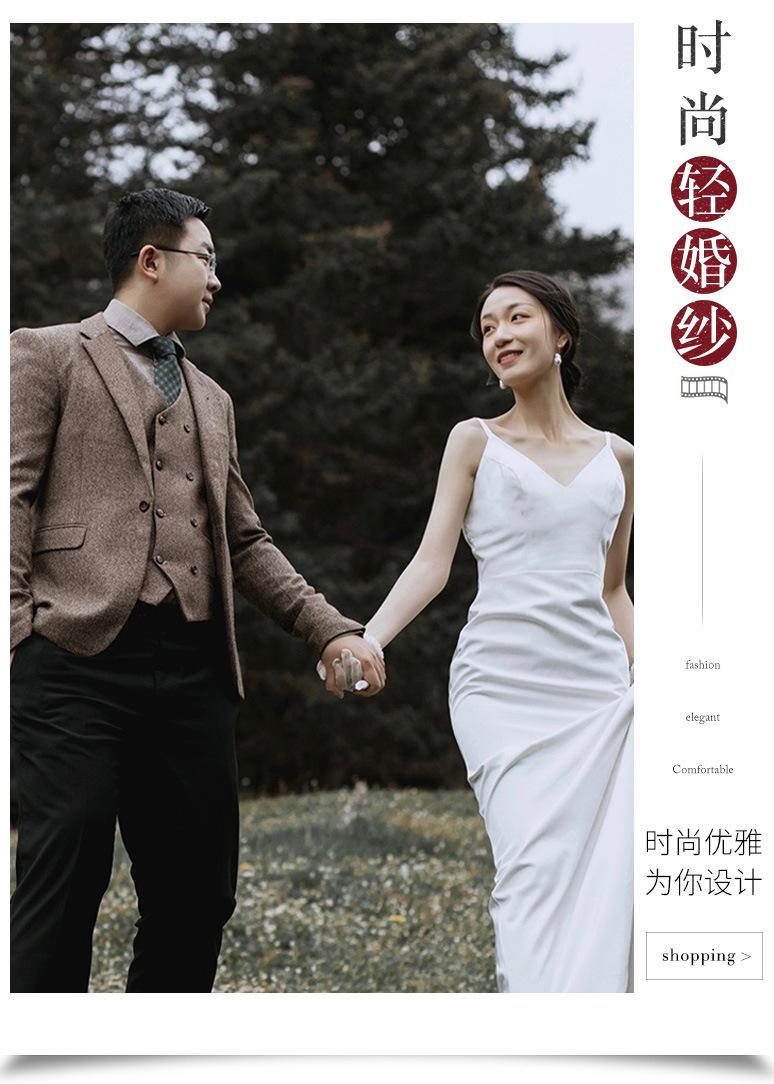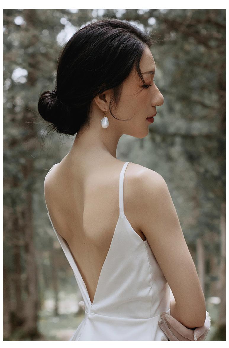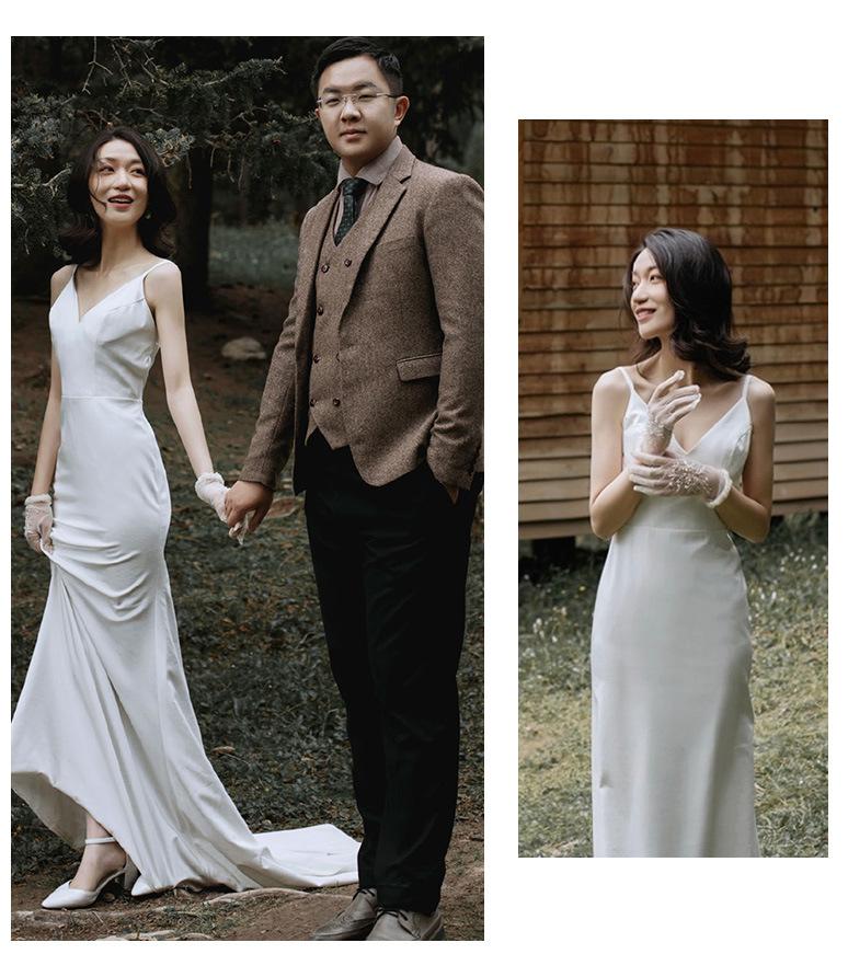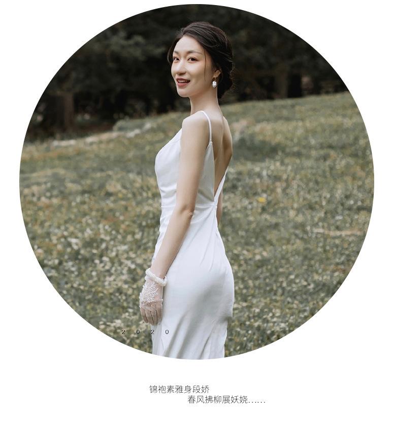 Vestido de novia ligero con tirantes, blanco, sencillo, sexy, sin espalda, estilo Mori, de viaje, de gasa francesa, de satén, con cola pequeña.