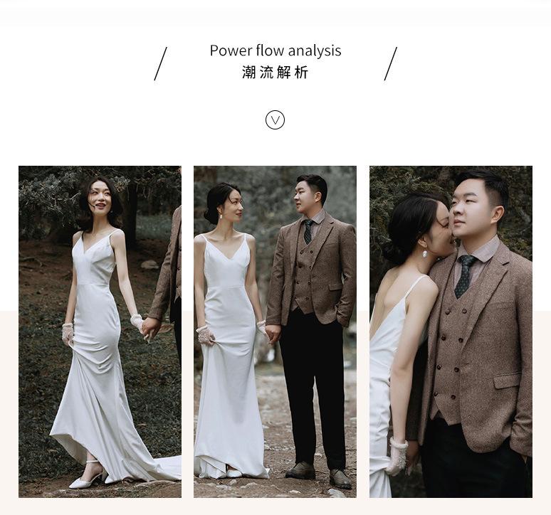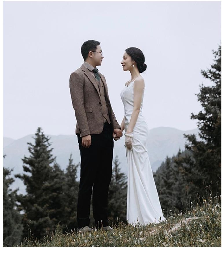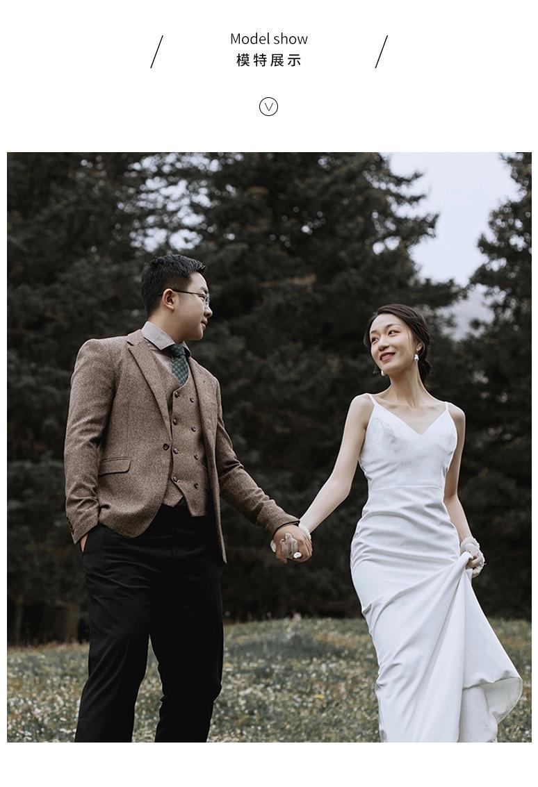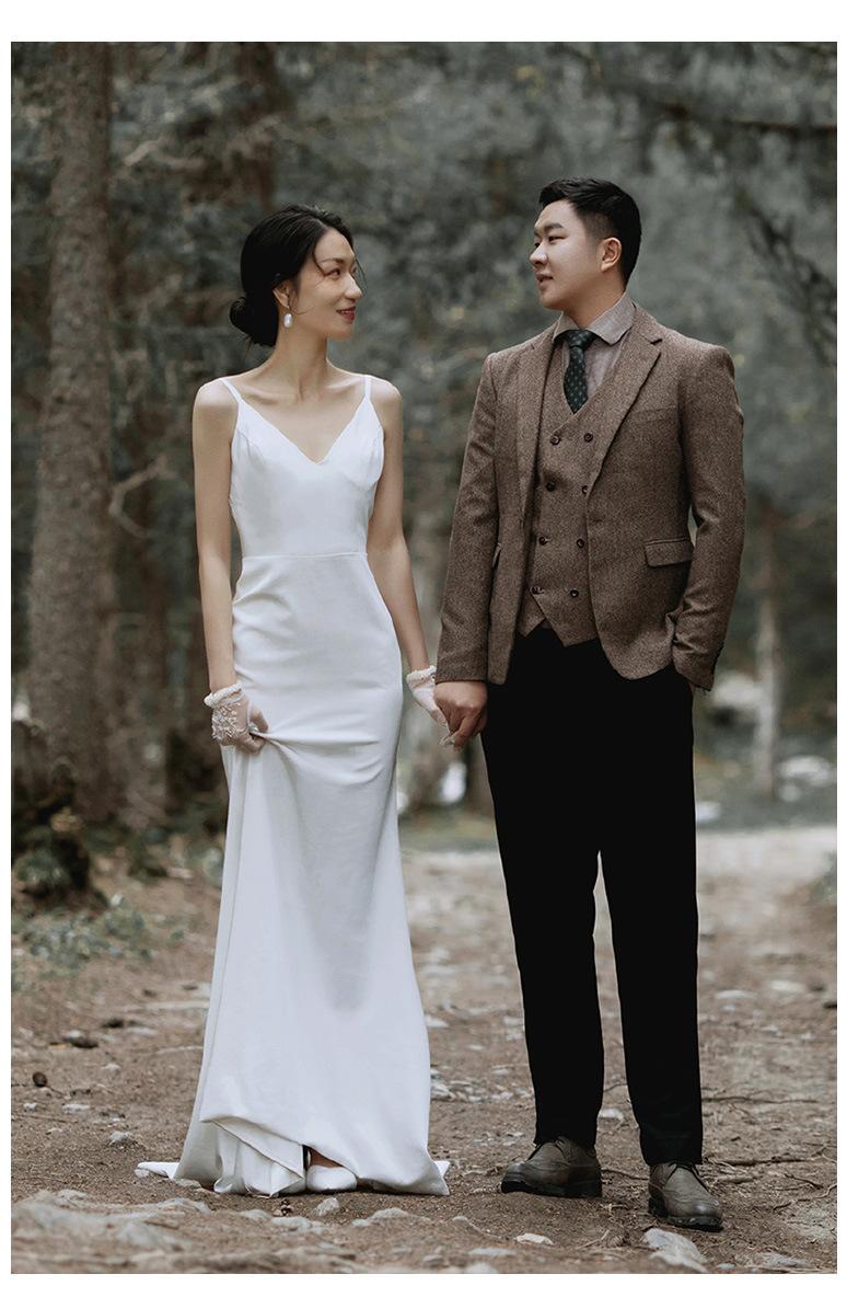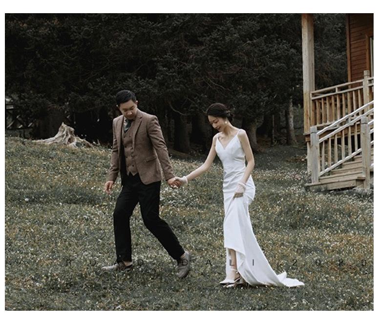 Vestido de novia ligero con tirantes, blanco, sencillo, sexy, sin espalda, estilo Mori, de viaje, de gasa francesa, de satén, con cola pequeña.