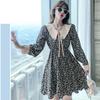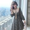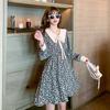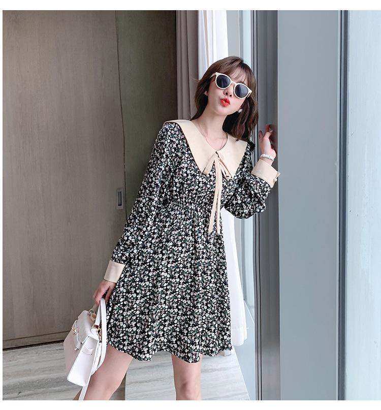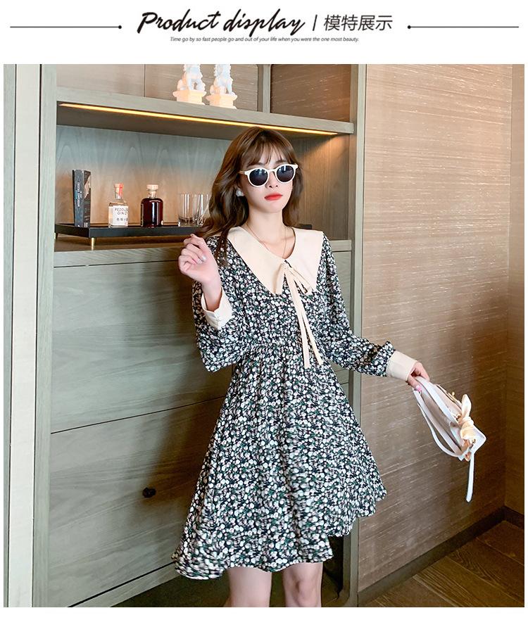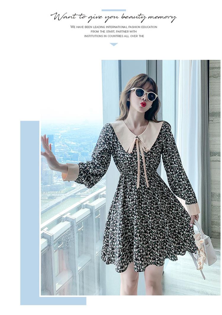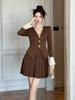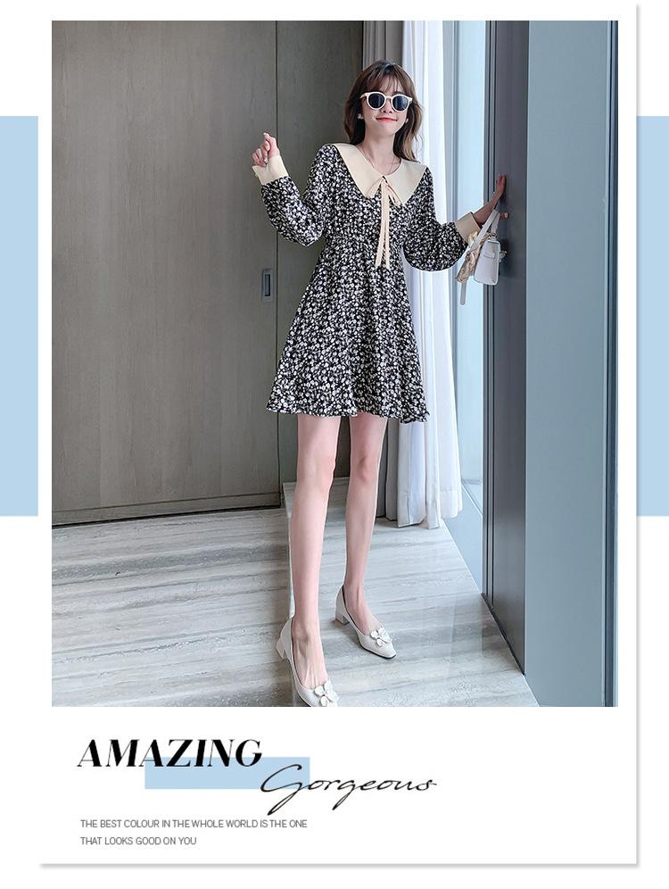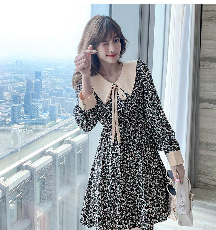 Nuevo Cuello de Muñeca Vestido Floral Retro para Mujer Otoño e Invierno 2025 Estilo Francés Reductor de Edad Falda Pequeña Línea A