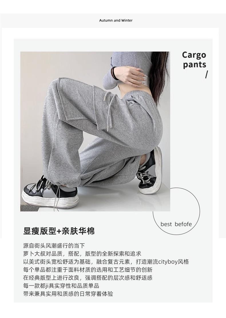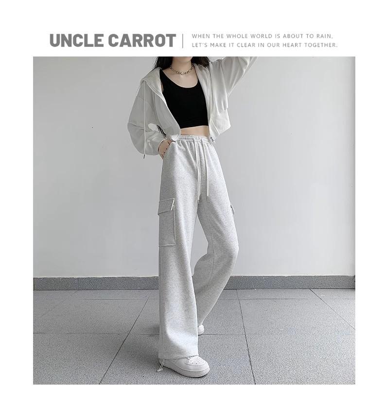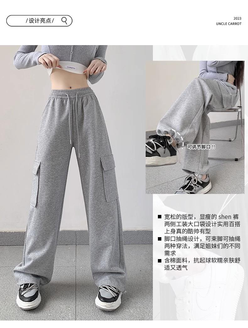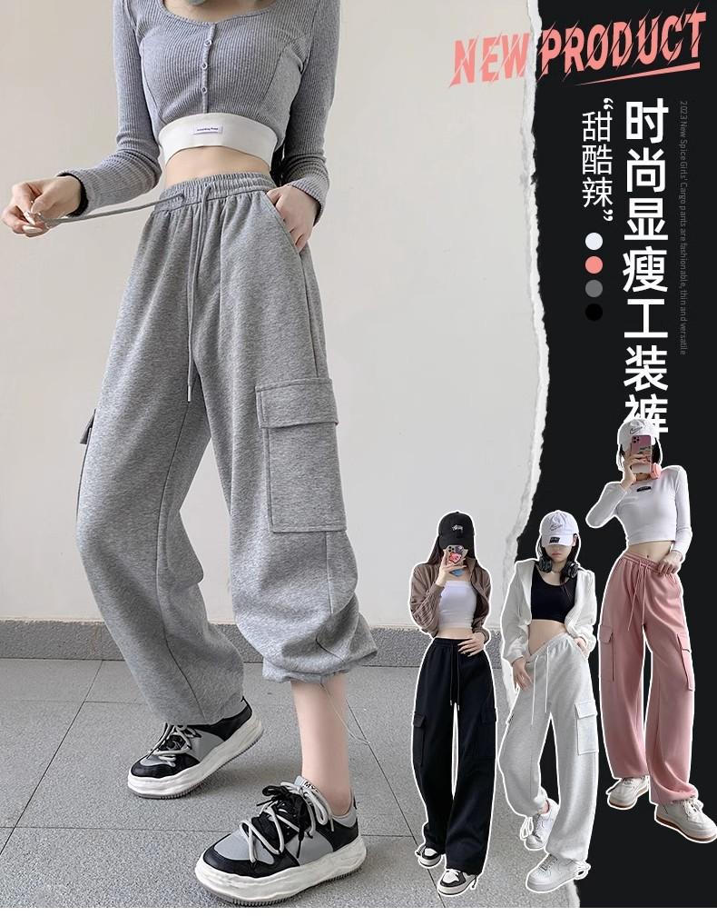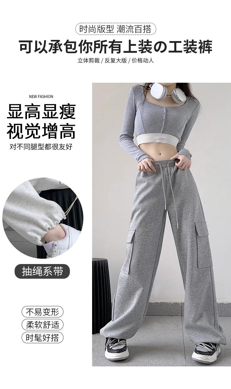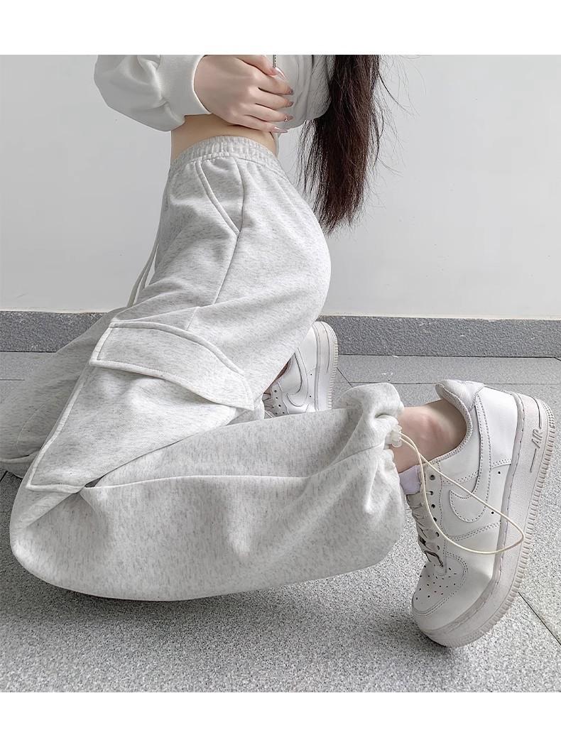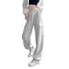 Pantalones deportivos grises americanos transfronterizos de nueva primavera y otoño para mujer, pantalones deportivos holgados con cordón para personas pequeñas, overol de pierna ancha