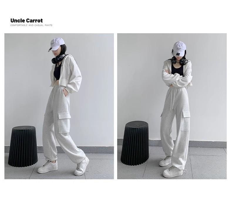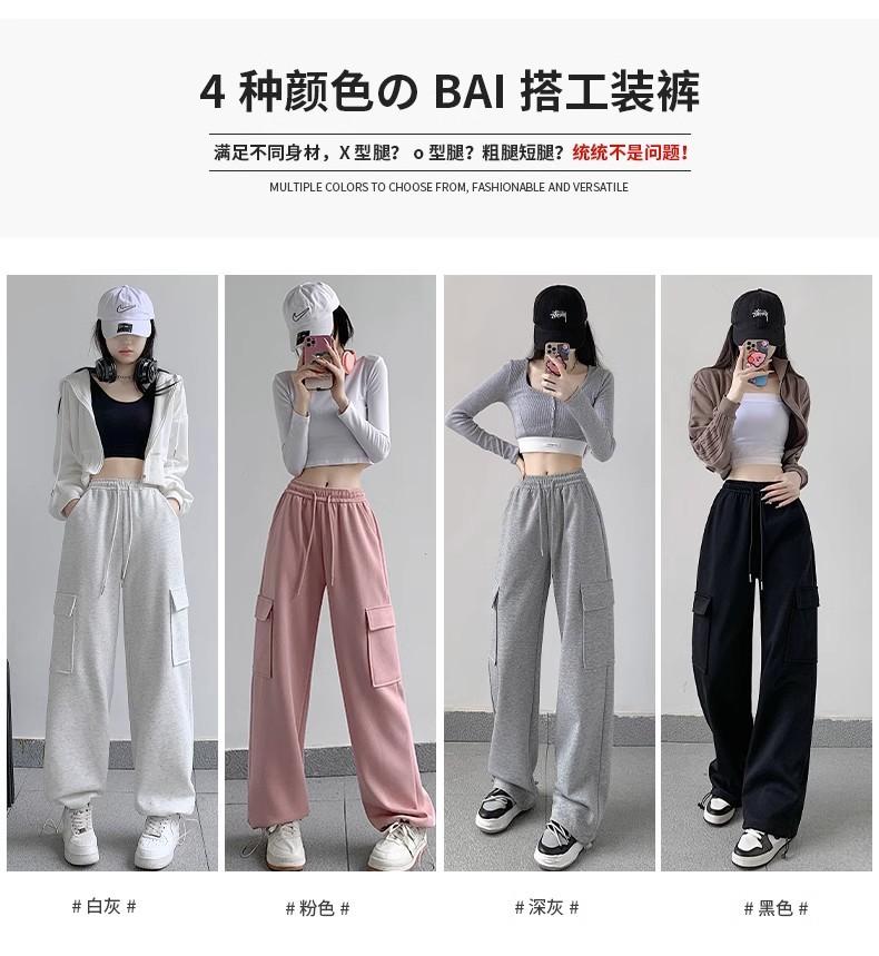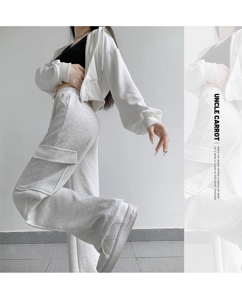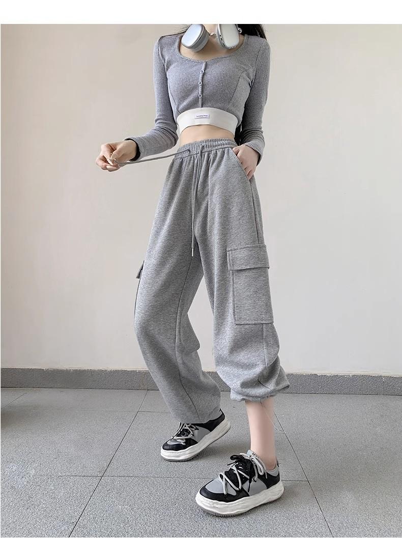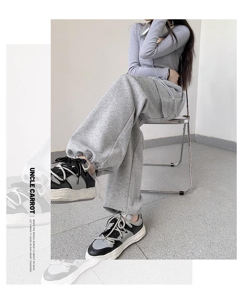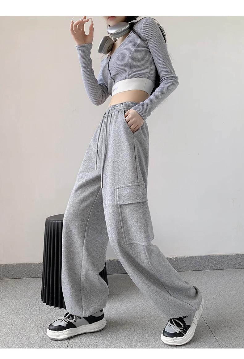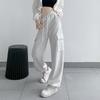 Pantalones deportivos grises americanos transfronterizos de nueva primavera y otoño para mujer, pantalones deportivos holgados con cordón para personas pequeñas, overol de pierna ancha