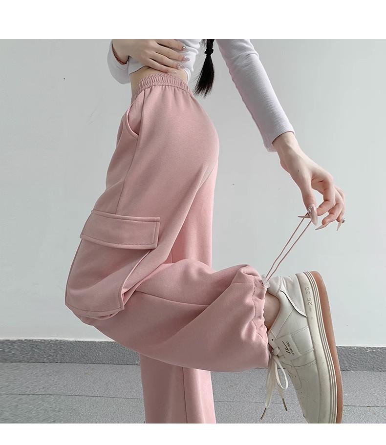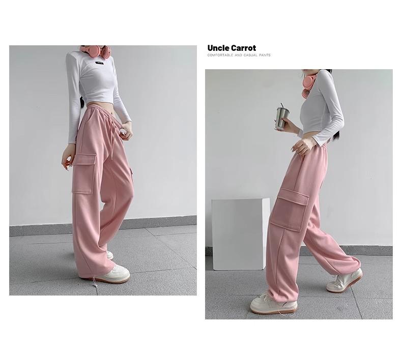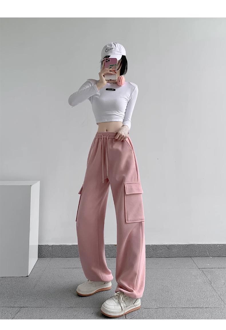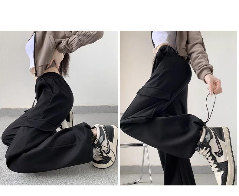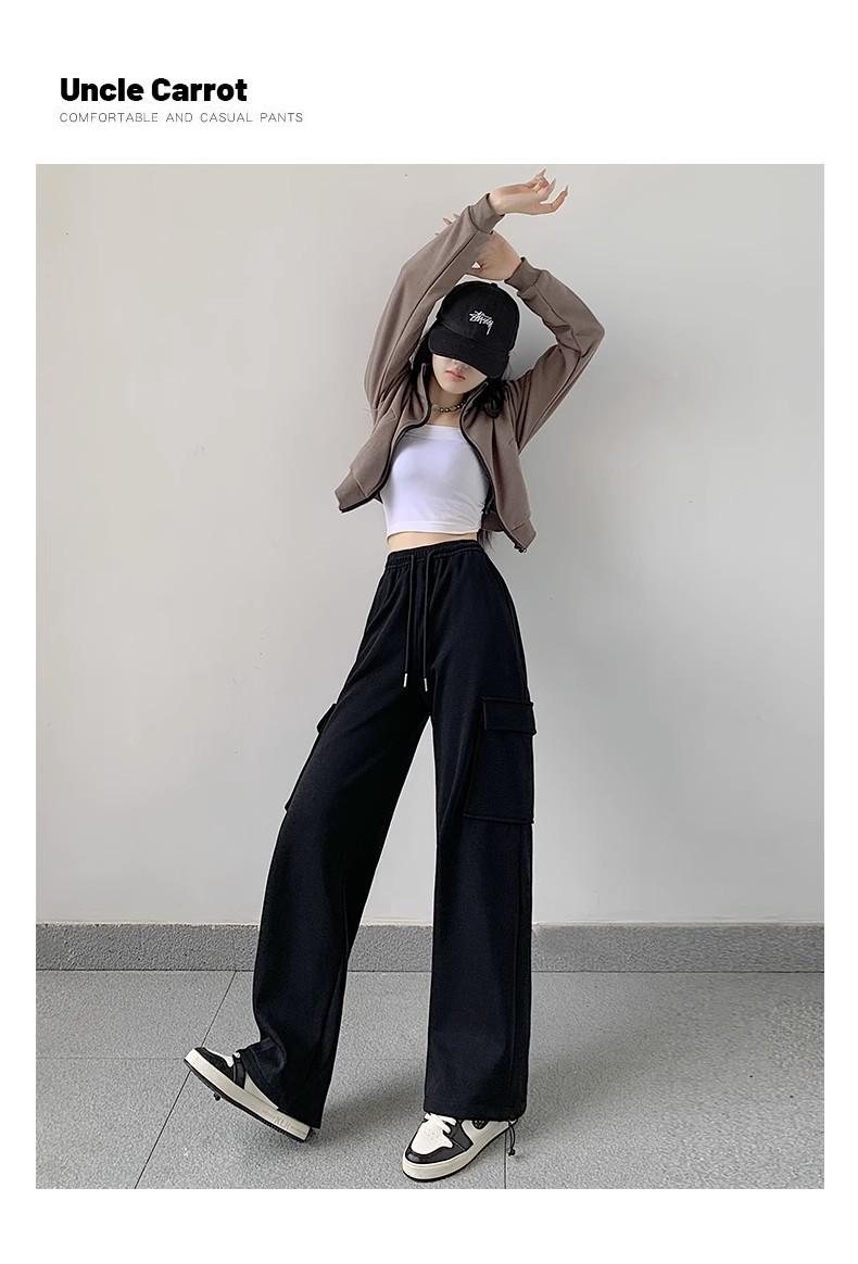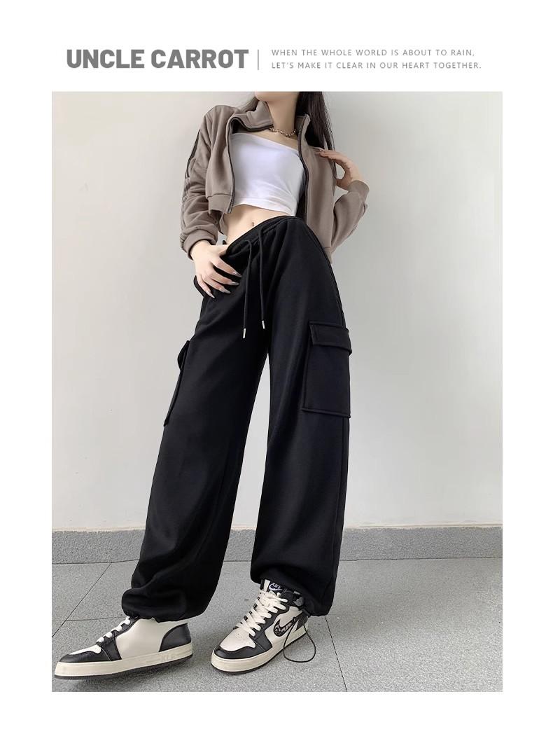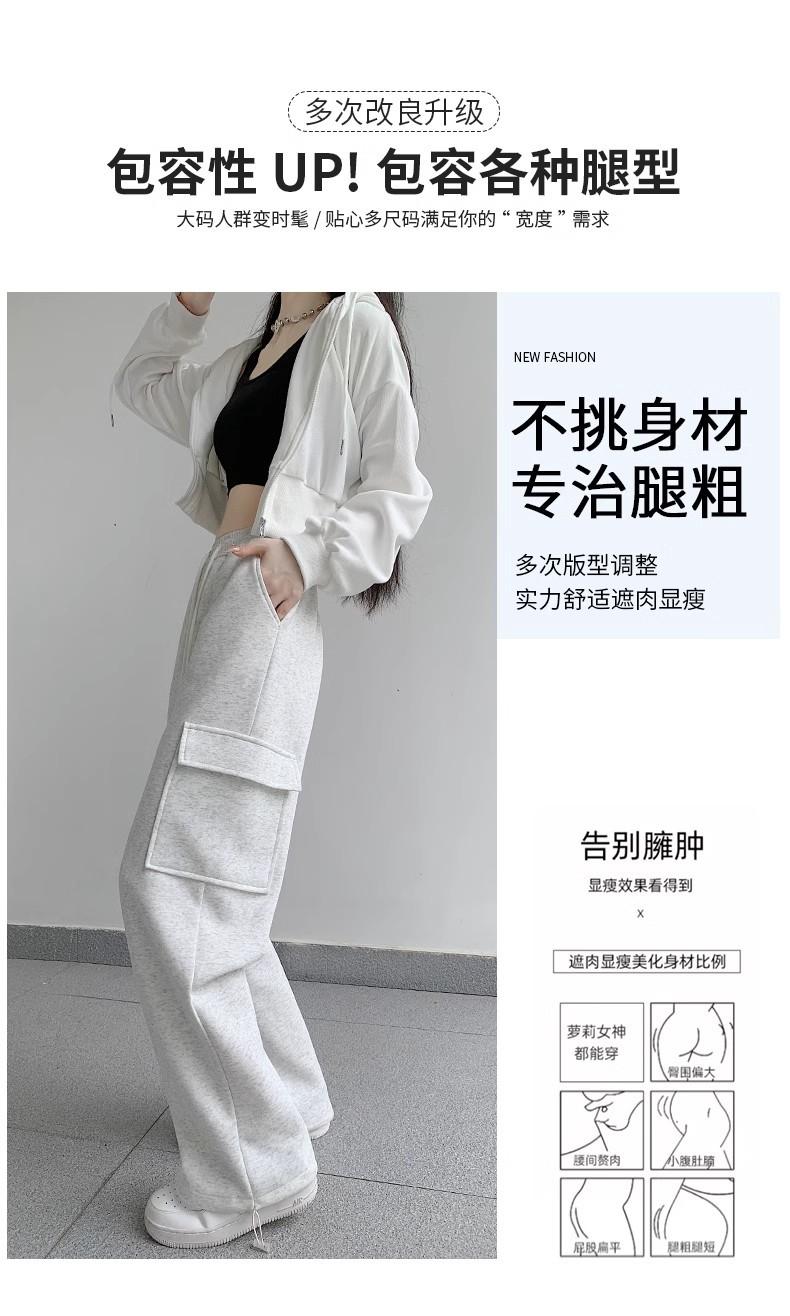 Pantalones deportivos grises americanos transfronterizos de nueva primavera y otoño para mujer, pantalones deportivos holgados con cordón para personas pequeñas, overol de pierna ancha