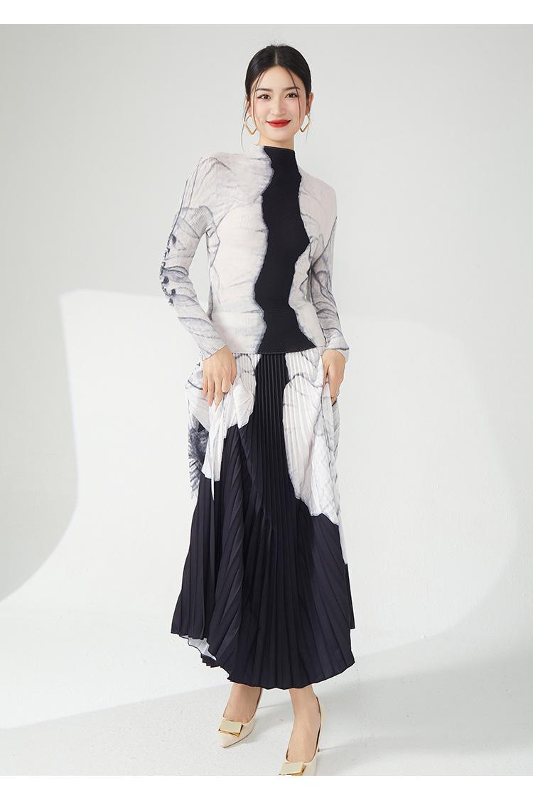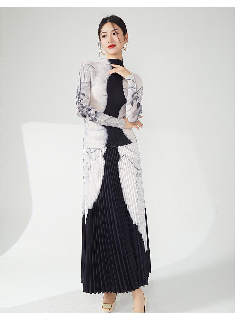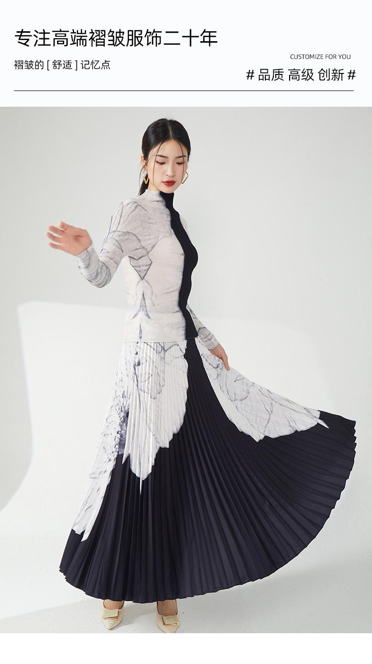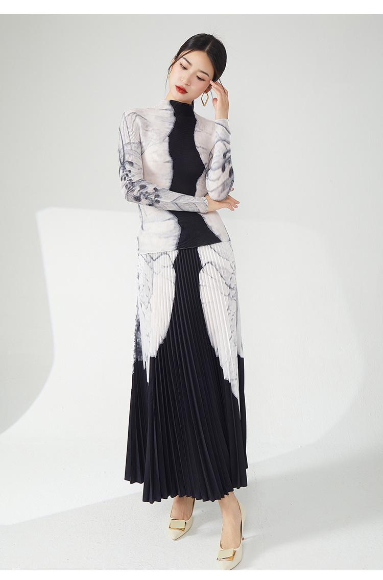 Ropa de moda para mujer, traje plisado de lujo ligero de alta calidad, diseño de nicho con estilo nacional floreciente, falda plisada superior, conjunto de dos piezas