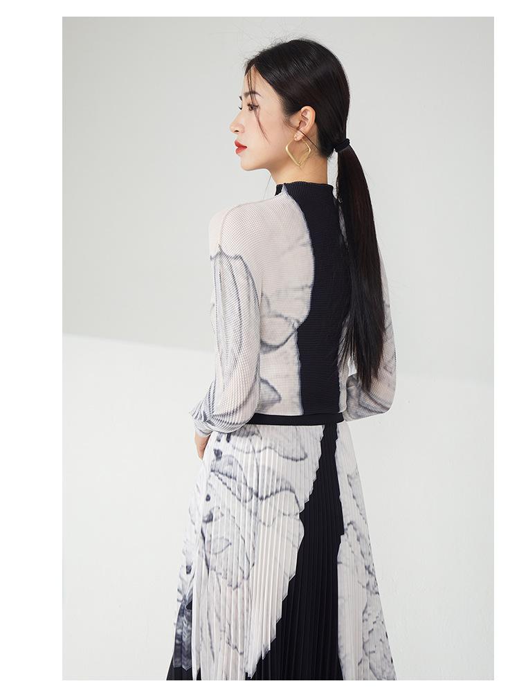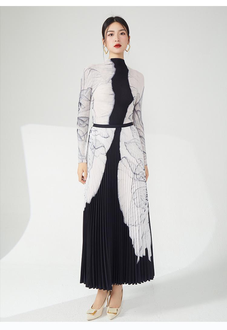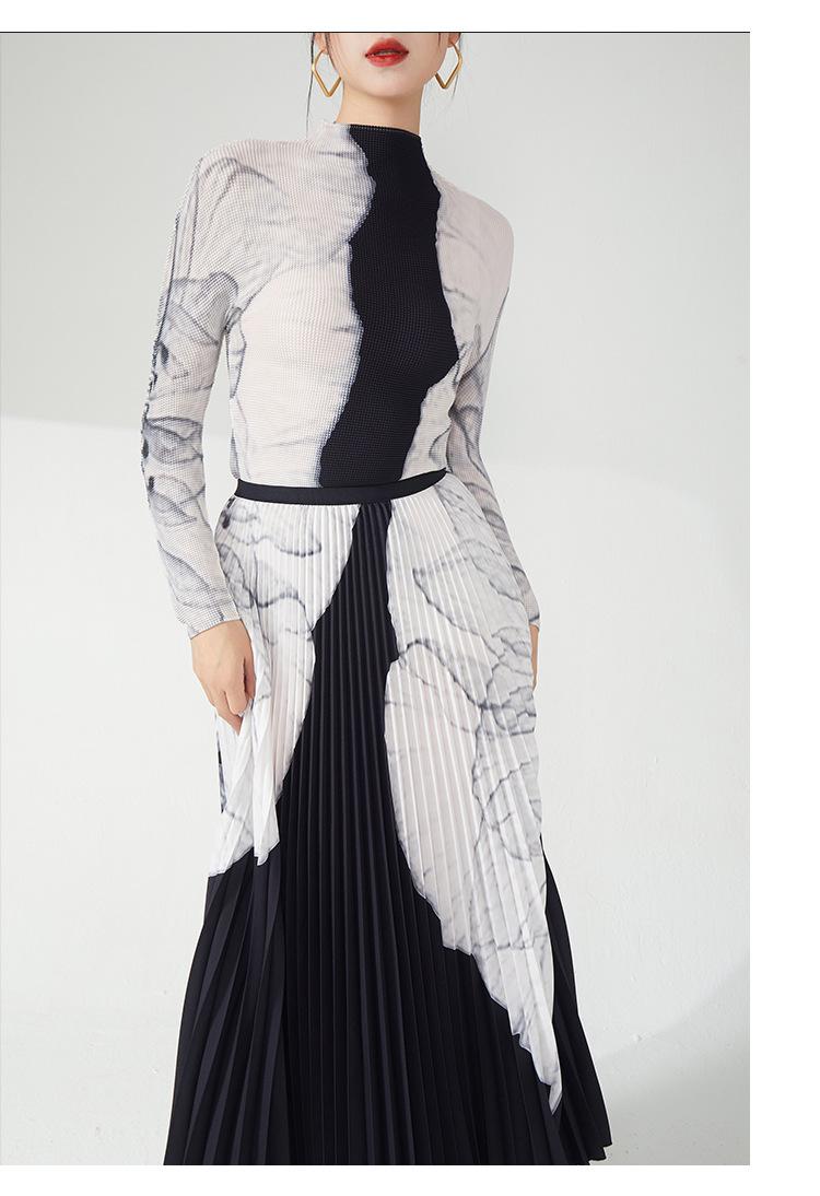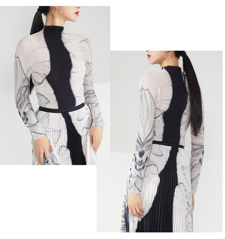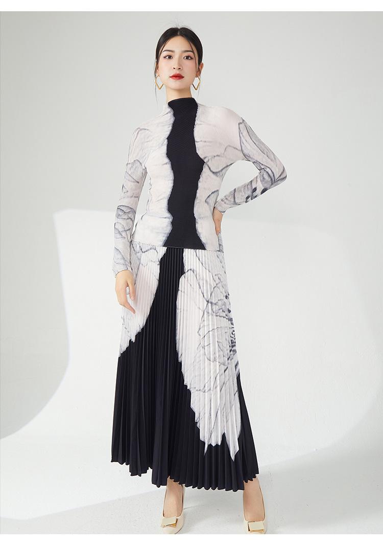 Ropa de moda para mujer, traje plisado de lujo ligero de alta calidad, diseño de nicho con estilo nacional floreciente, falda plisada superior, conjunto de dos piezas