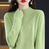 Suéter de Punto Bordado Chinoiserie Corto de Cuello Alto Corto Nuevo para Mujer Otoño e Invierno 2025 100% Lana Pura