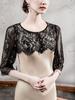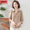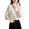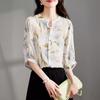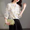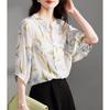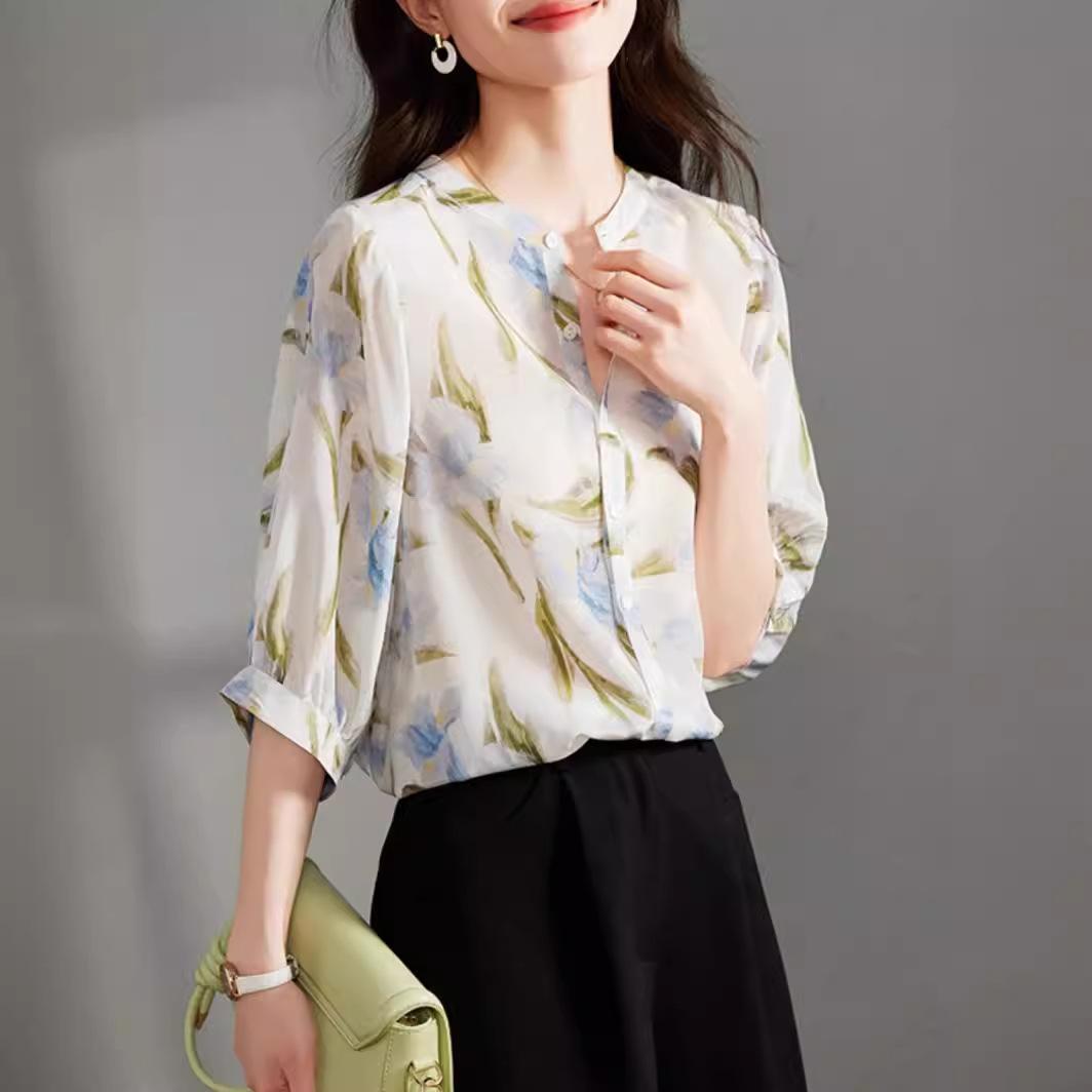 Camisa floral de manga tres cuartos para mujer, top de verano 2024, nueva camisa holgada, fina y elegante con estampado, camisa pequeña