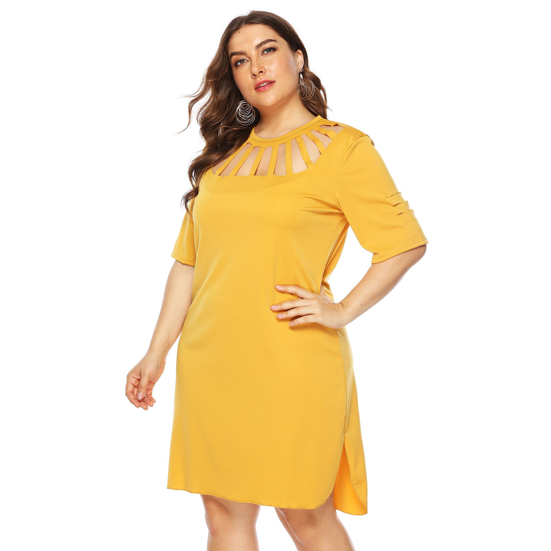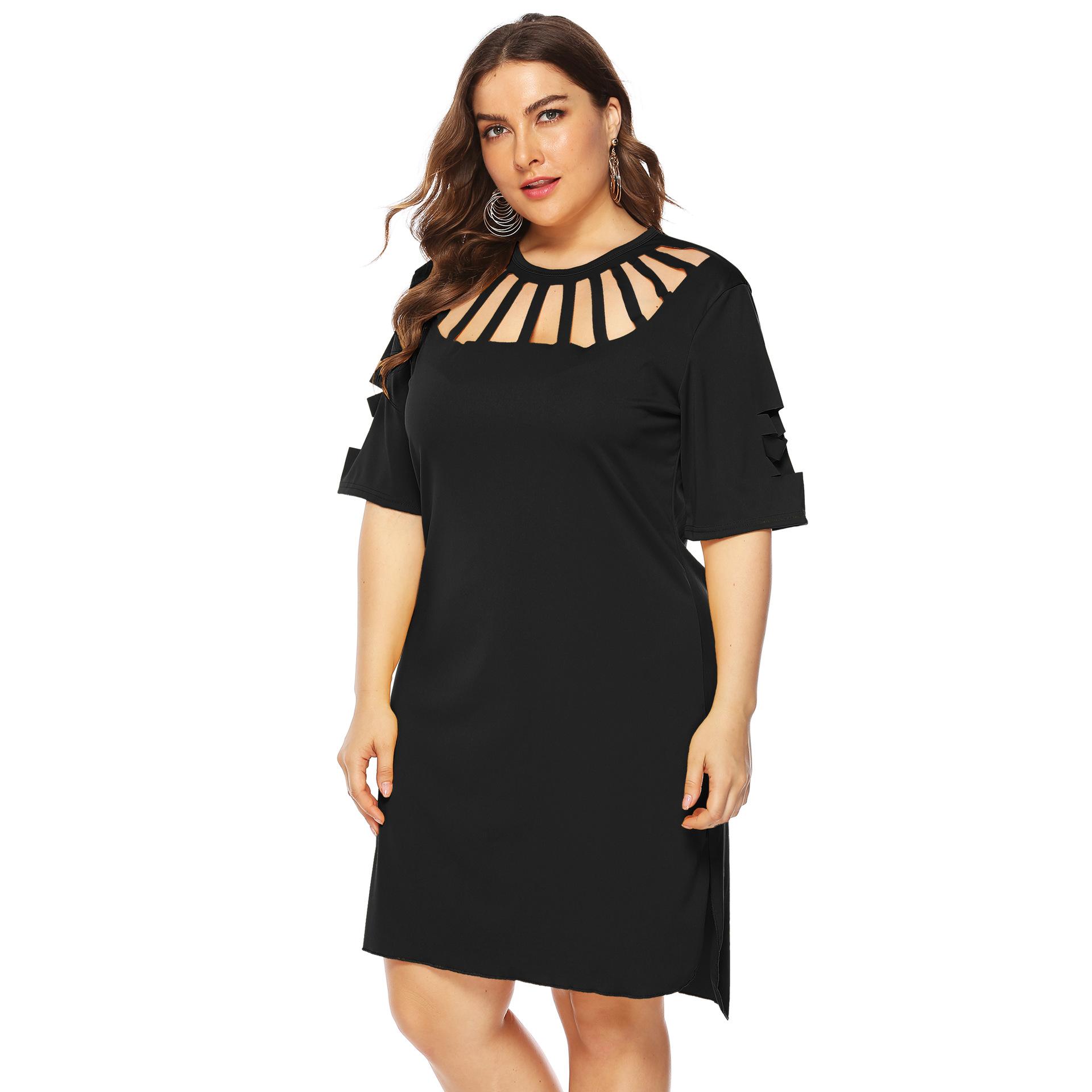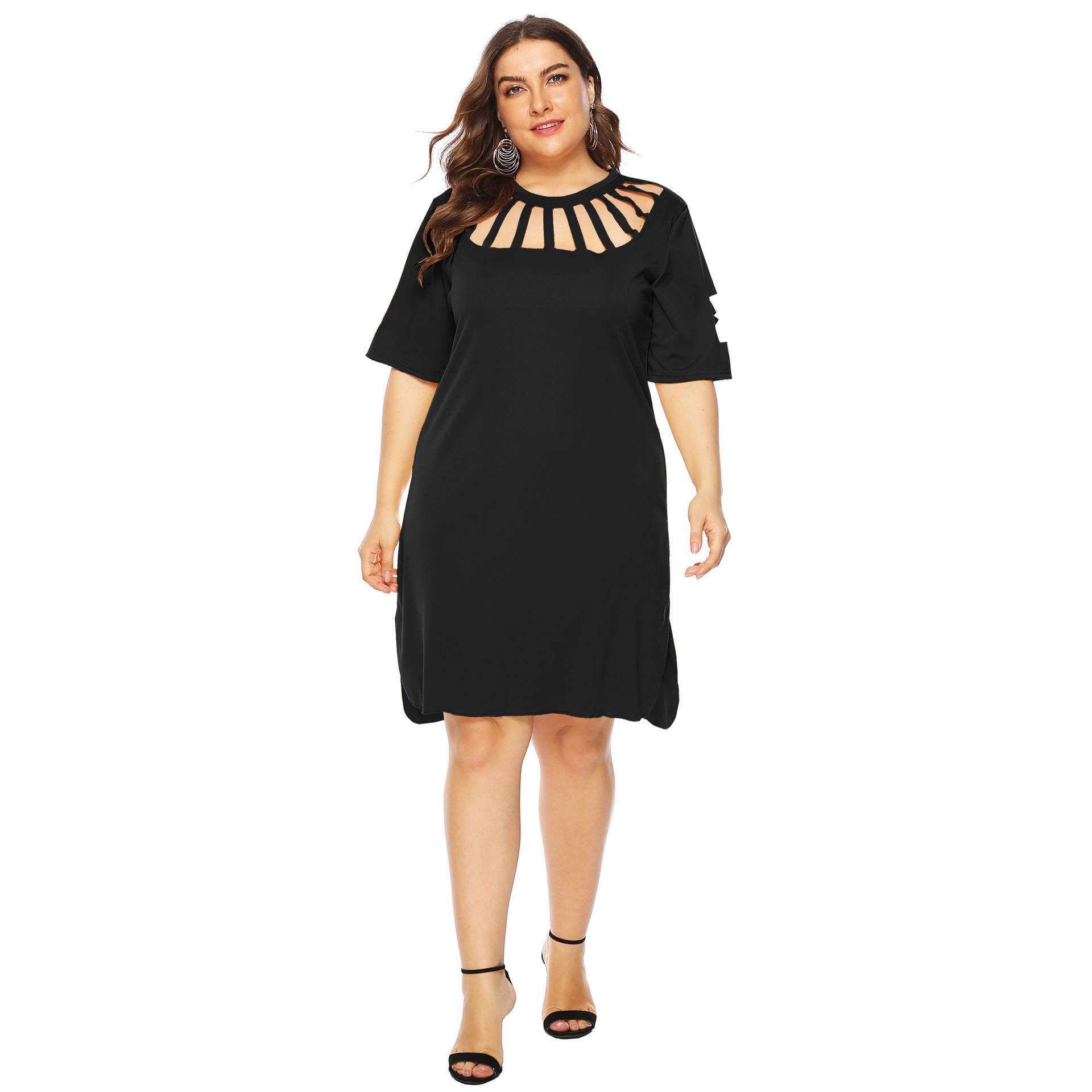 Vestido sexy de corte A para mujer, talla grande, estilo europeo y americano, con abertura holgada y flores quemadas, 11032