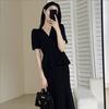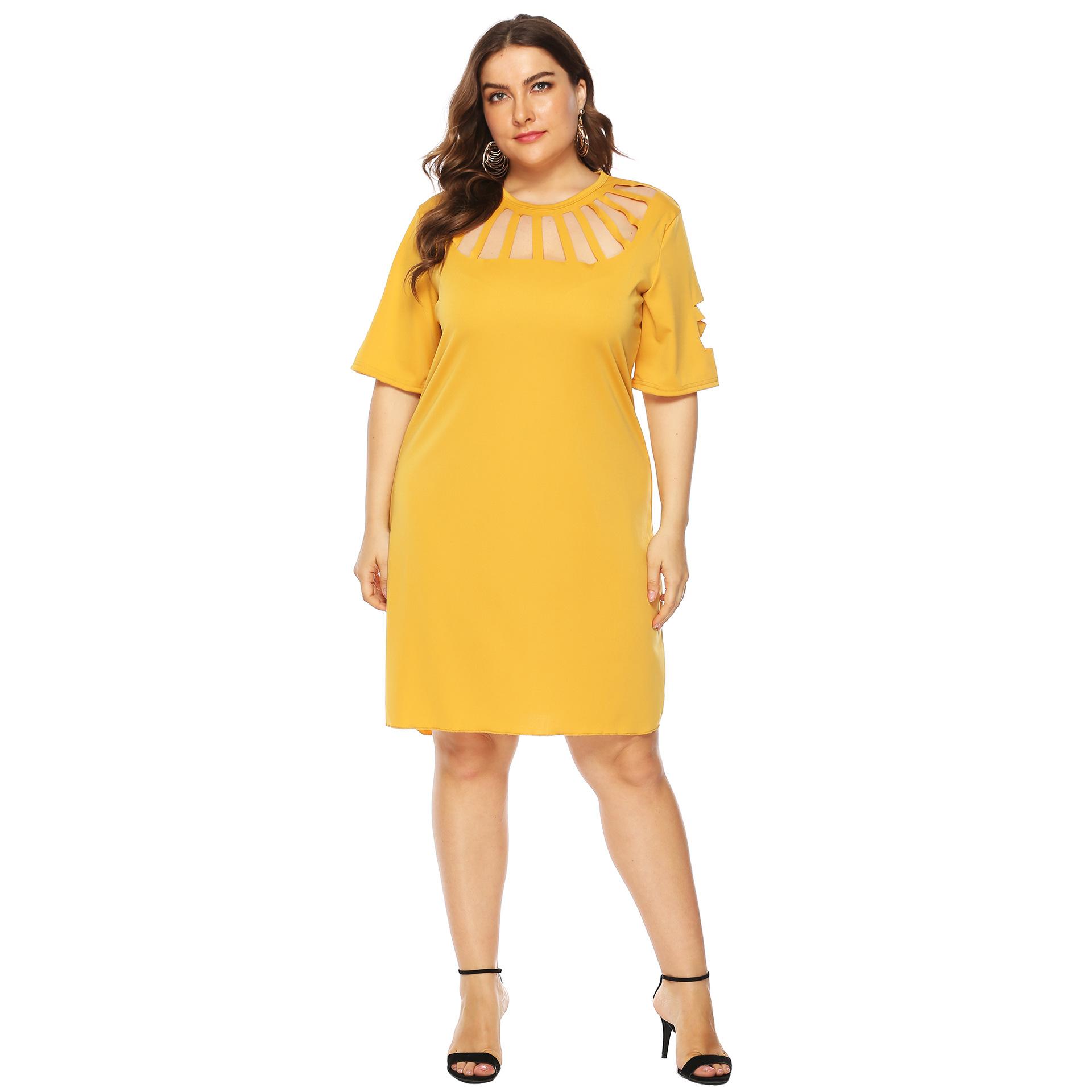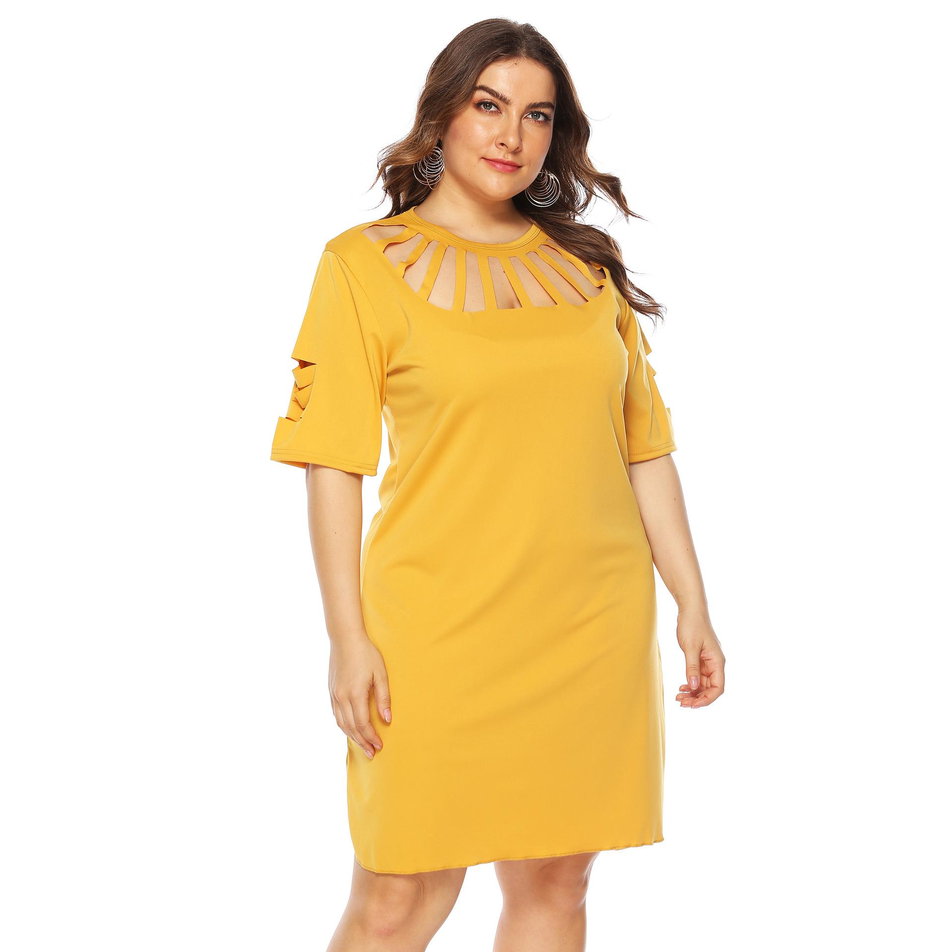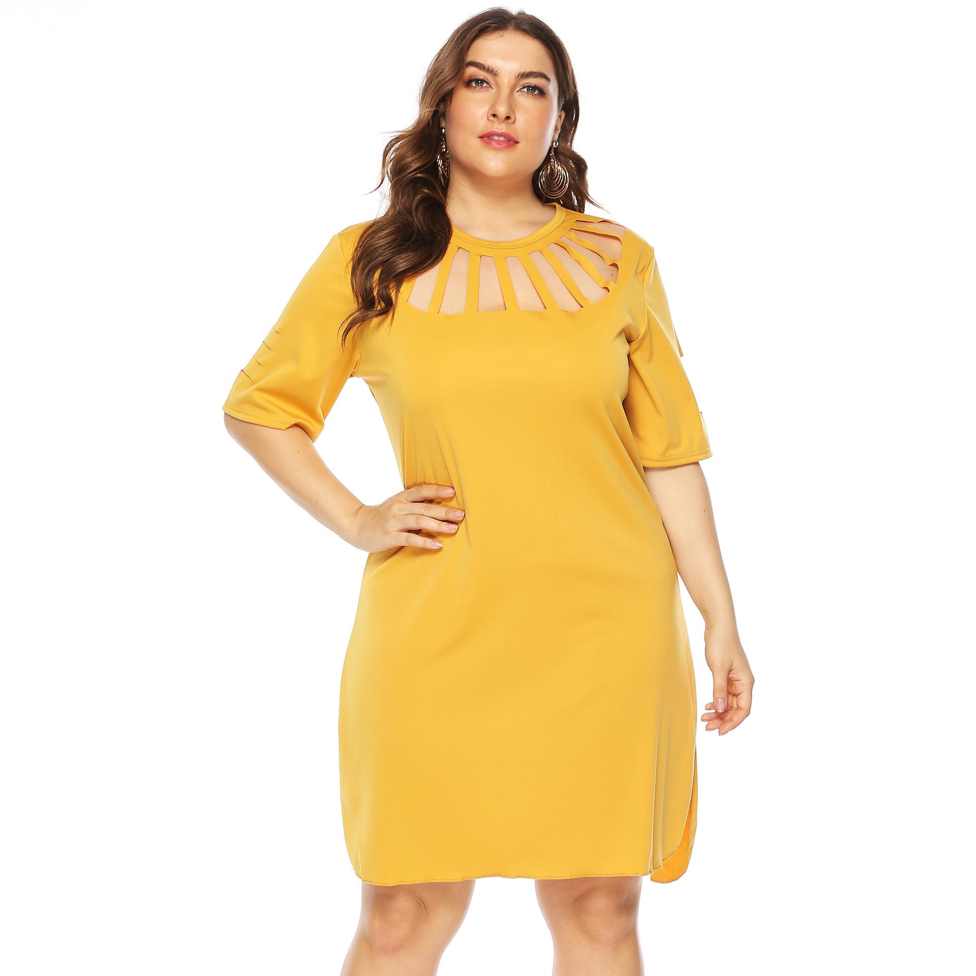 Vestido sexy de corte A para mujer, talla grande, estilo europeo y americano, con abertura holgada y flores quemadas, 11032