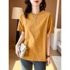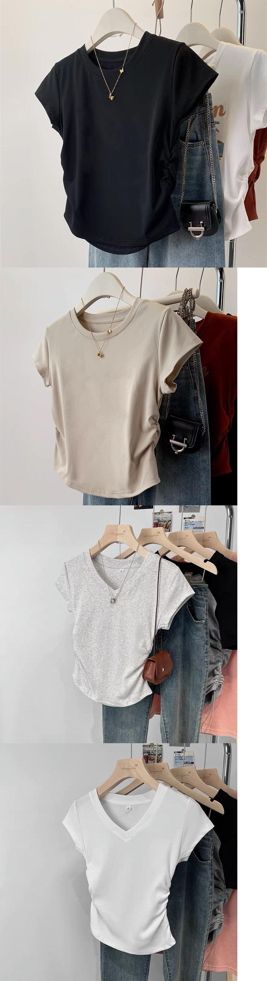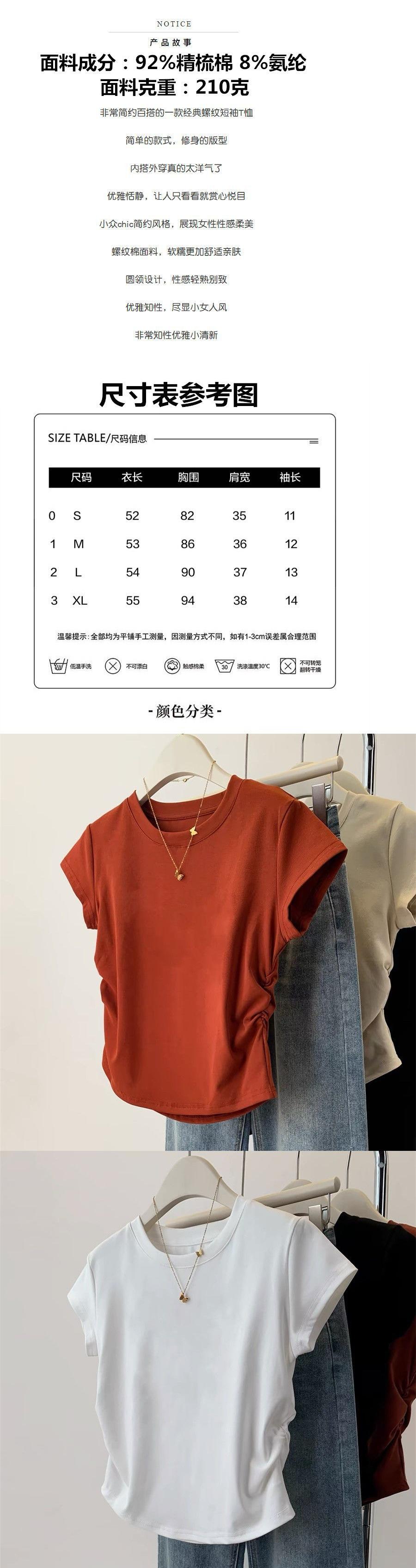 caramel [pleated round neck short sleeve] [high elasticity]], White [pleated round neck short sleeve] [high el...