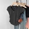 Charcoal gray [pleated V-neck short sleeve] [high elasticity]]