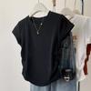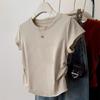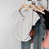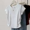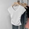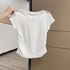 Camiseta de manga corta de algodón blanco con hombros descubiertos para mujer, diseño nuevo de verano, top corto plisado que combina con todo.