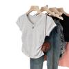 White gray [pleated V-neck short sleeve] [high elasticity]]