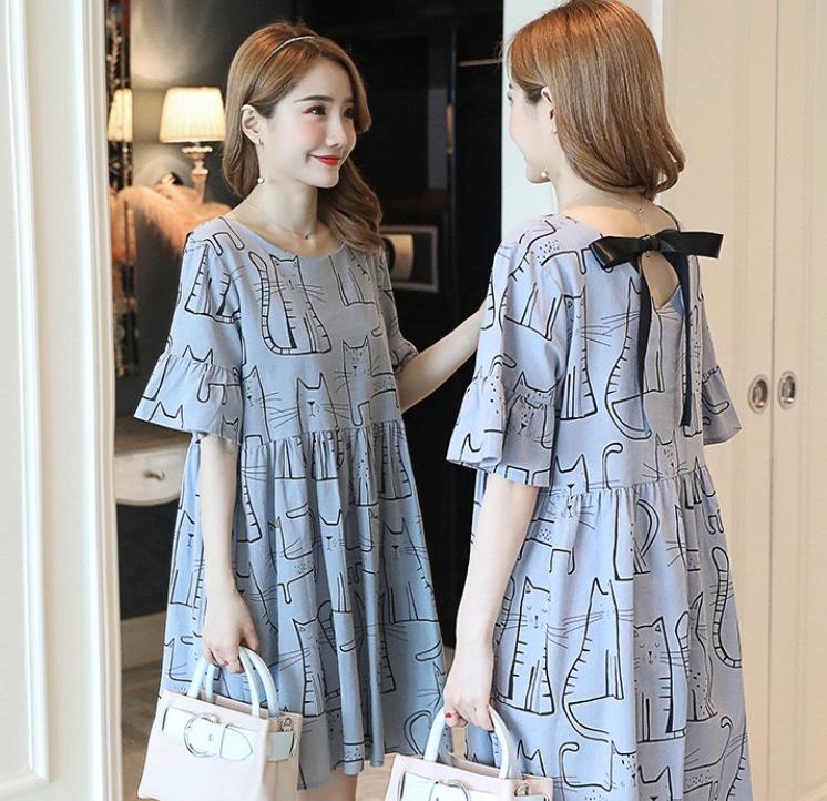 Vestido de verano para embarazadas, nuevo, talla grande, con hombros descubiertos, holgado, de longitud media