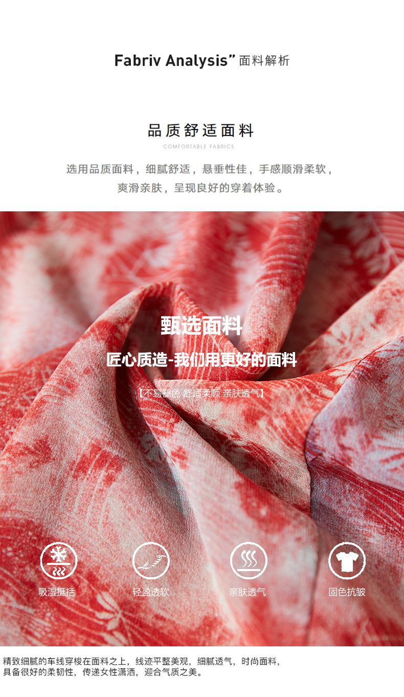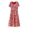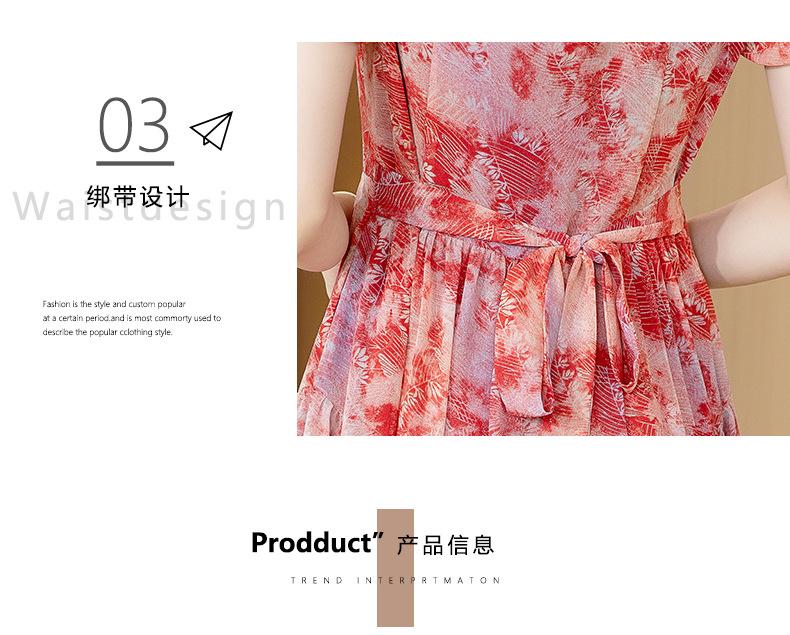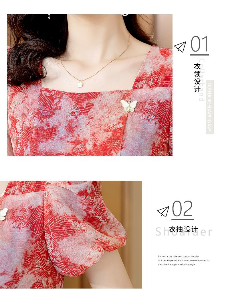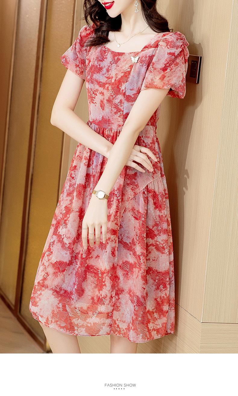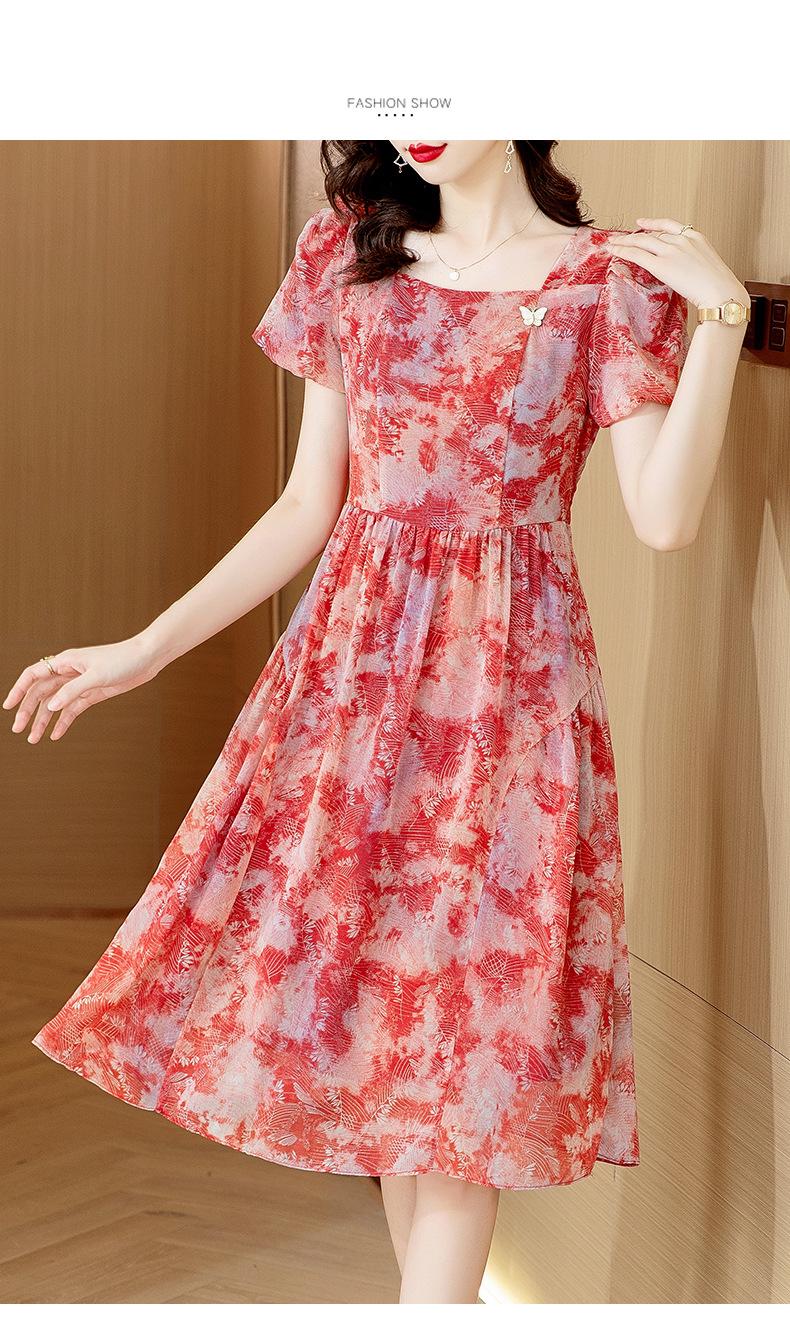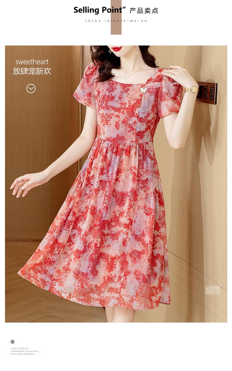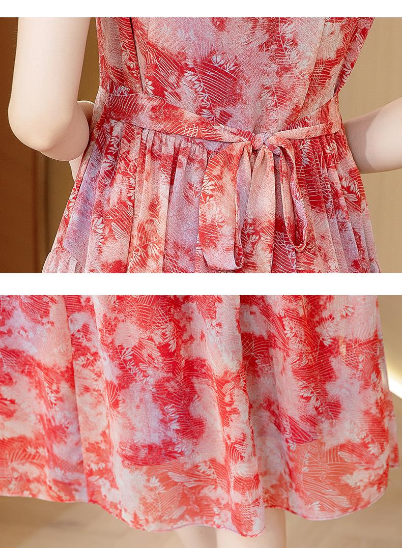 Vestido de gasa con estampado rojo para mujer, novedad de verano 2023, sencillo, a la moda, con cordones en la cintura, cuello cuadrado, largo medio.