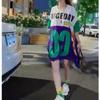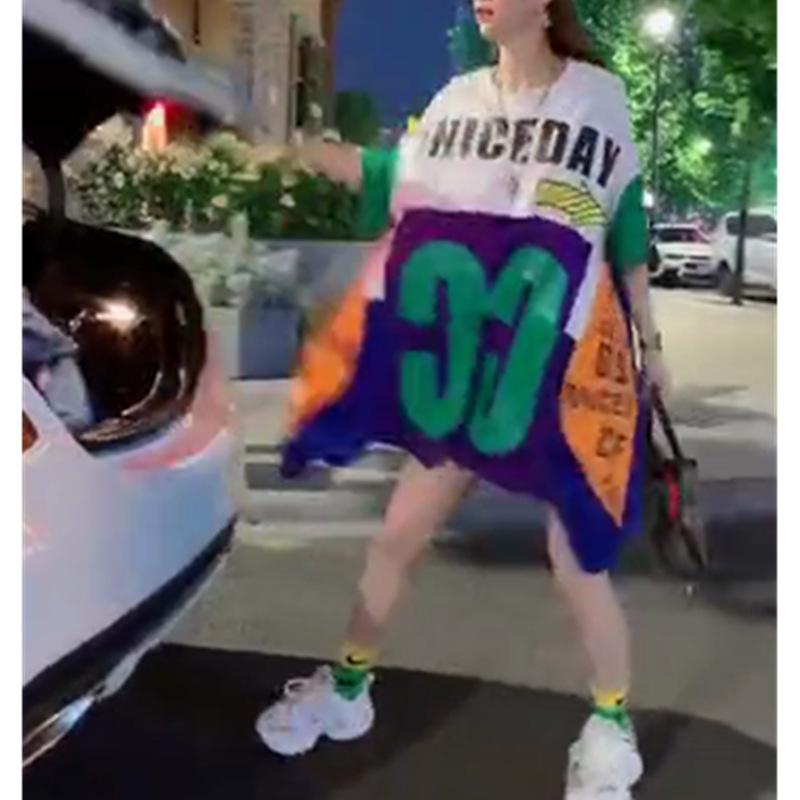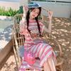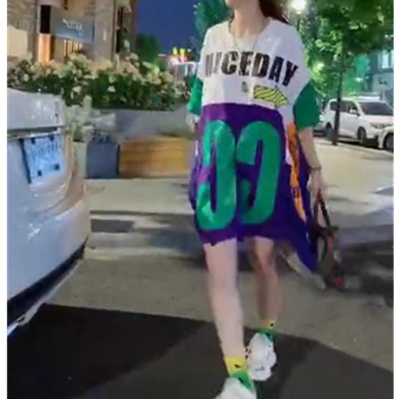 9628 Da Ai Mei Yuan 2025 Verano Nuevo Bloque de Color Vestido Midi de Cuello Redondo Estampado de Moda Corte Holgado