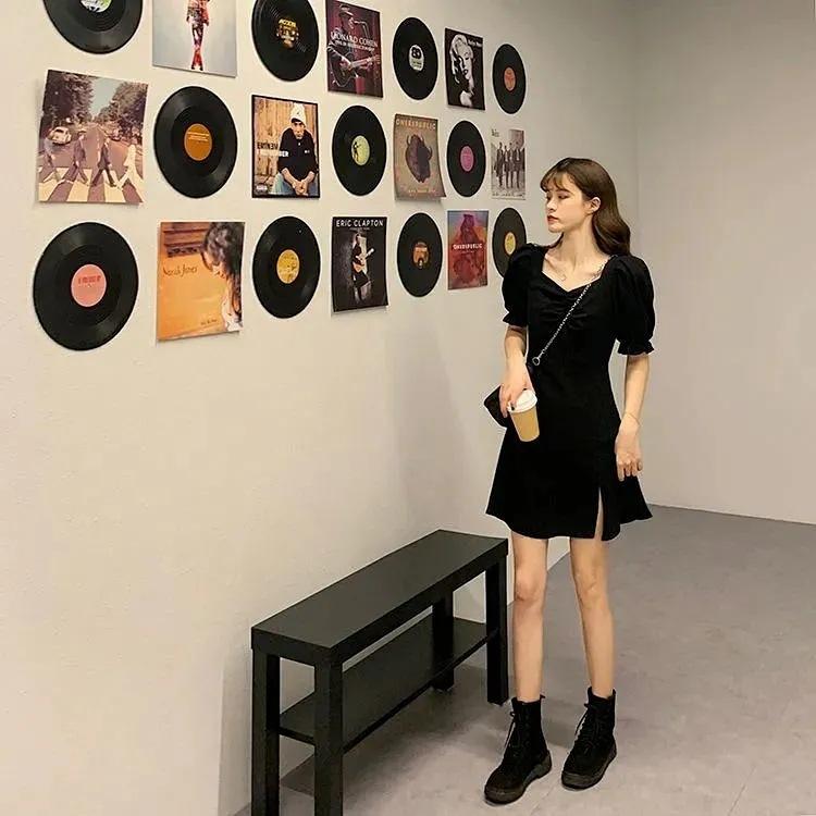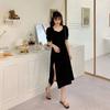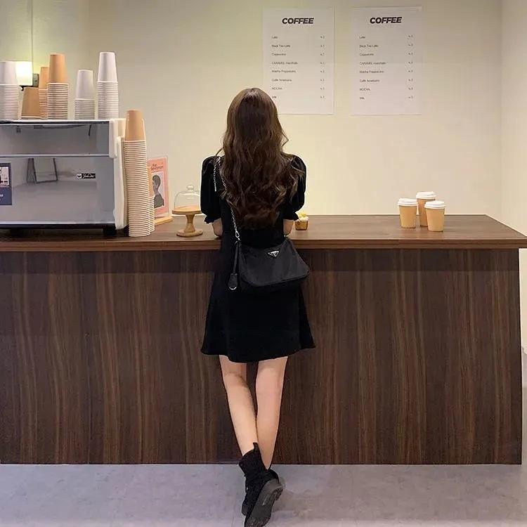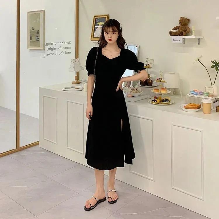Vestido adelgazante de talla grande para hermana gordita, elegante, con cuello cuadrado, cintura ajustada, abertura, estilo francés, negro, estilo Hepburn, corte A