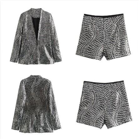 Traje de chaqueta y pantalón corto con abalorios para mujer, estilo transfronterizo europeo y americano, primavera de 2024, w021 81176