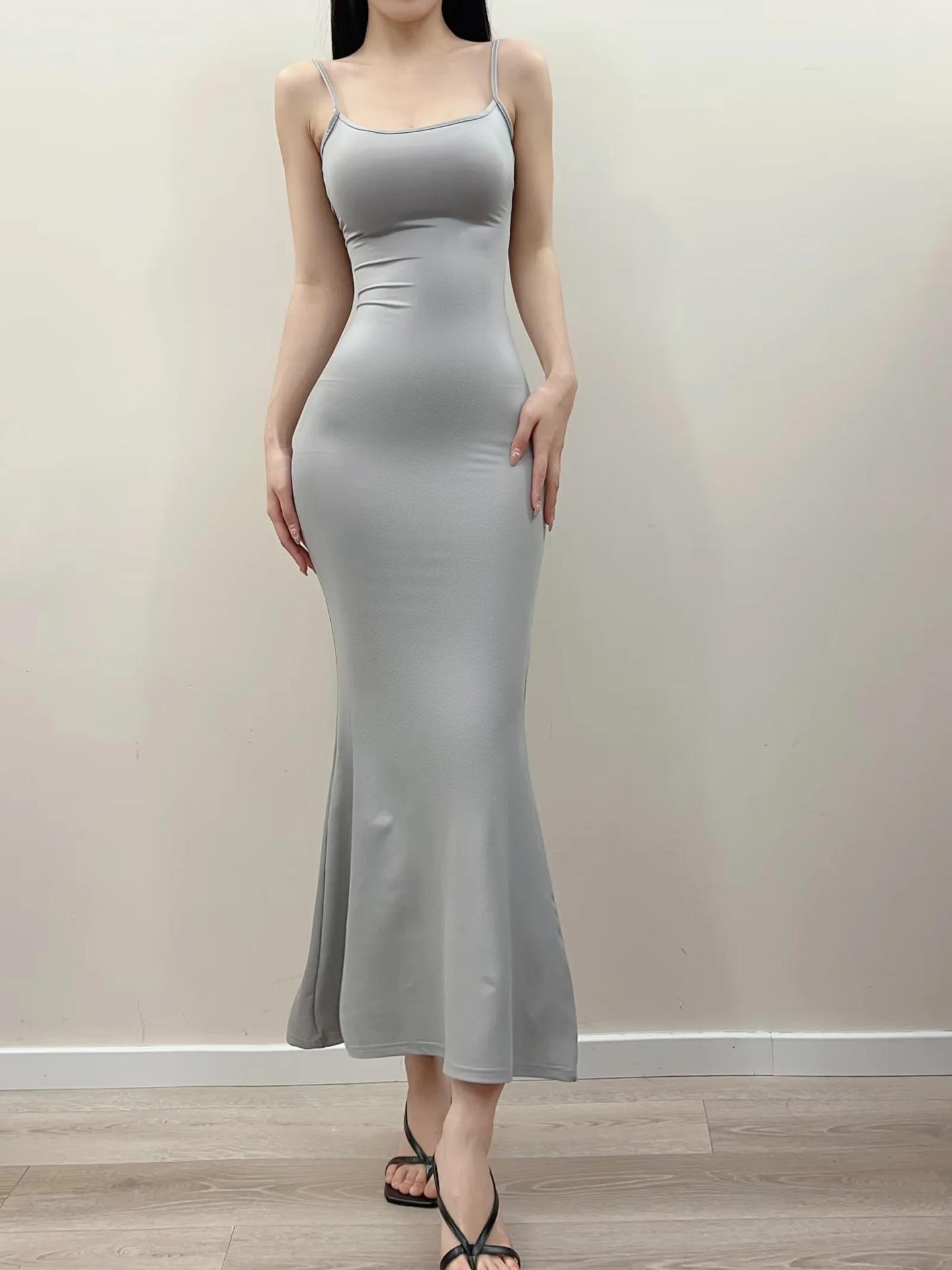 Vestido de cola de pez elástico y sexy con revestimiento líquido para mujer, estilo americano, 2024, nuevo vestido de verano