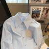 Camisa de manga larga con costuras azules y perforación en caliente para mujer, primavera y otoño 2025, nueva moda, camisa elegante de alta gama de longitud media, tendencia