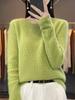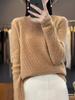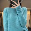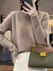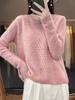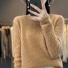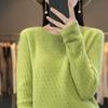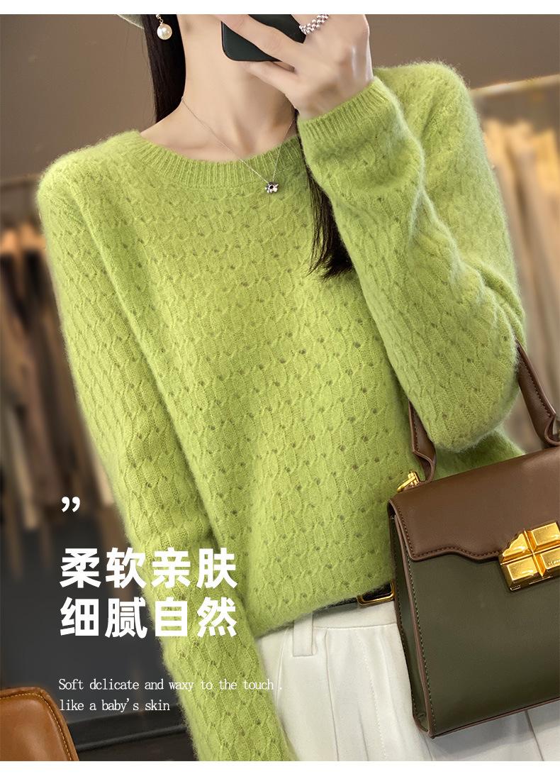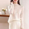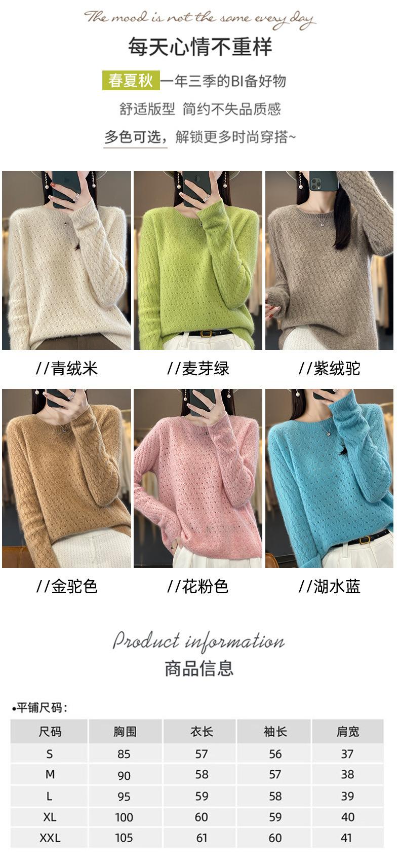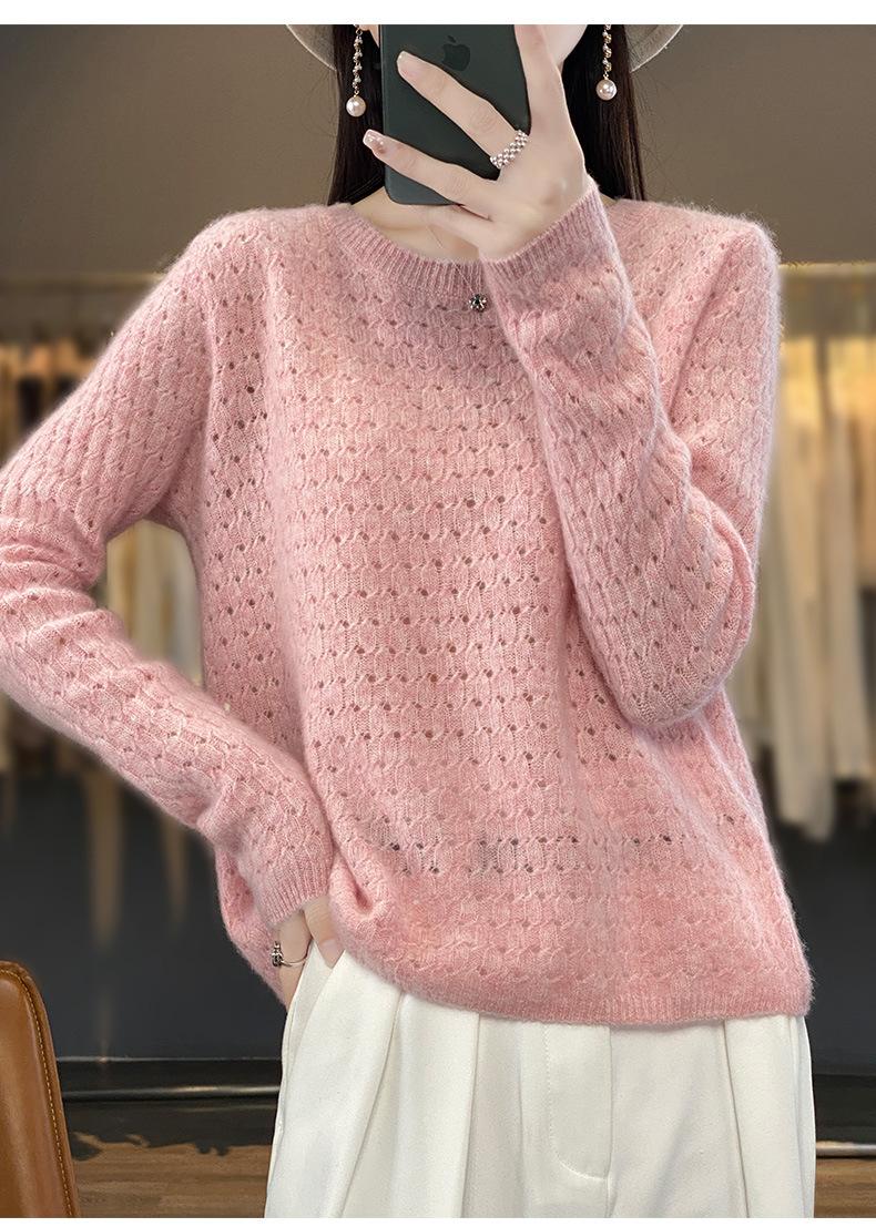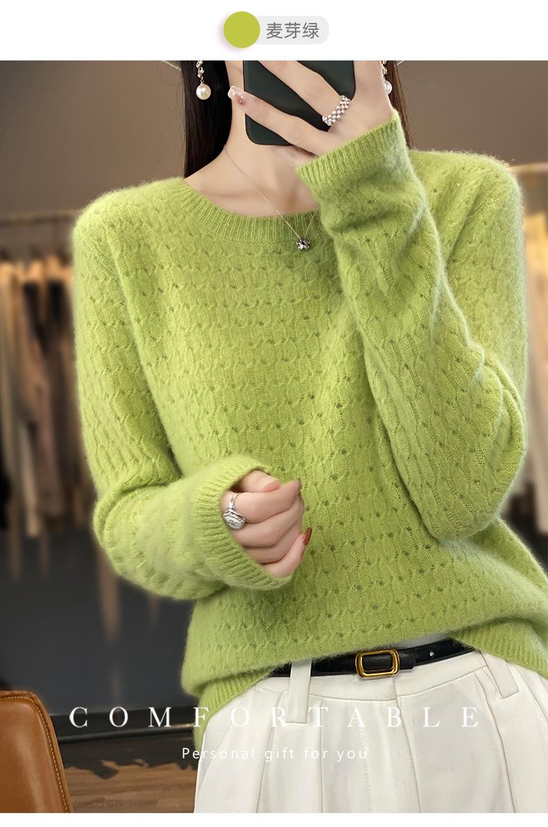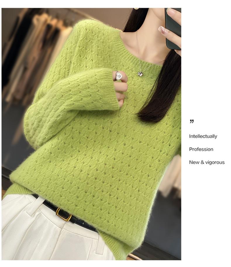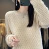 24 Nuevo Otoño 100% Lana Pura Cuello Redondo Suéter Calado para Mujer Suéter Holgado Estilo Occidental Tejido Camiseta Base