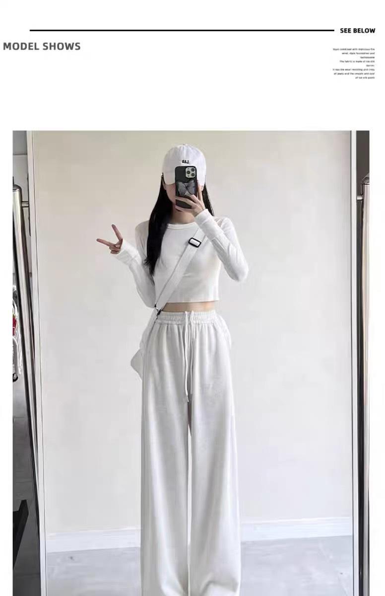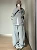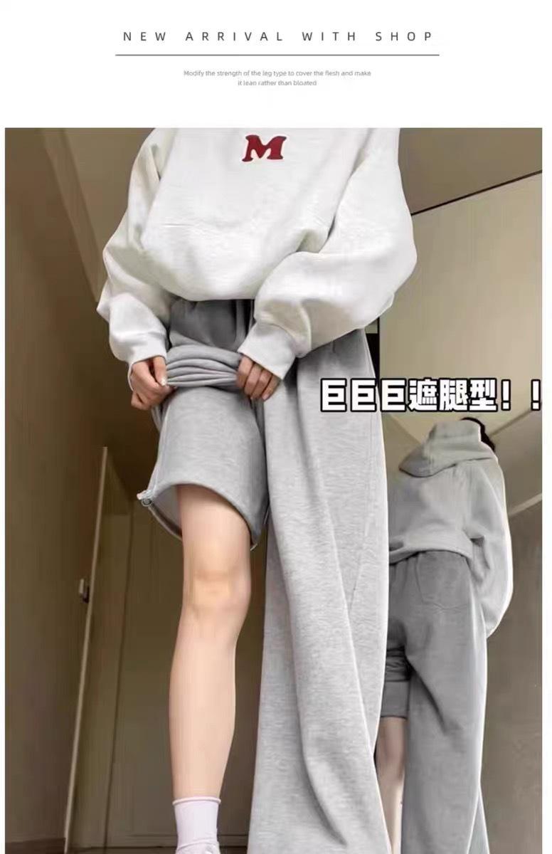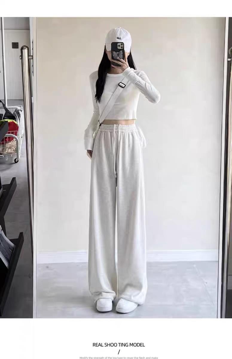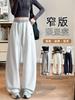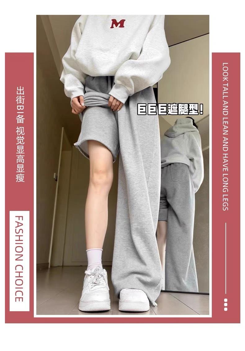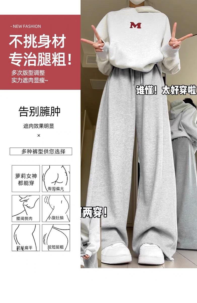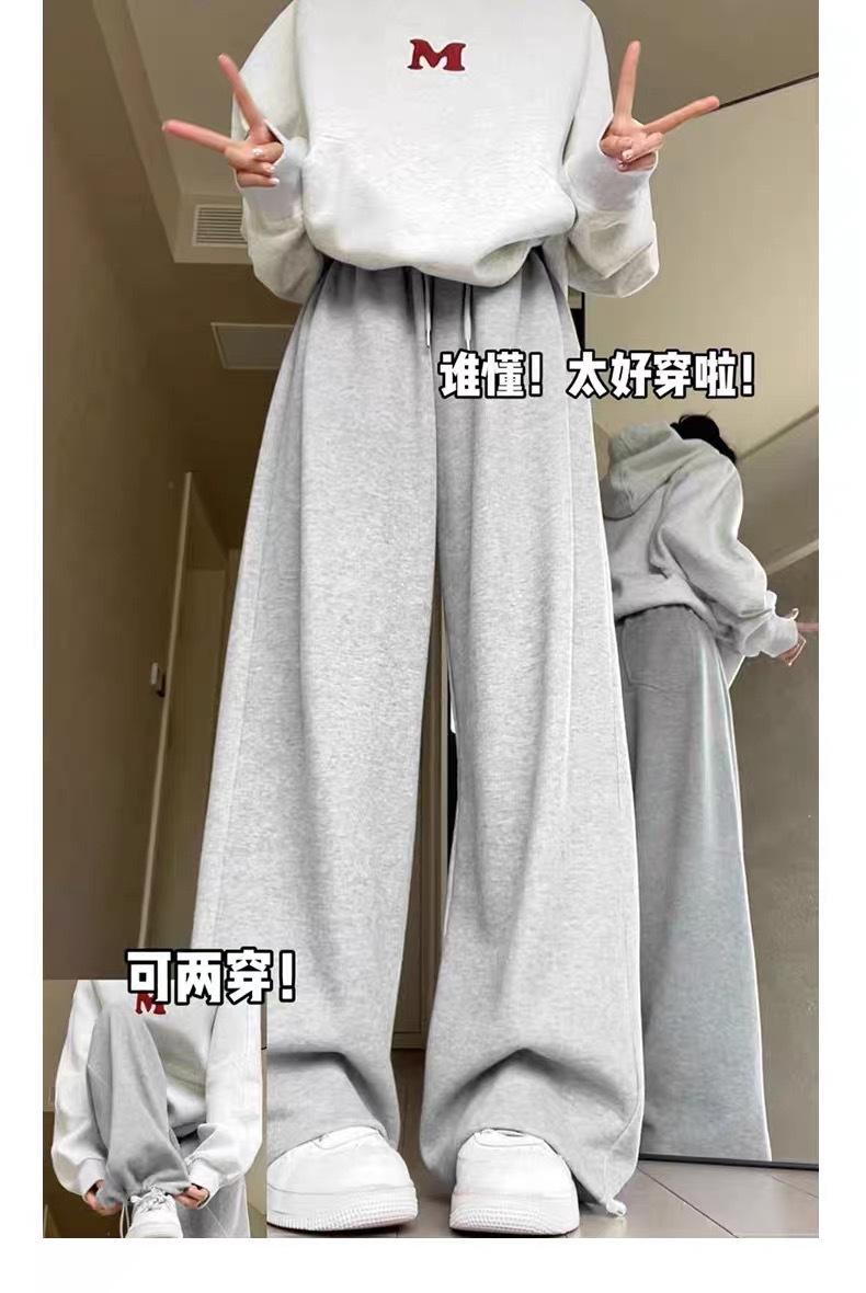 Pantalones deportivos grises con cordón para mujer Otoño e Invierno 2025 Nuevo pantalón holgado de pierna ancha Petite American Casual