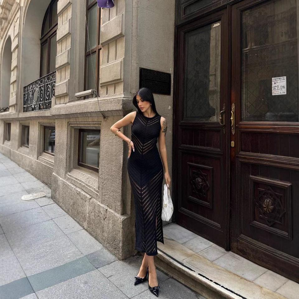 2024 verano nuevo europeo y americano transfronterizo Amazon transfronterizo perspectiva viento puro sexy chica caliente sin mangas falda de cadera