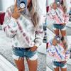 Costuras cruzadas Otoño Europeo y Americano Nuevo para mujer talla grande Chaqueta holgada Sudadera casual con capucha estampada tie-dye para mujer