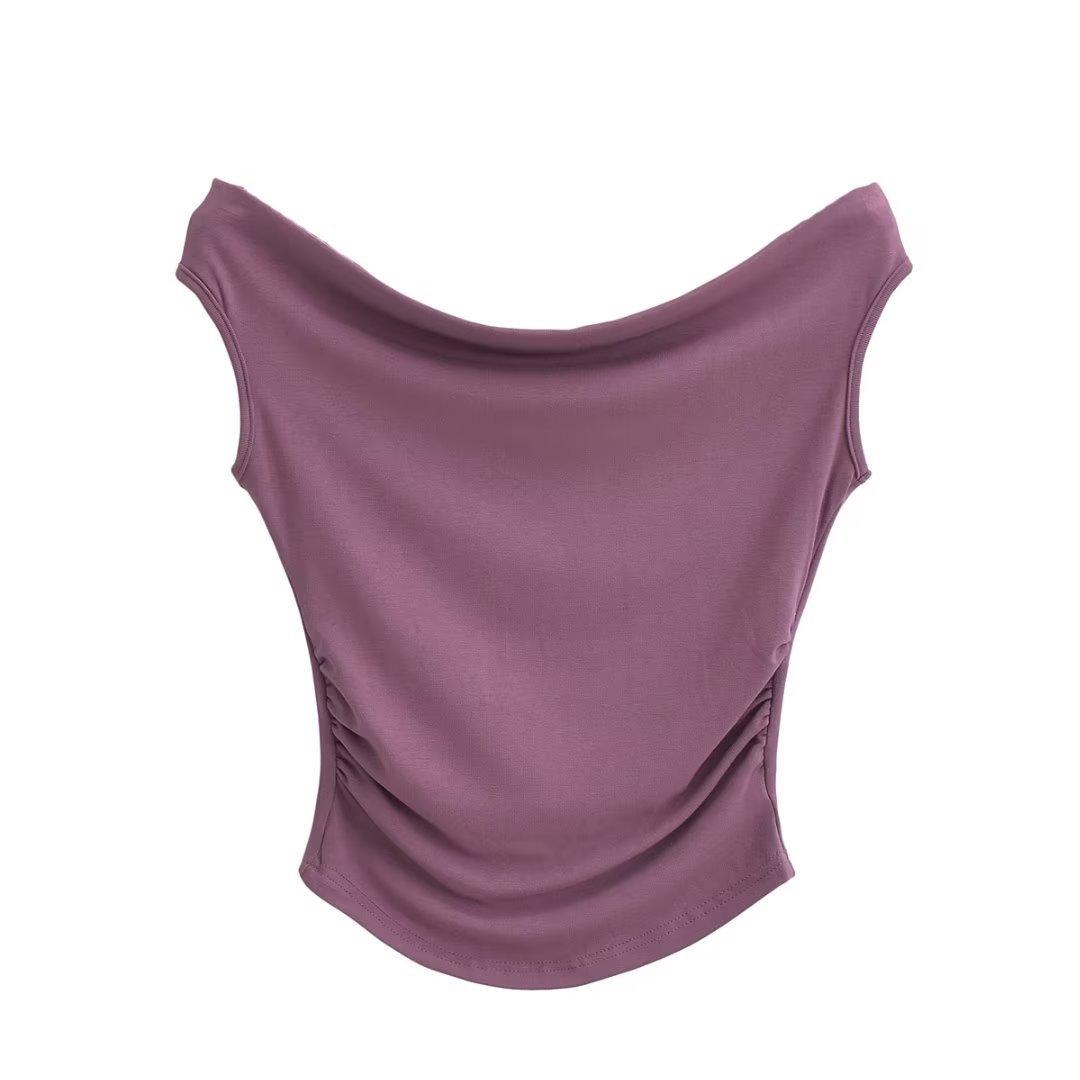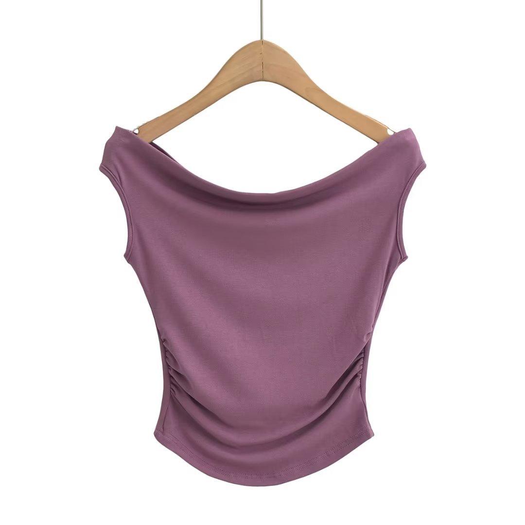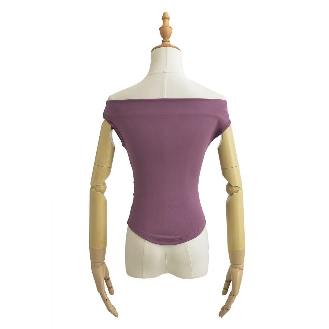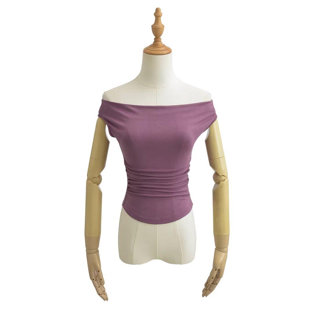 Camiseta de manga corta de verano para mujer, estilo europeo y americano, con hombros descubiertos, C76547