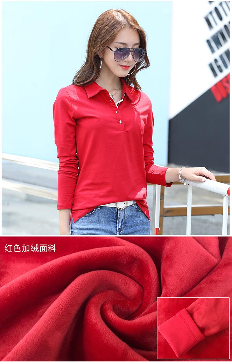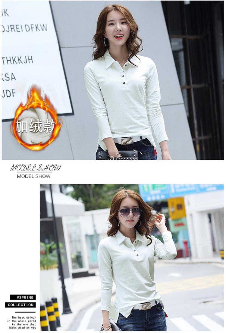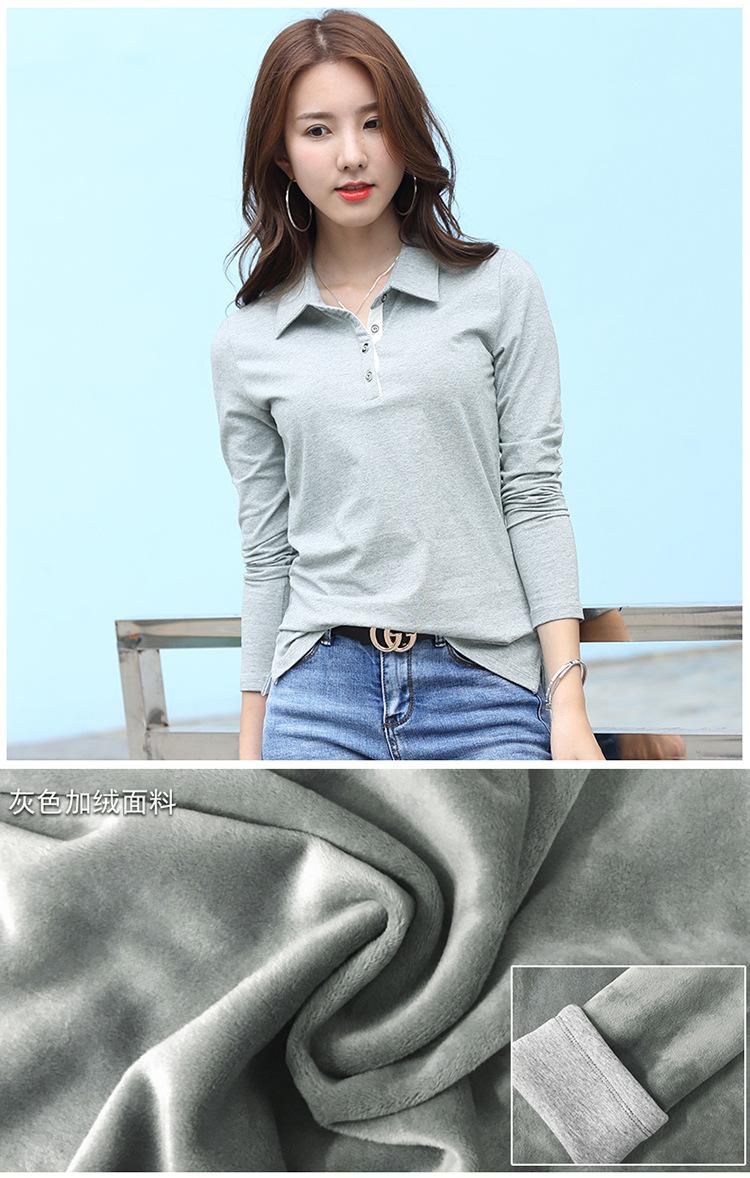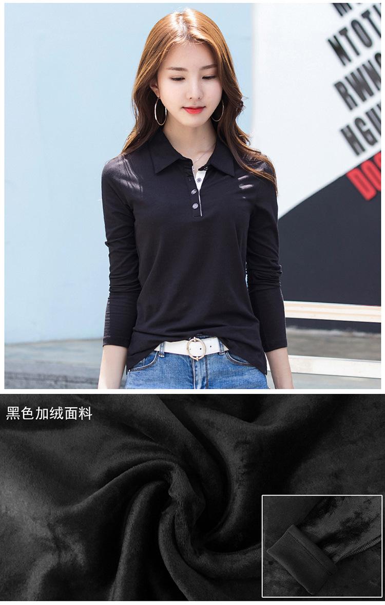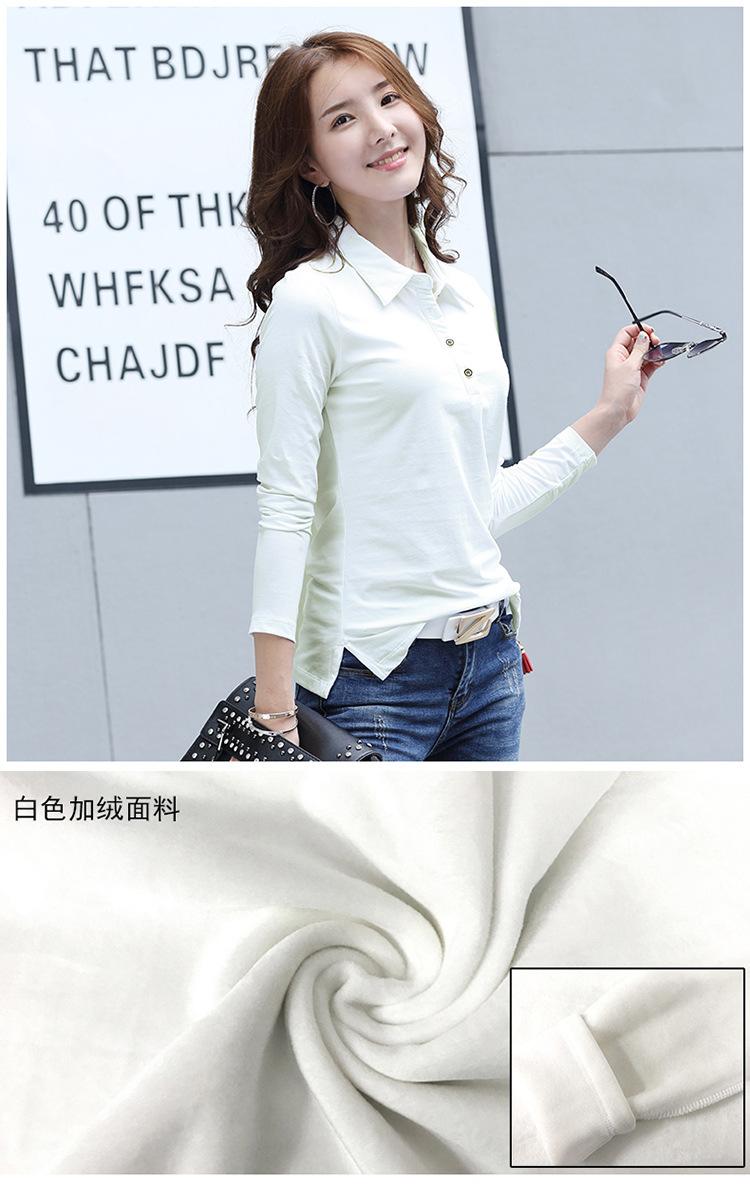 Camisa abotonada con solapa, camiseta de manga larga para mujer, primavera y verano, cálida, afelpada, gruesa, versátil, de algodón, camiseta coreana 1818-2