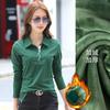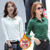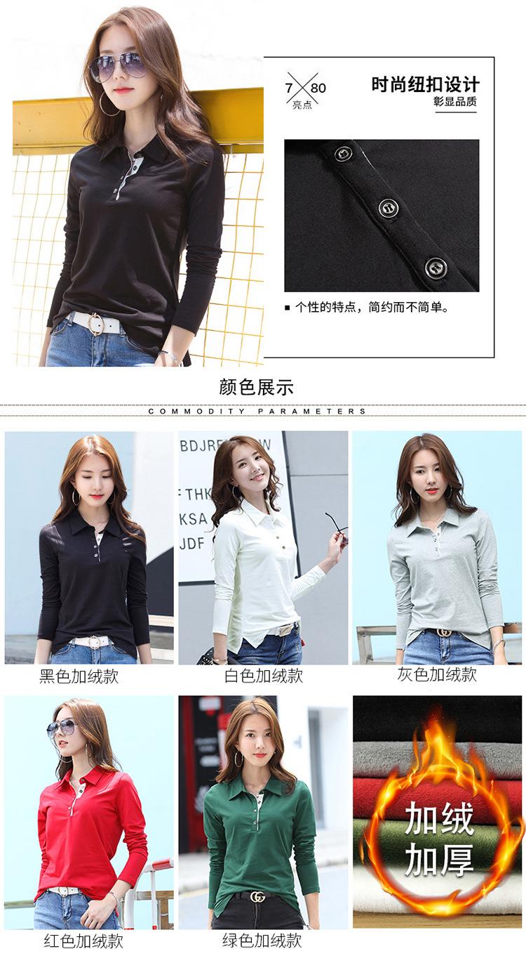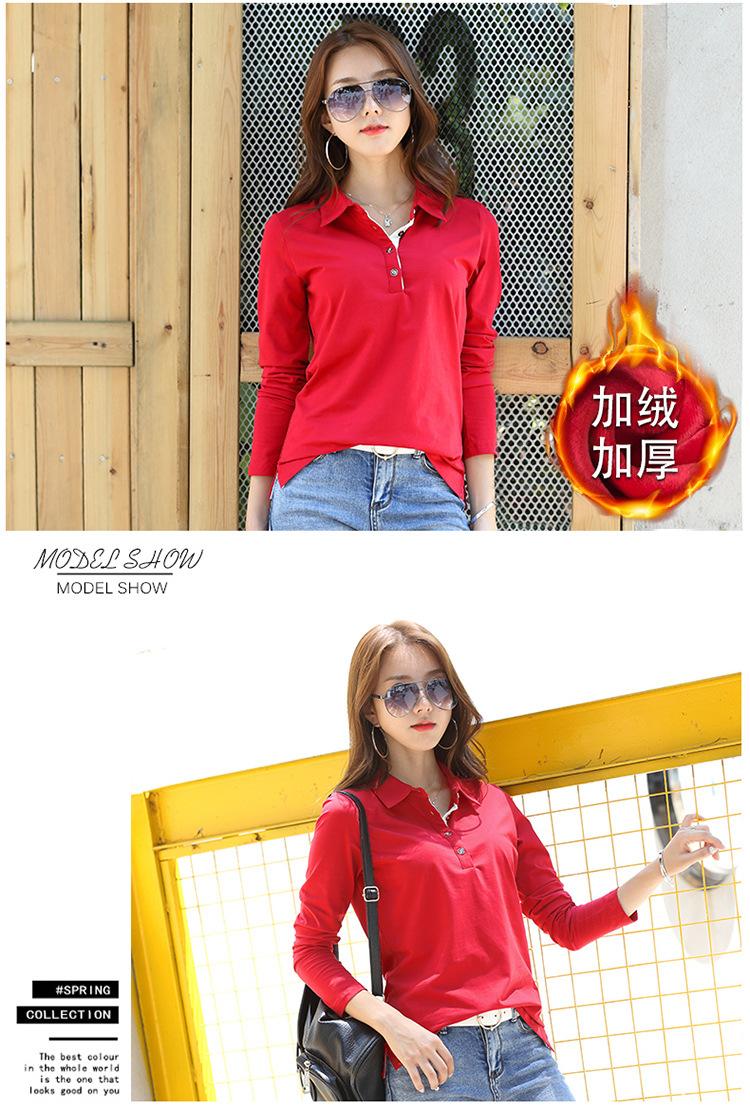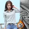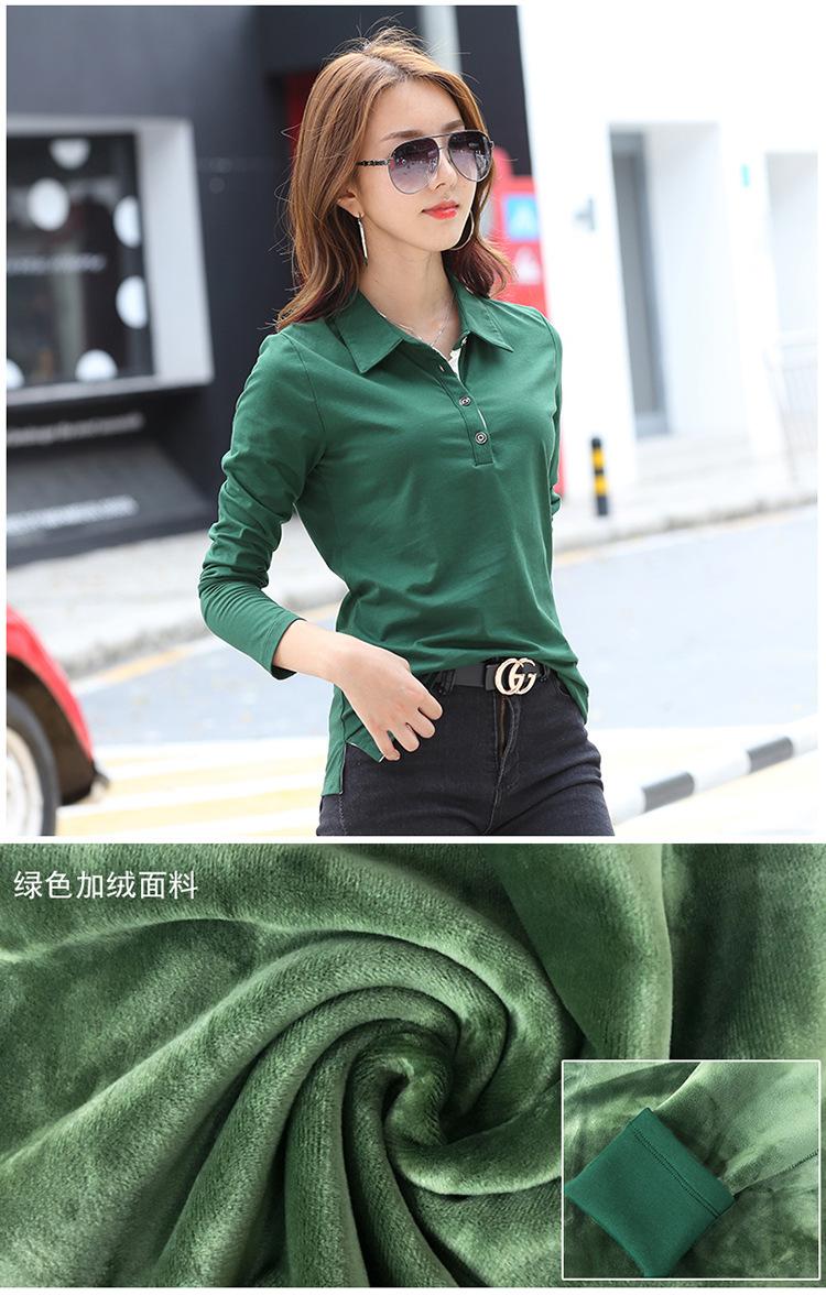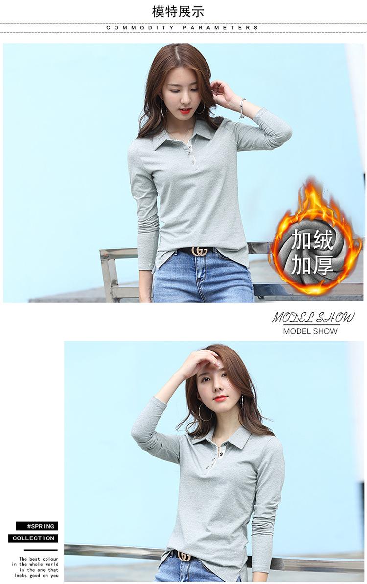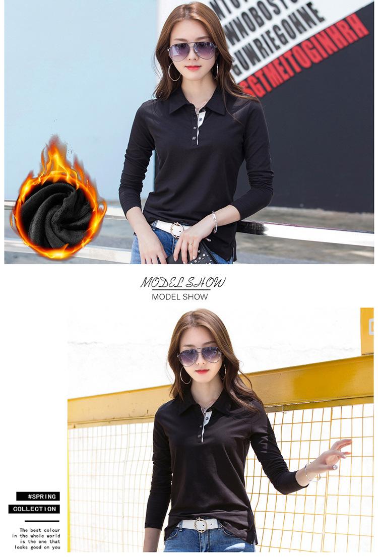 Camisa abotonada con solapa, camiseta de manga larga para mujer, primavera y verano, cálida, afelpada, gruesa, versátil, de algodón, camiseta coreana 1818-2