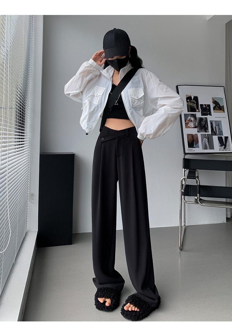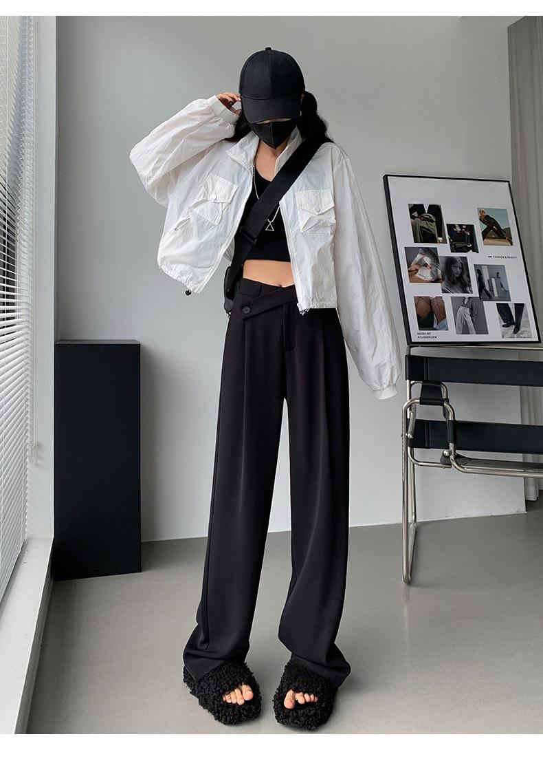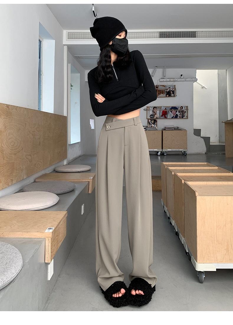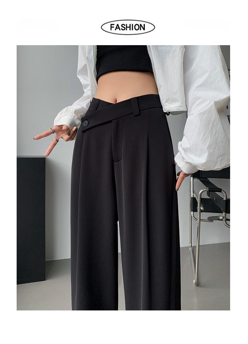 Pantalones de traje de cintura alta Design Sense para mujer, de corte alto, con corte bajo, primavera y otoño de 2025, nuevos pantalones adelgazantes de pierna ancha, elegantes y estrechos.