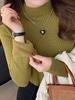 Camisa de punto gruesa con forro polar de color liso y cuello alto de terciopelo de una pieza para mujer, suéter interior cálido estampado nuevo para otoño e invierno