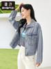 Abrigo de mezclilla lavado con solapa Zhenqi, top de diseño recto de manga larga pequeño para mujer CN387