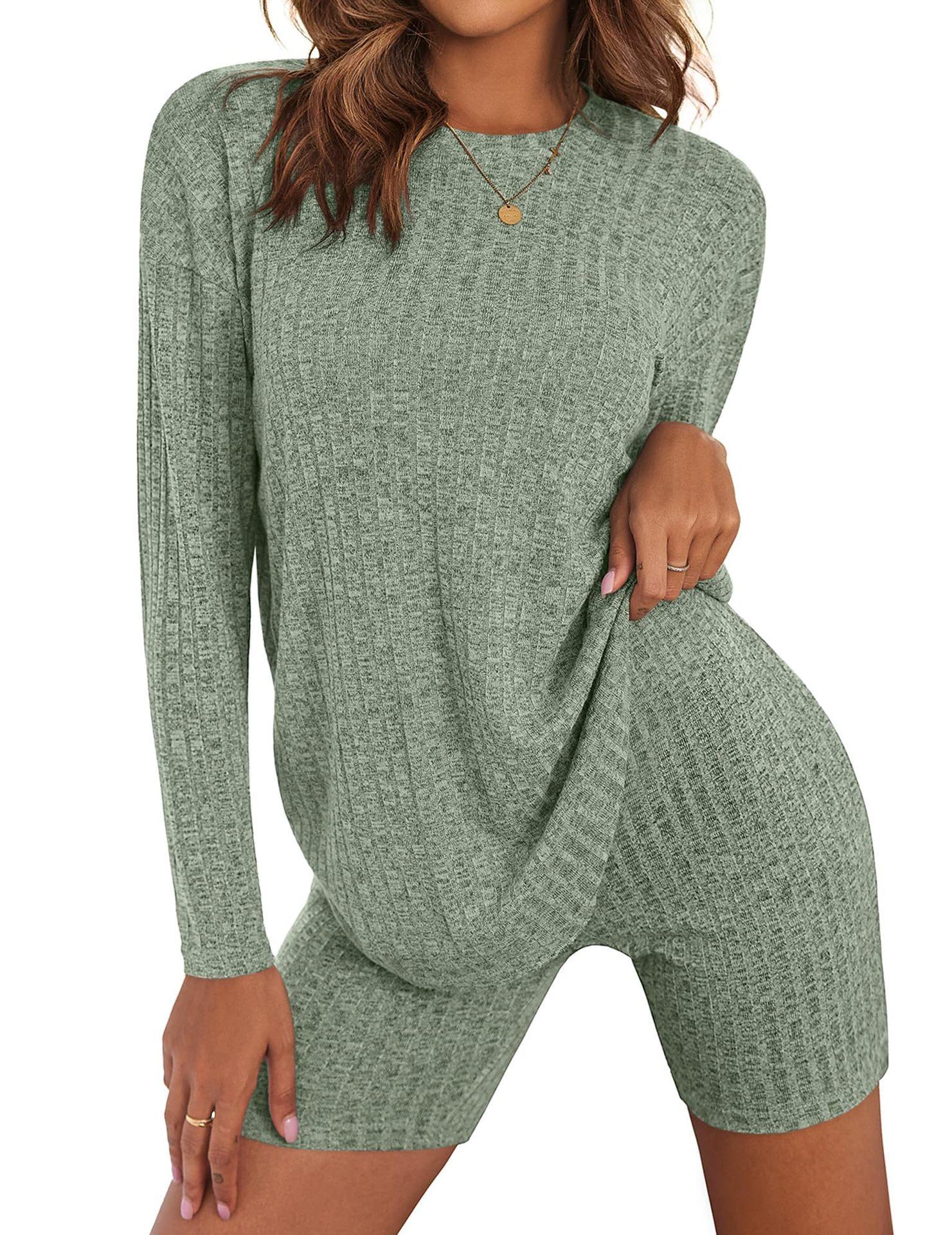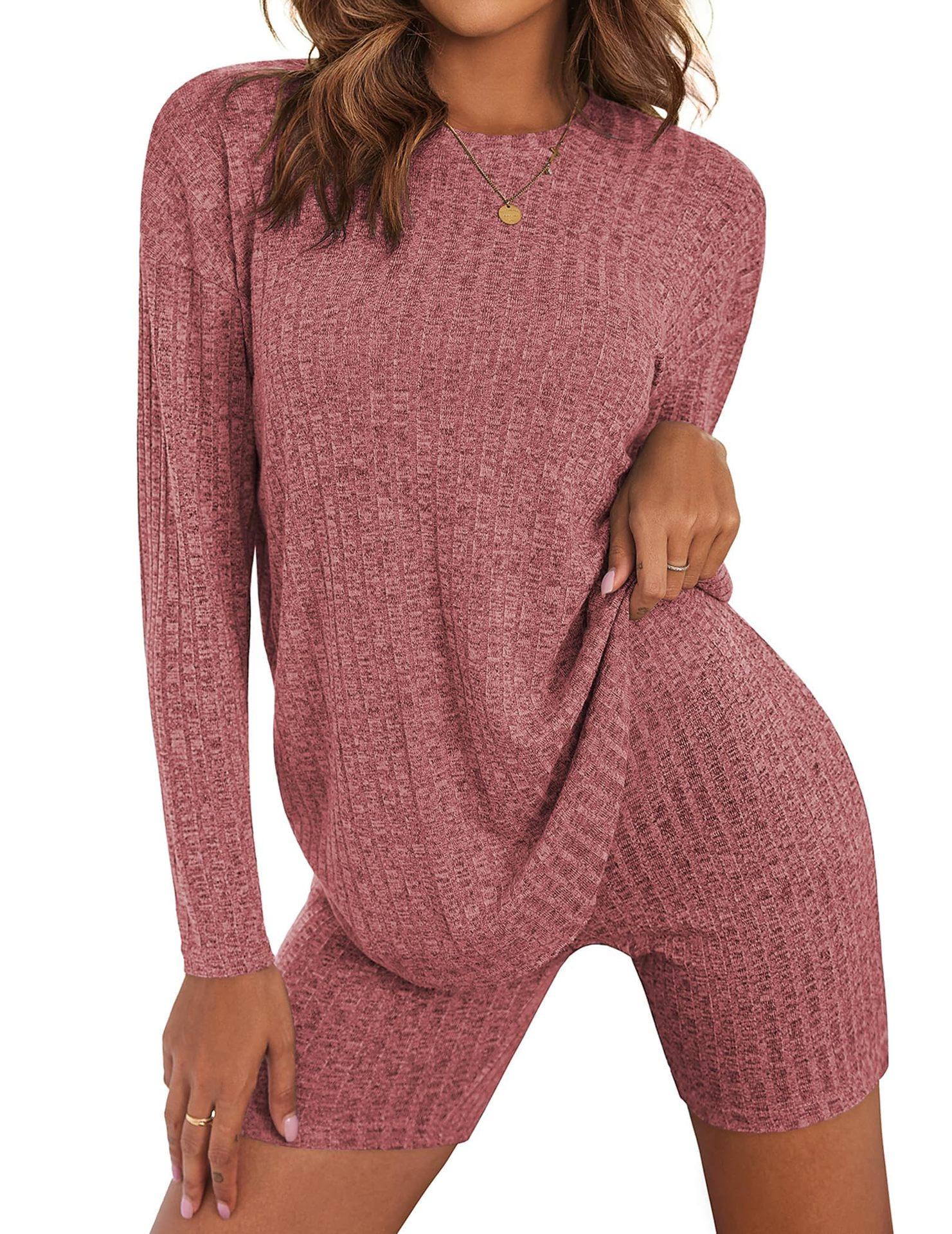 Ropa de mujer de comercio exterior transfronterizo europeo y americano, traje casual de moda de Amazon, otoño e invierno 2023, camisa de manga larga y pantalones cortos, conjunto de dos piezas