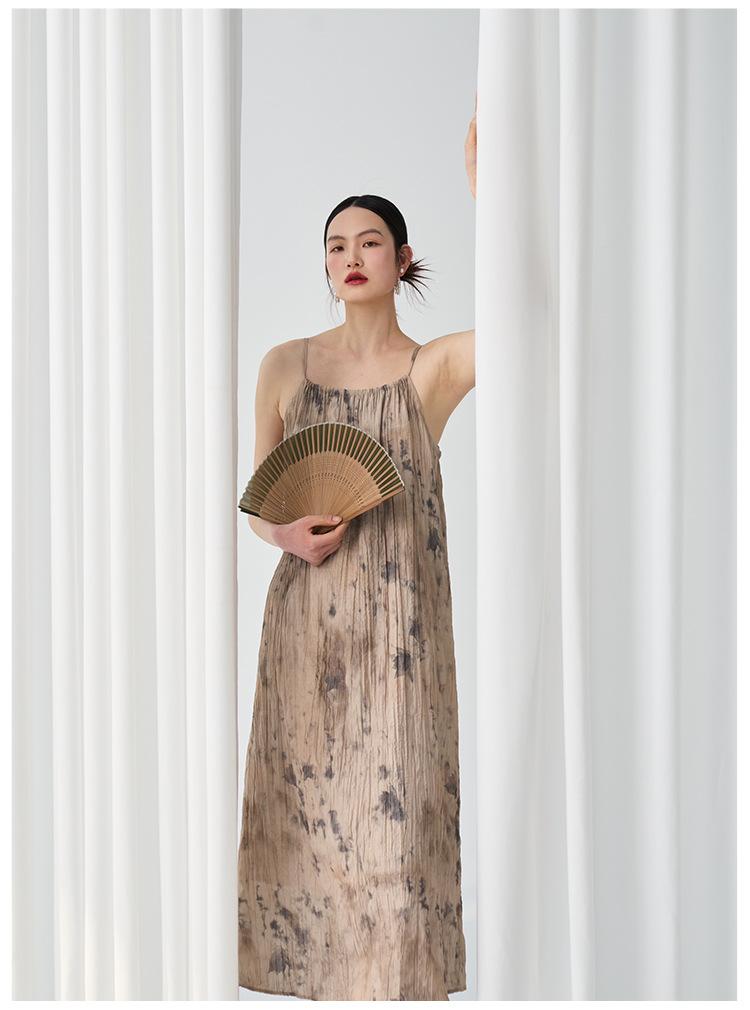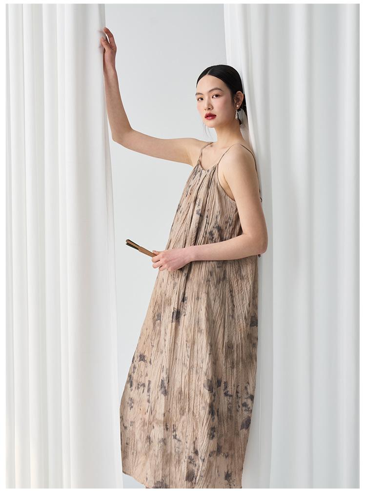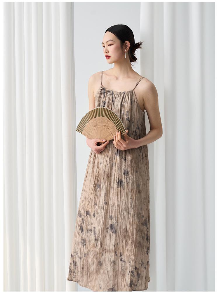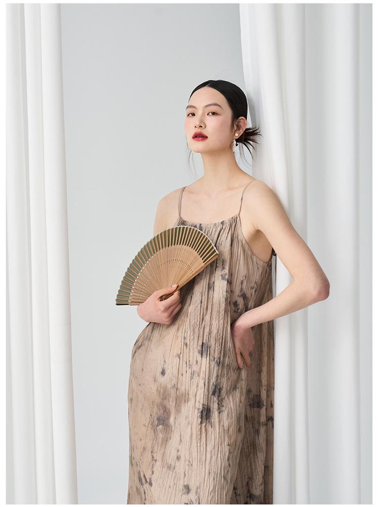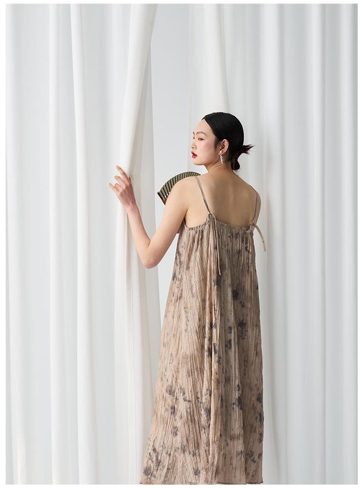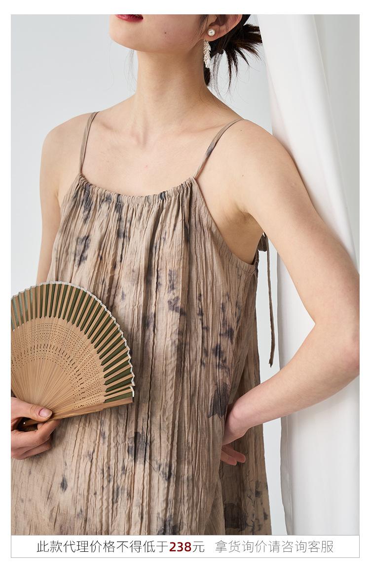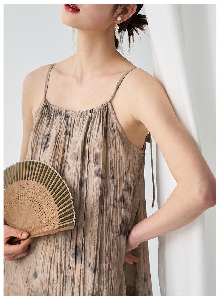 [Shengdu] Primavera y Verano Nuevo Nuevo Estilo Nacional Chinoiserie Estilo Zen Cool Vestido Estampado con Tirantes Ajustables para Mujer