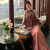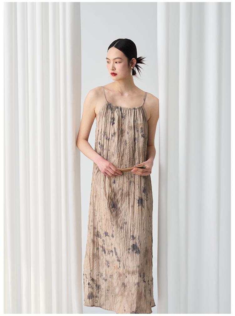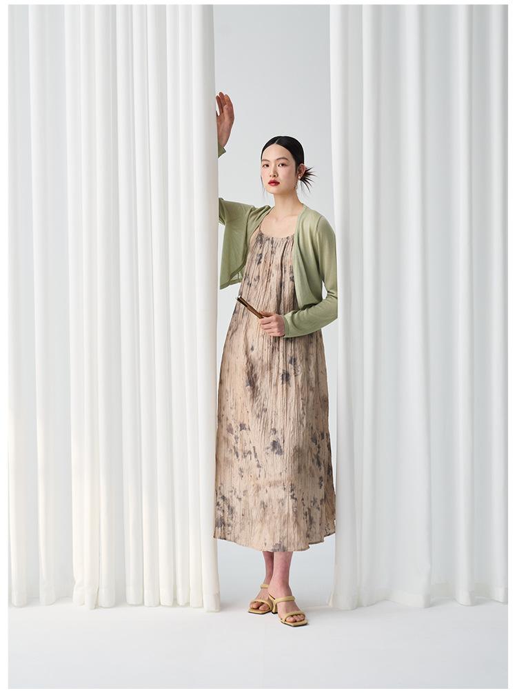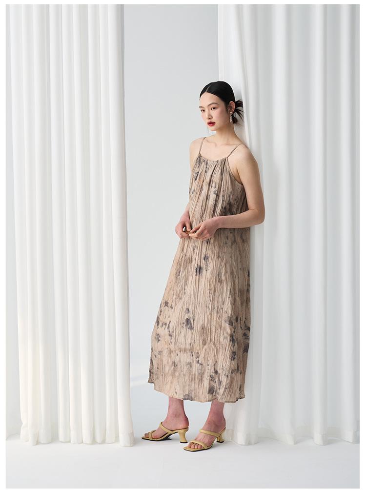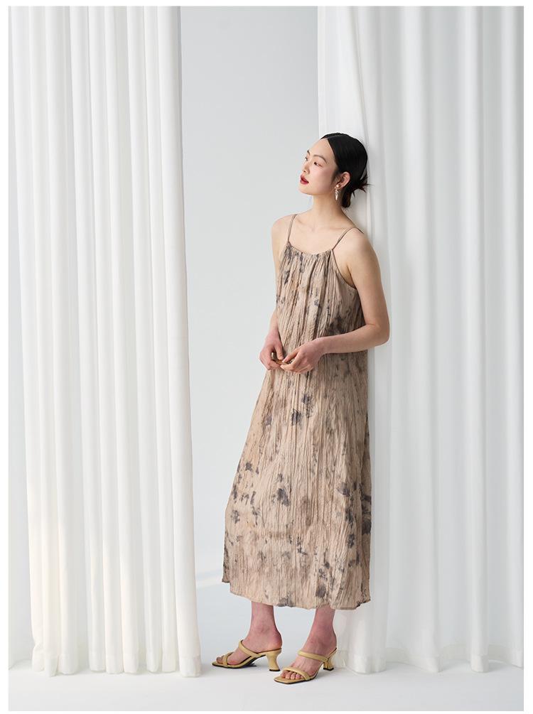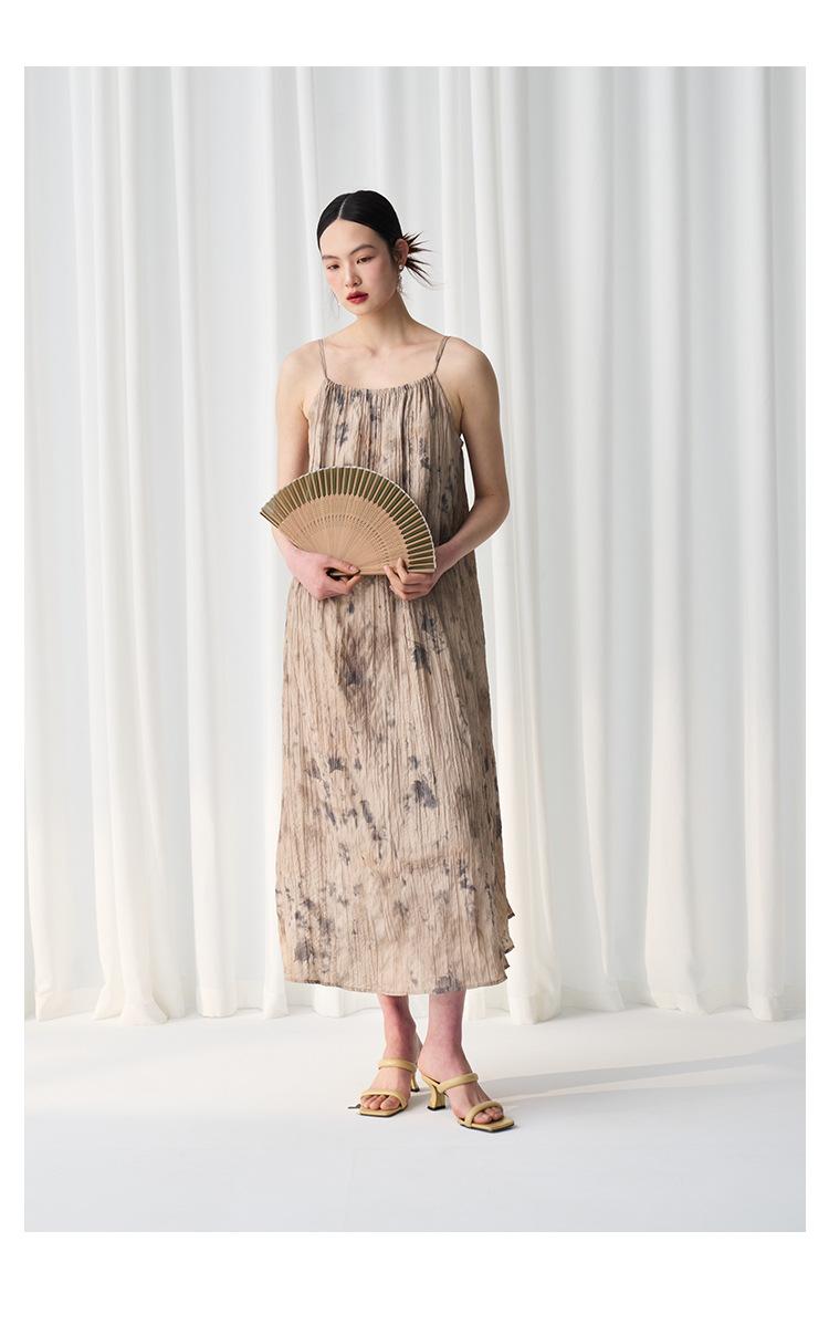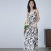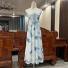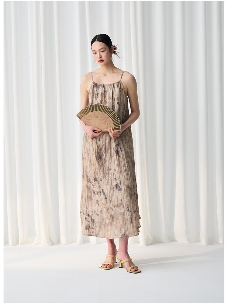 [Shengdu] Primavera y Verano Nuevo Nuevo Estilo Nacional Chinoiserie Estilo Zen Cool Vestido Estampado con Tirantes Ajustables para Mujer