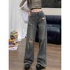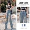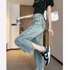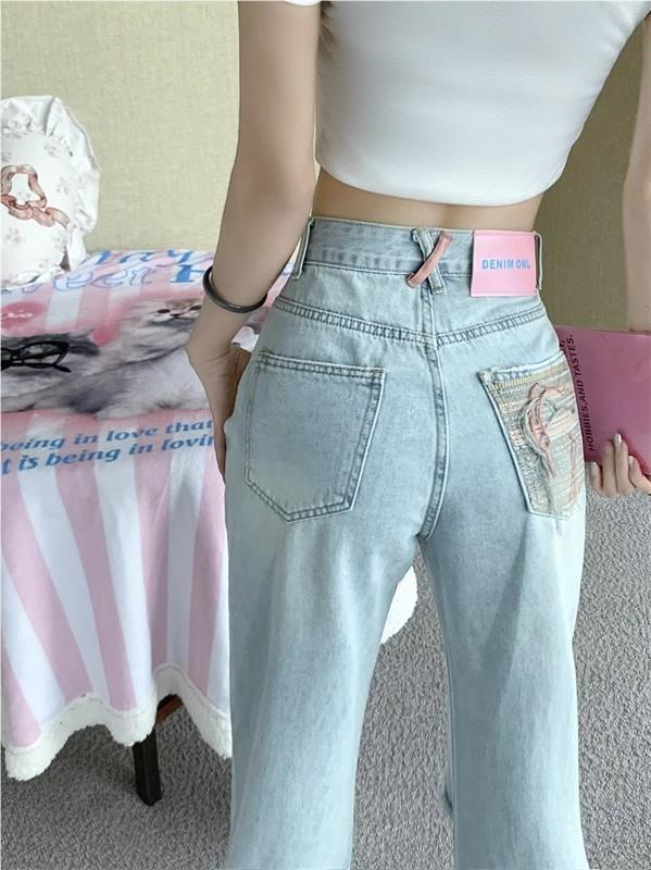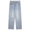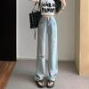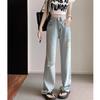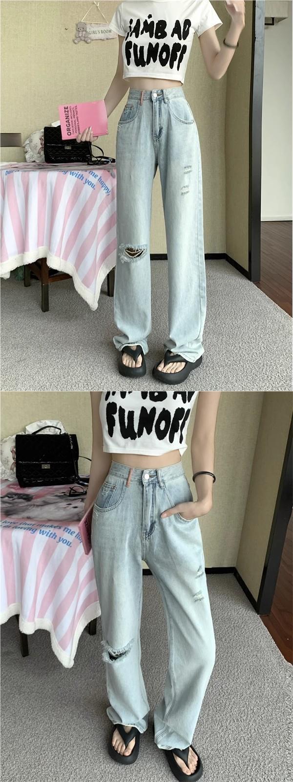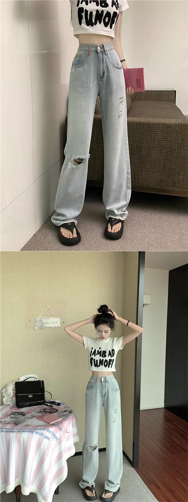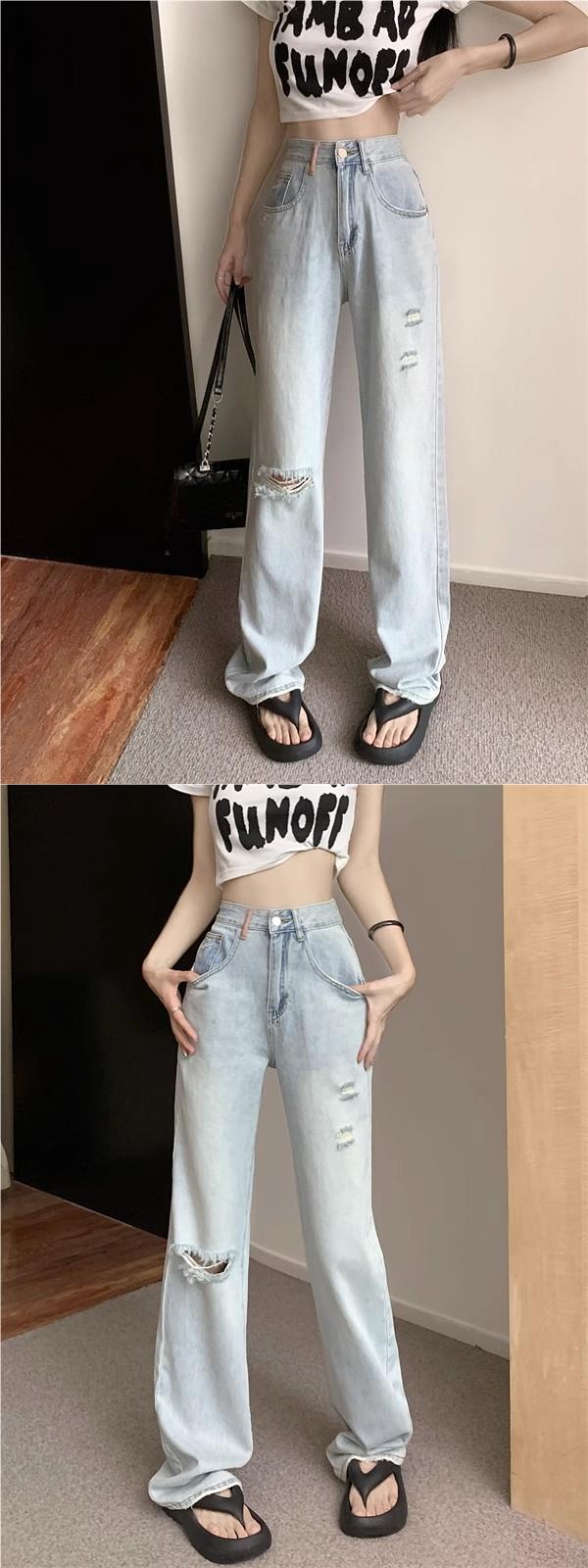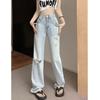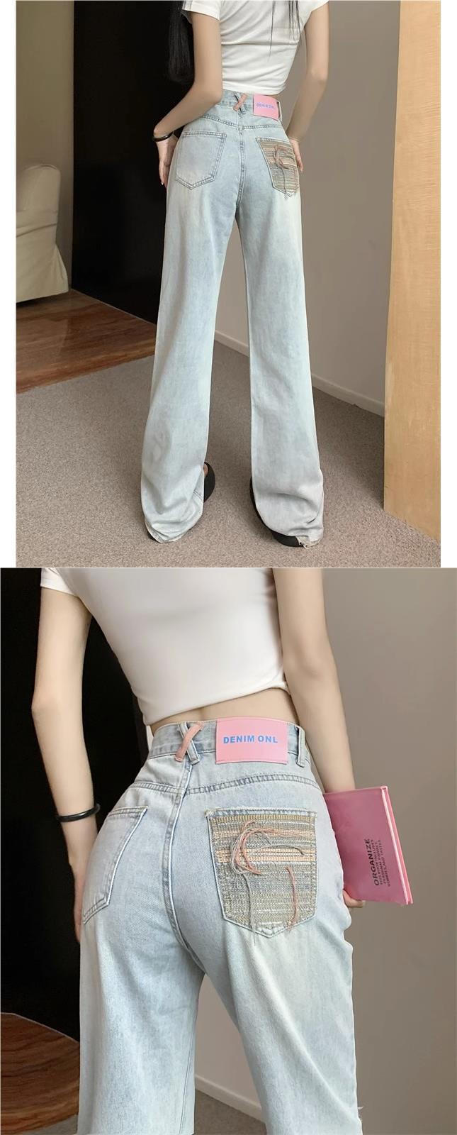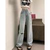 Pantalones vaqueros rectos rotos estilo retro americano para mujer, diseño bordado, cintura alta, adelgazantes, combinables, de pierna ancha, para otoño