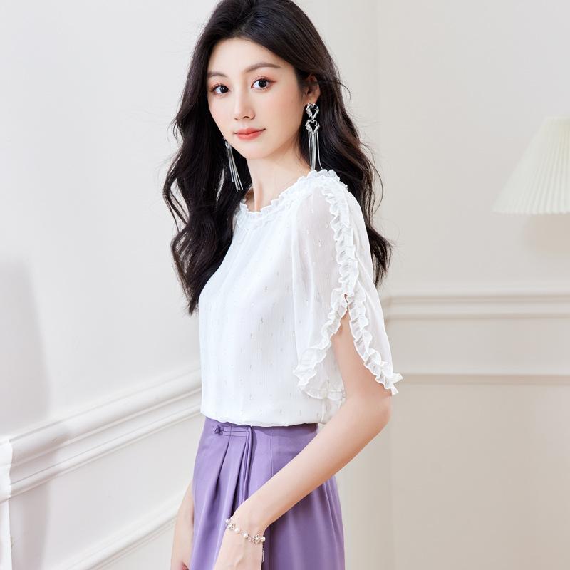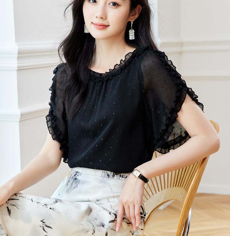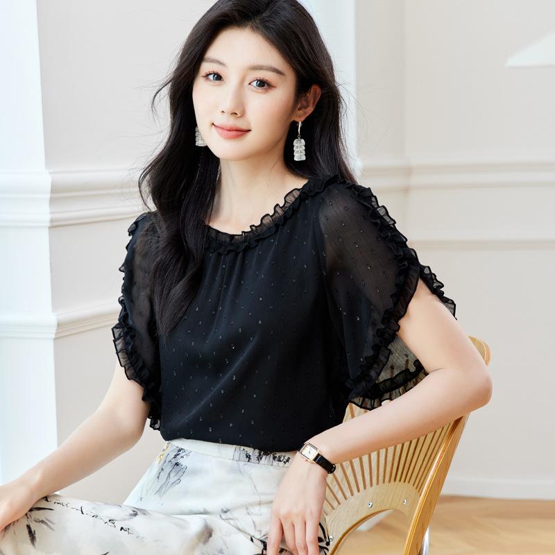 Camisa de gasa holgada para mujer, nueva, de color liso, fina, talla pequeña, talla grande