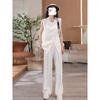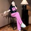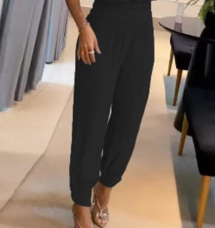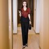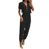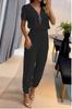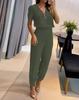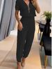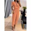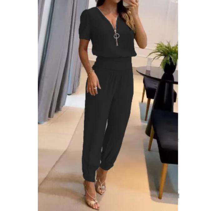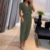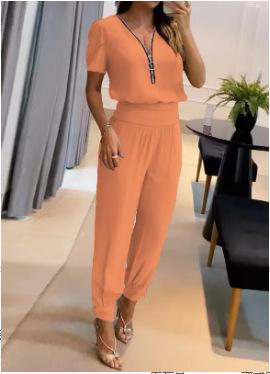 Traje de dos piezas casual de moda 2023 europeo y americano de comercio exterior de color sólido con cremallera en V de manga corta y pantalones atados al tobillo