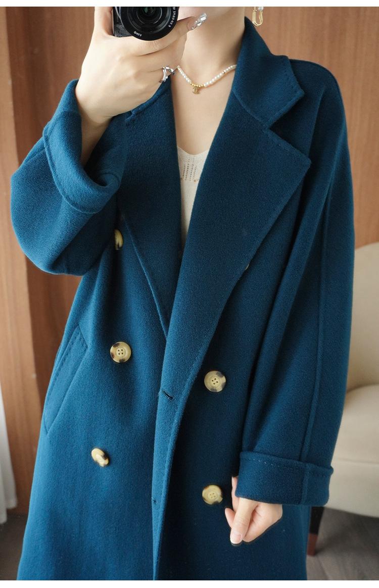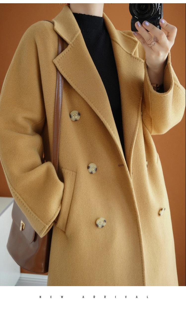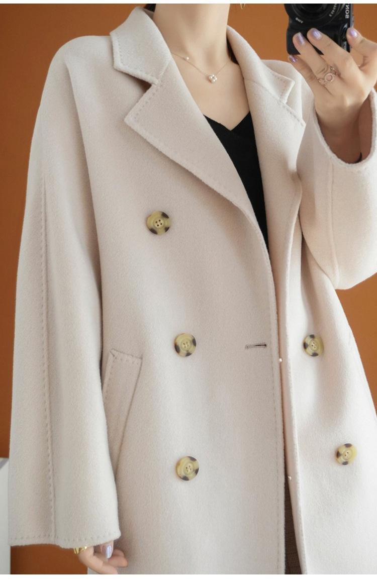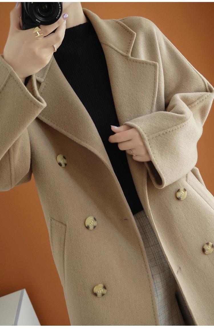 Abrigo de lana de doble cara con cuello de traje nuevo de otoño e invierno 2023 Abrigo de lana grueso y suelto de longitud media para mujer