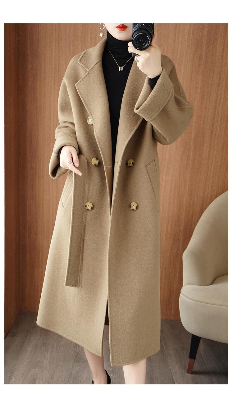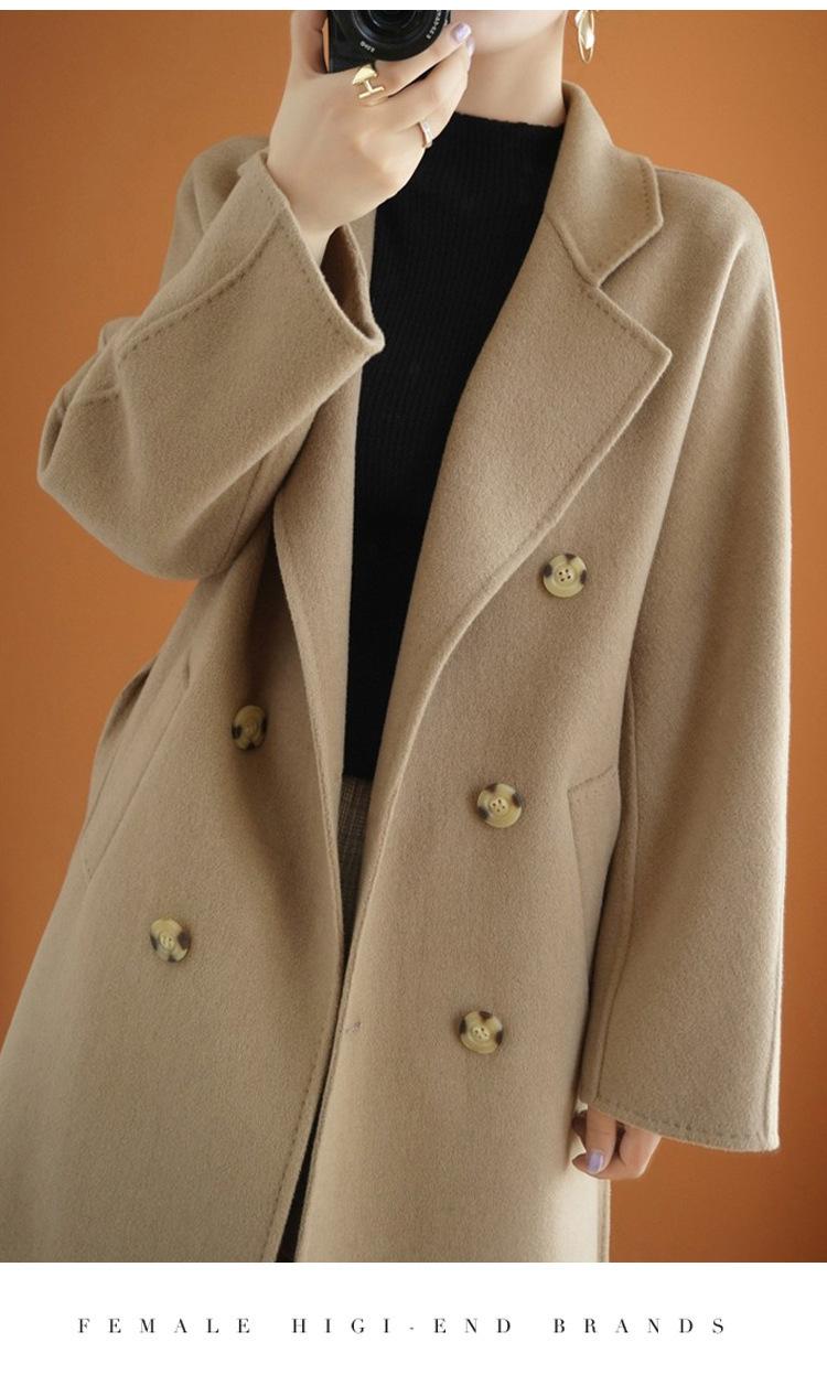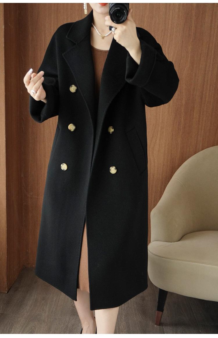 Abrigo de lana de doble cara con cuello de traje nuevo de otoño e invierno 2023 Abrigo de lana grueso y suelto de longitud media para mujer