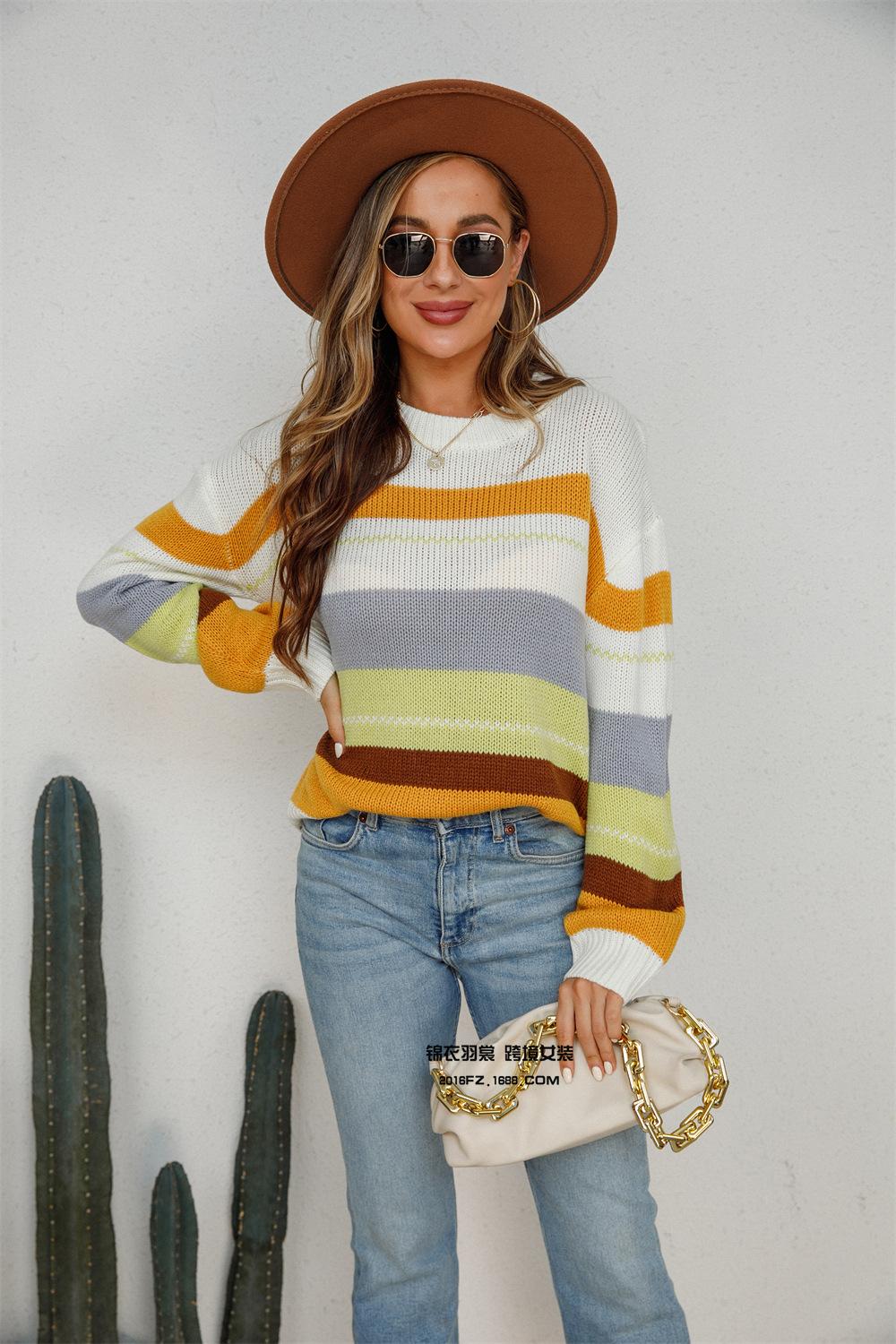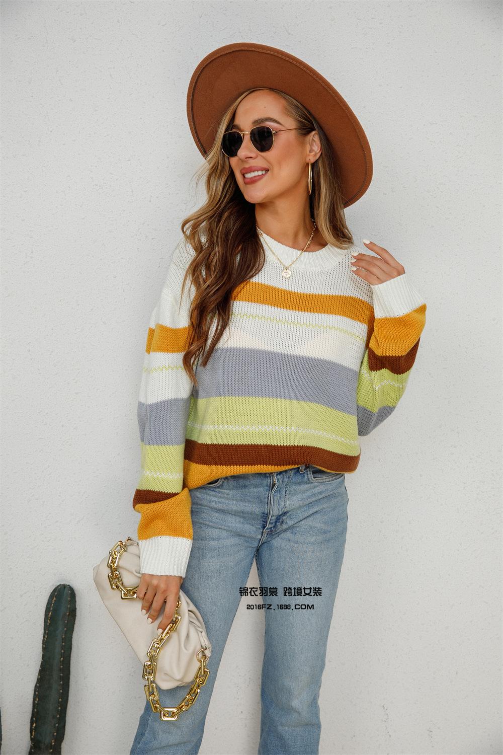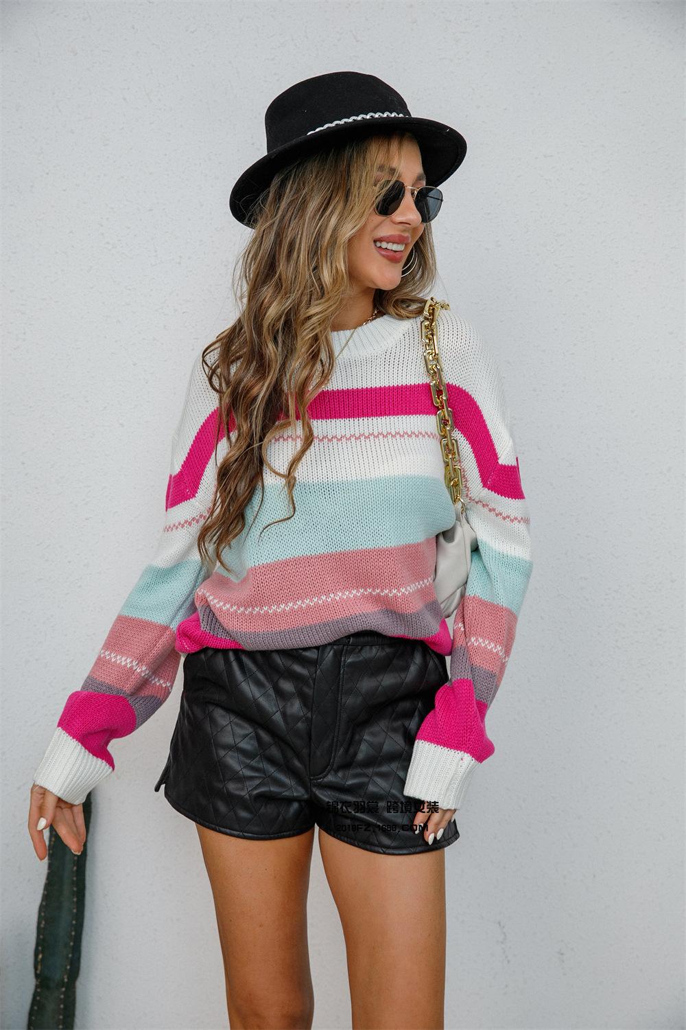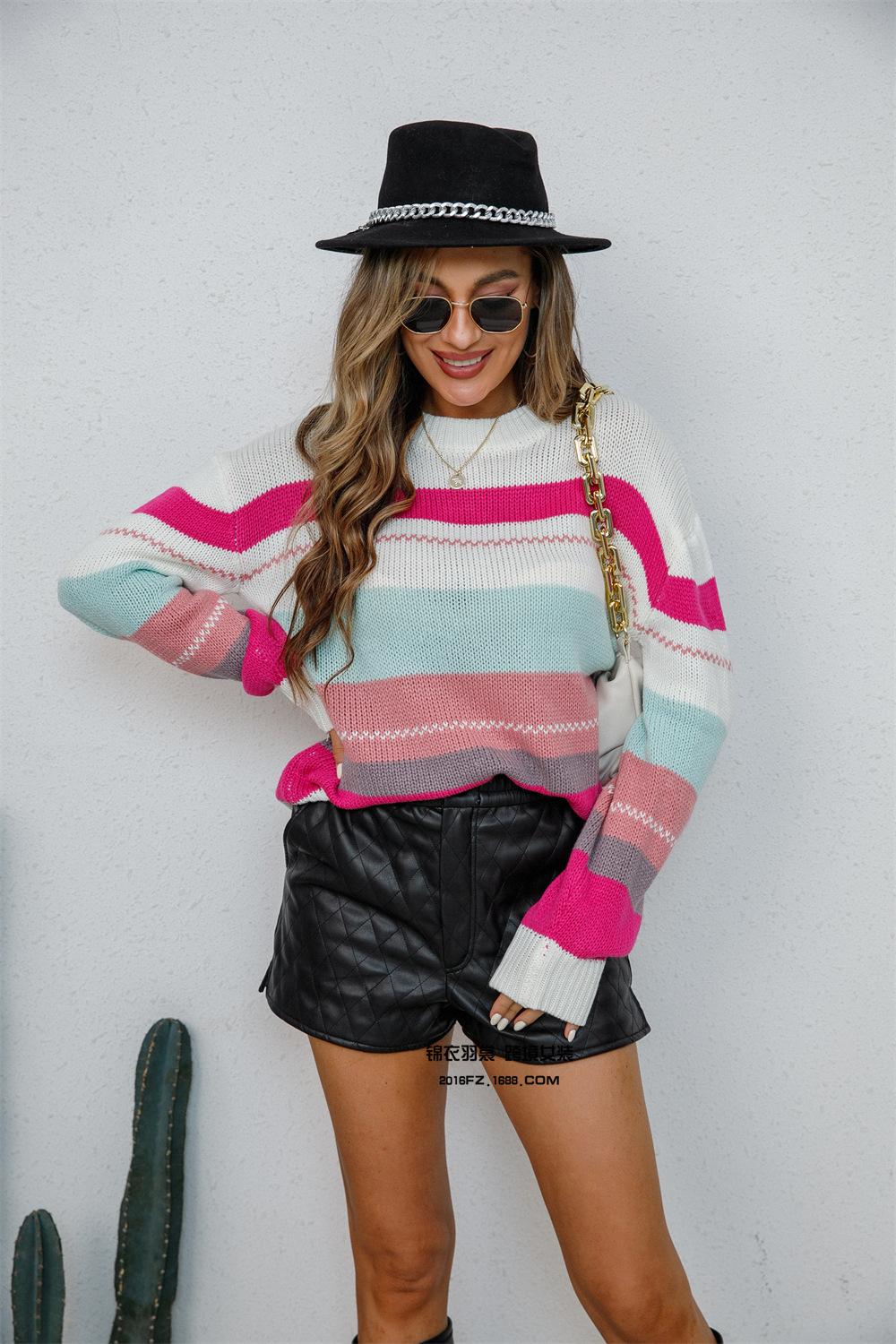 2025 Primavera Nuevos Productos Exportación Europea y Americana Sub-Costura Cuello Redondo Talla Grande Holgado Tejido de Punto Amazon Mayorista de Tejido de Punto de Manga Larga