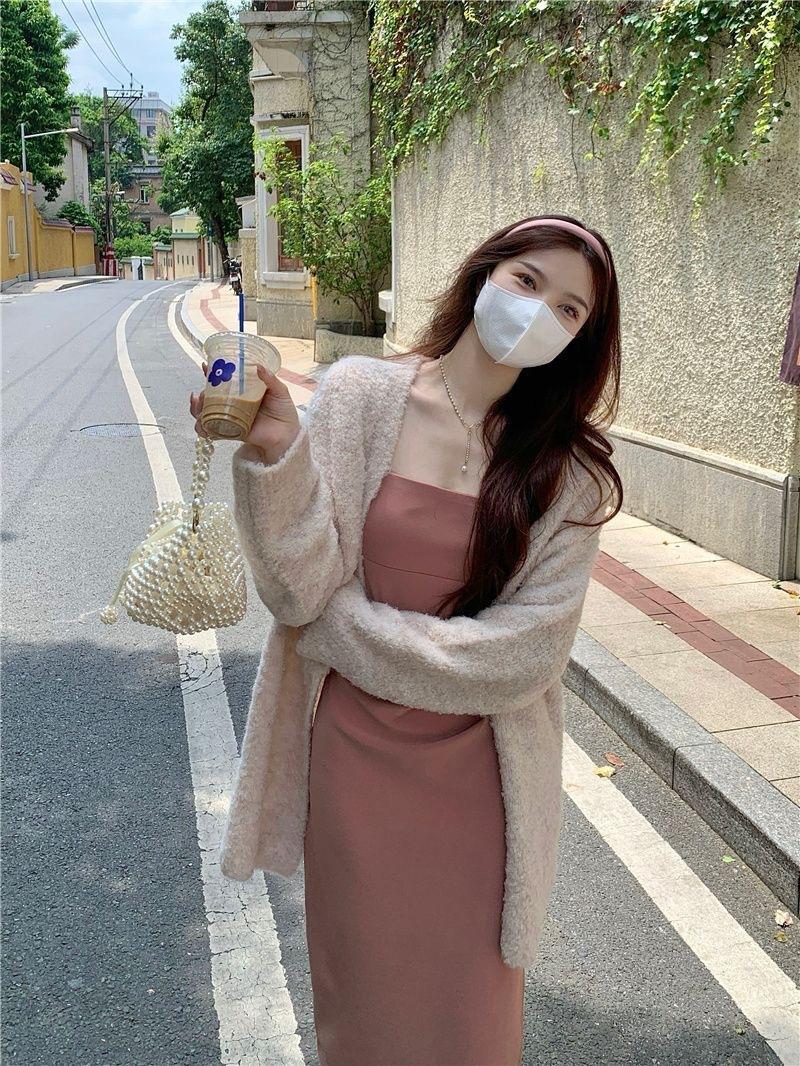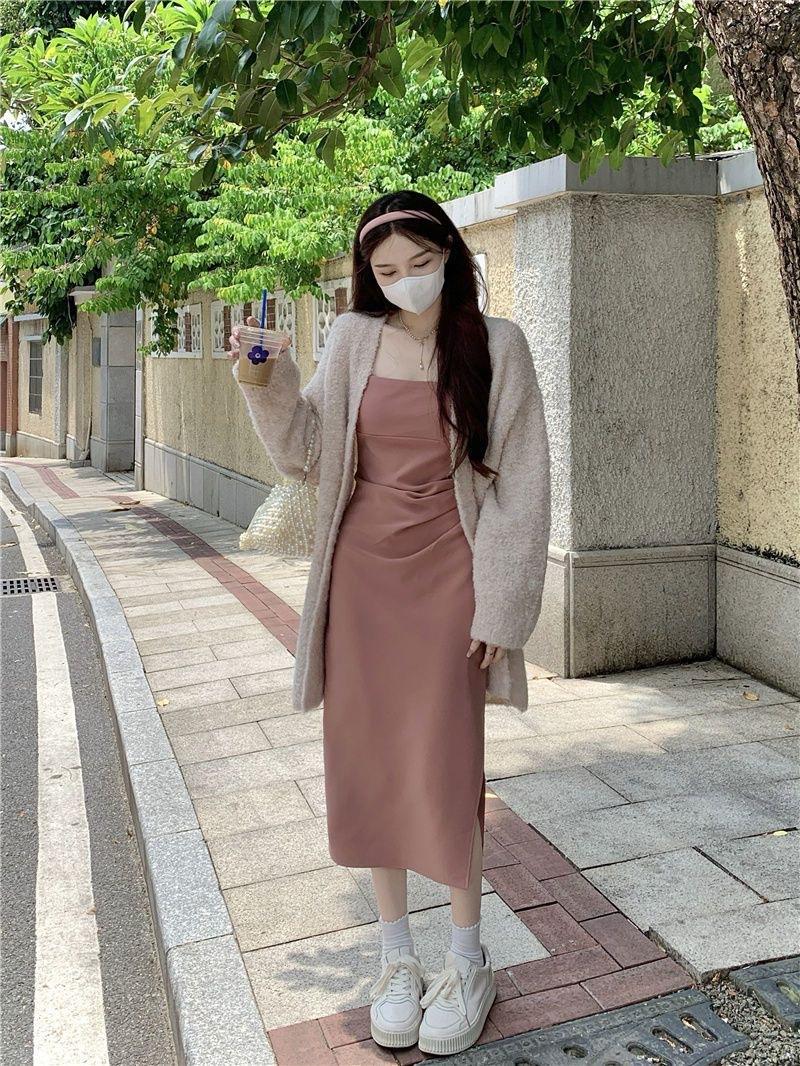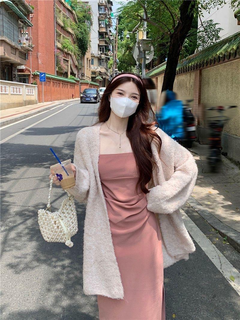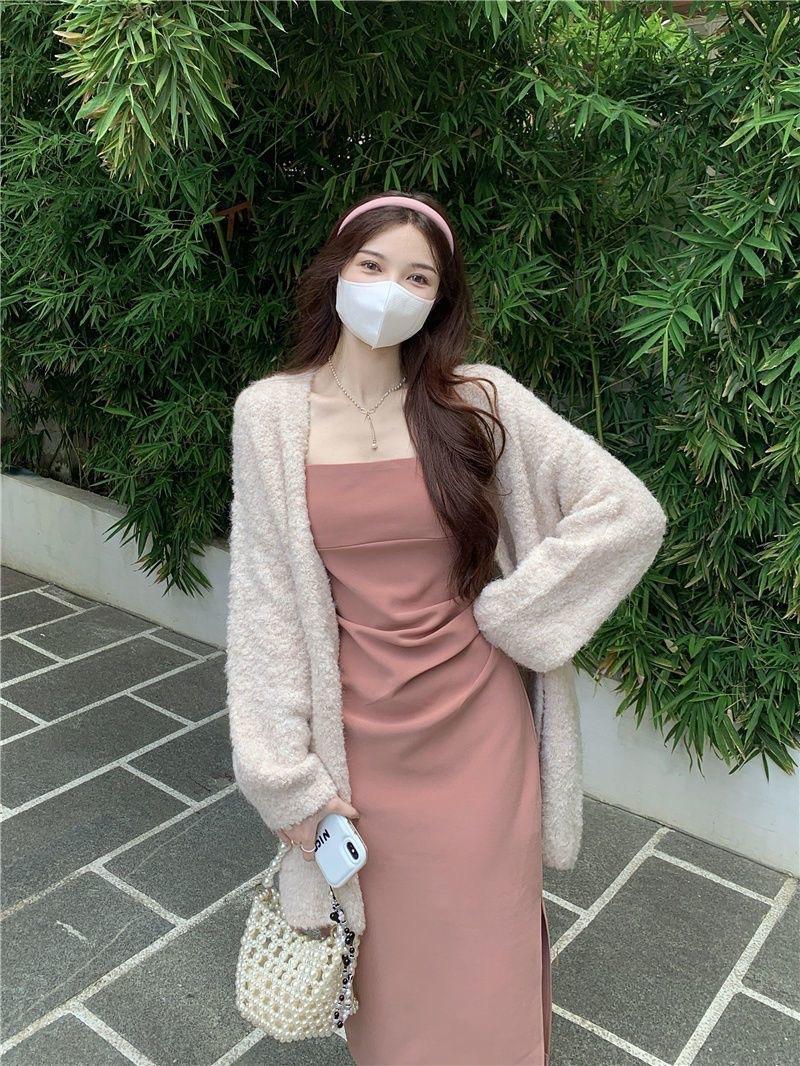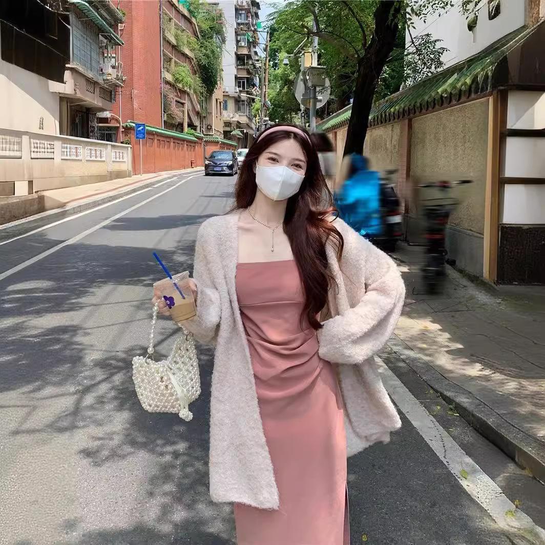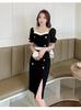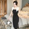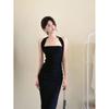 Vestido Negro de Tirantes de Primavera y Verano para Mujer 2024 Pequeño Slim Tirantes Falda Larga con Falda Cubre-Caderas